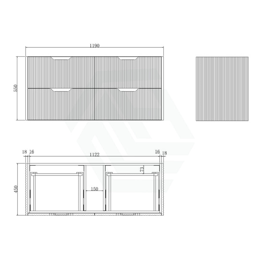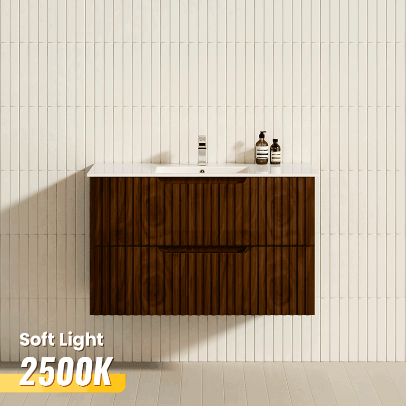 600-1500mm Bali Wall Hung Bathroom Floating Vanity Brown Oak Linear Fluted Cabinet PVC Coating brings comfort and function together in the bathroom, equipped with soft closing design.