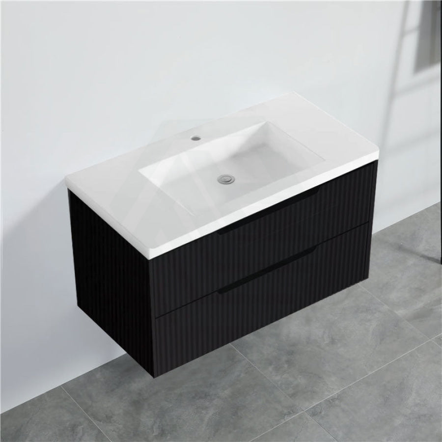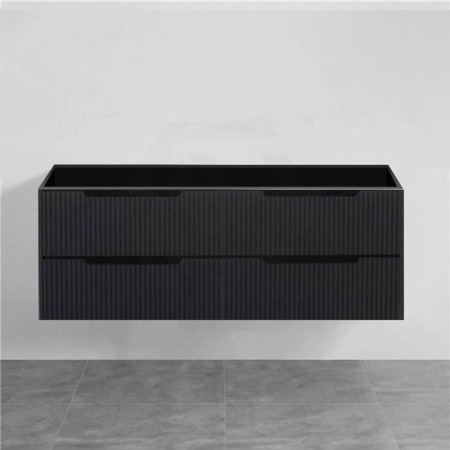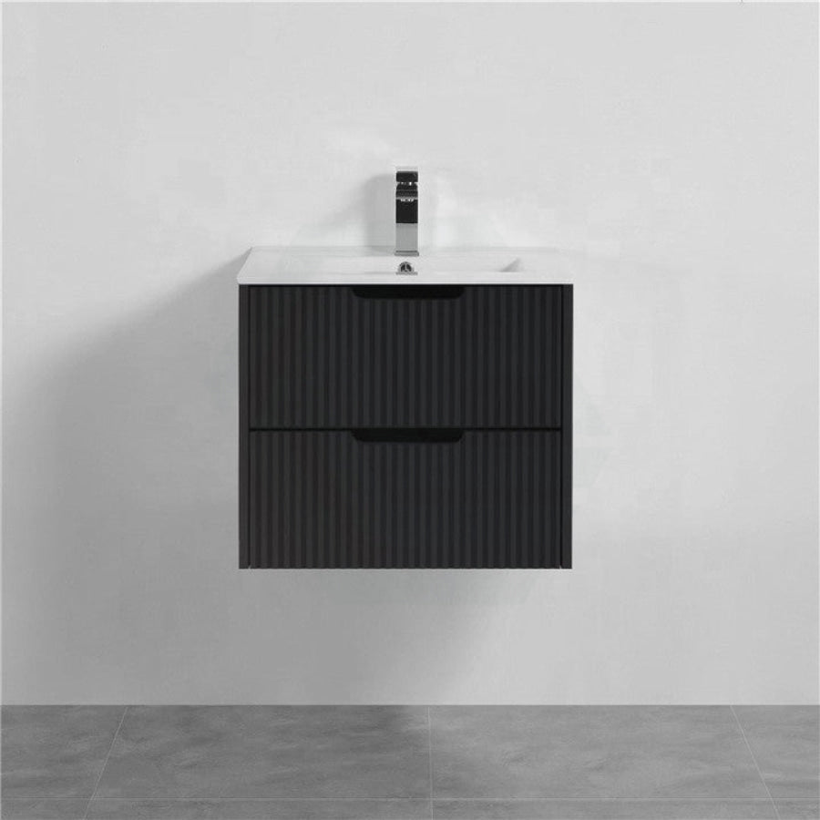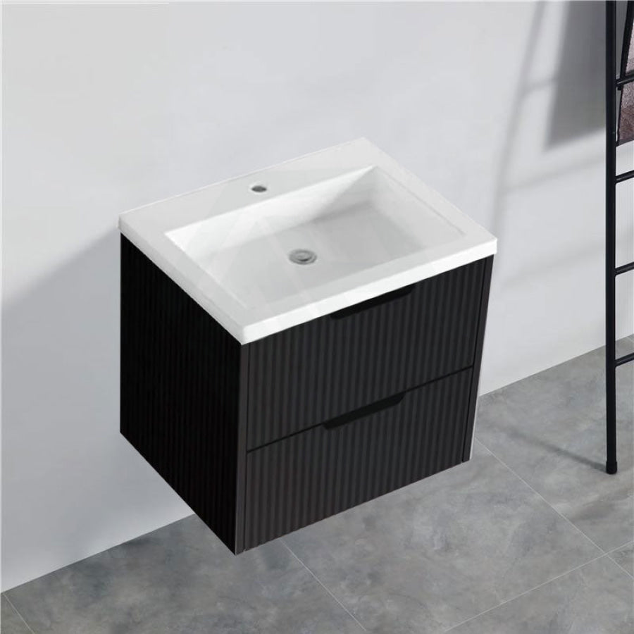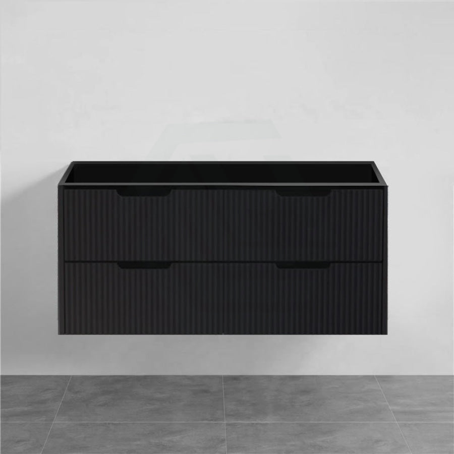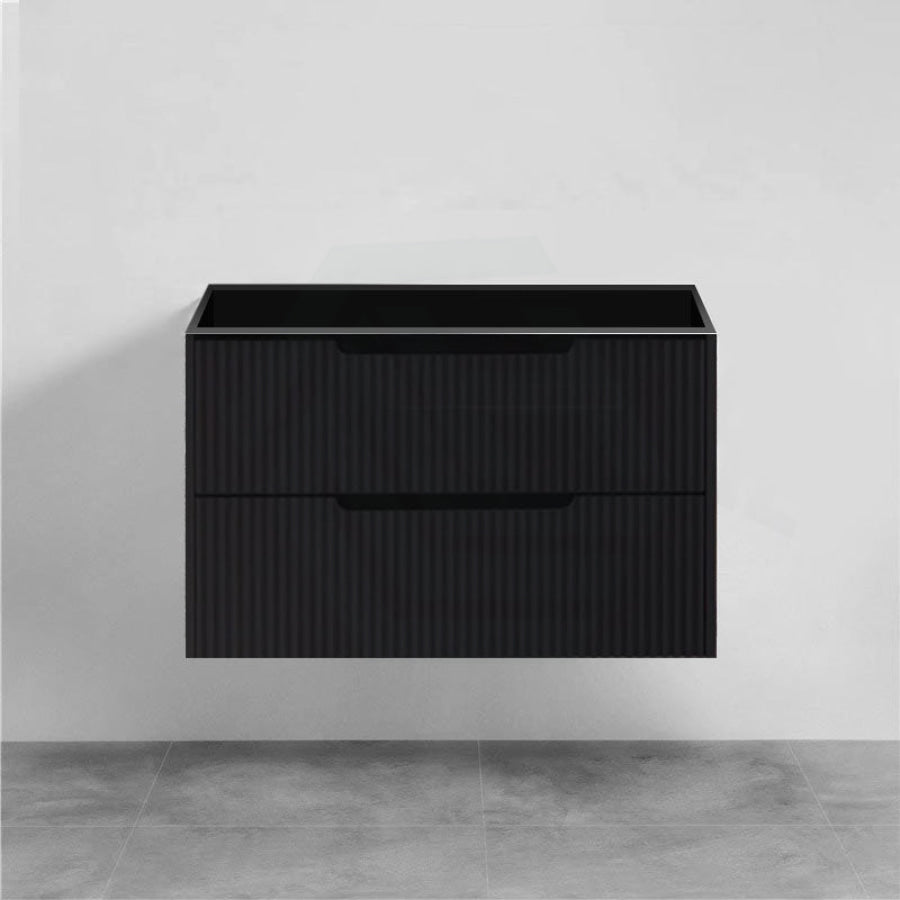 600-1500mm Bali Wall Hung Bathroom Floating Vanity Matt Black Linear Fluted Cabinet PVC Coating