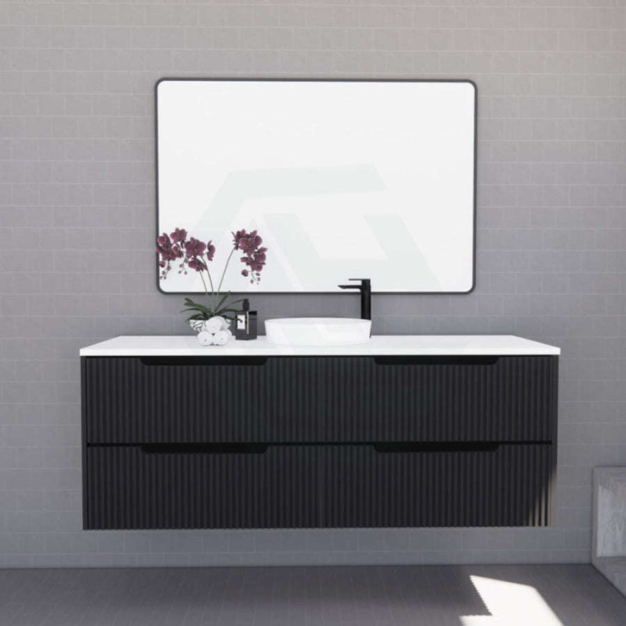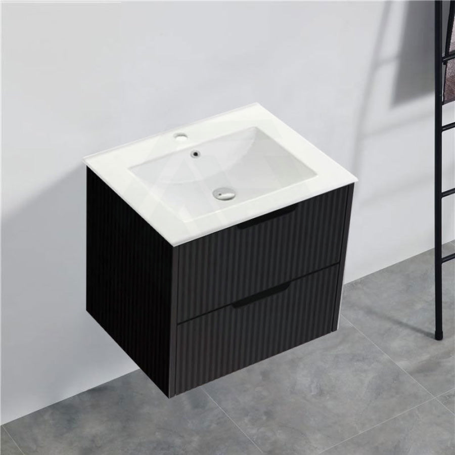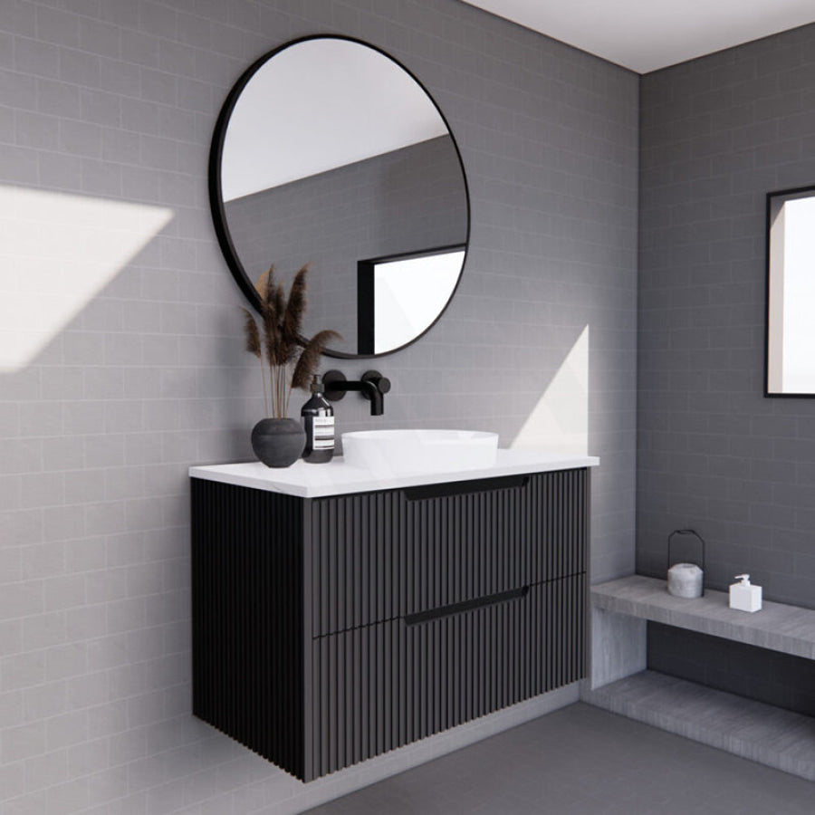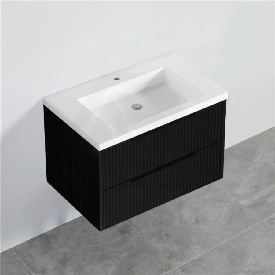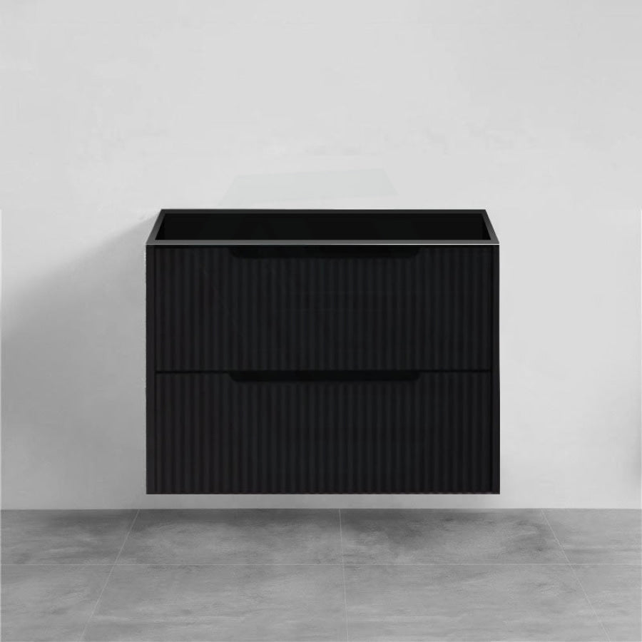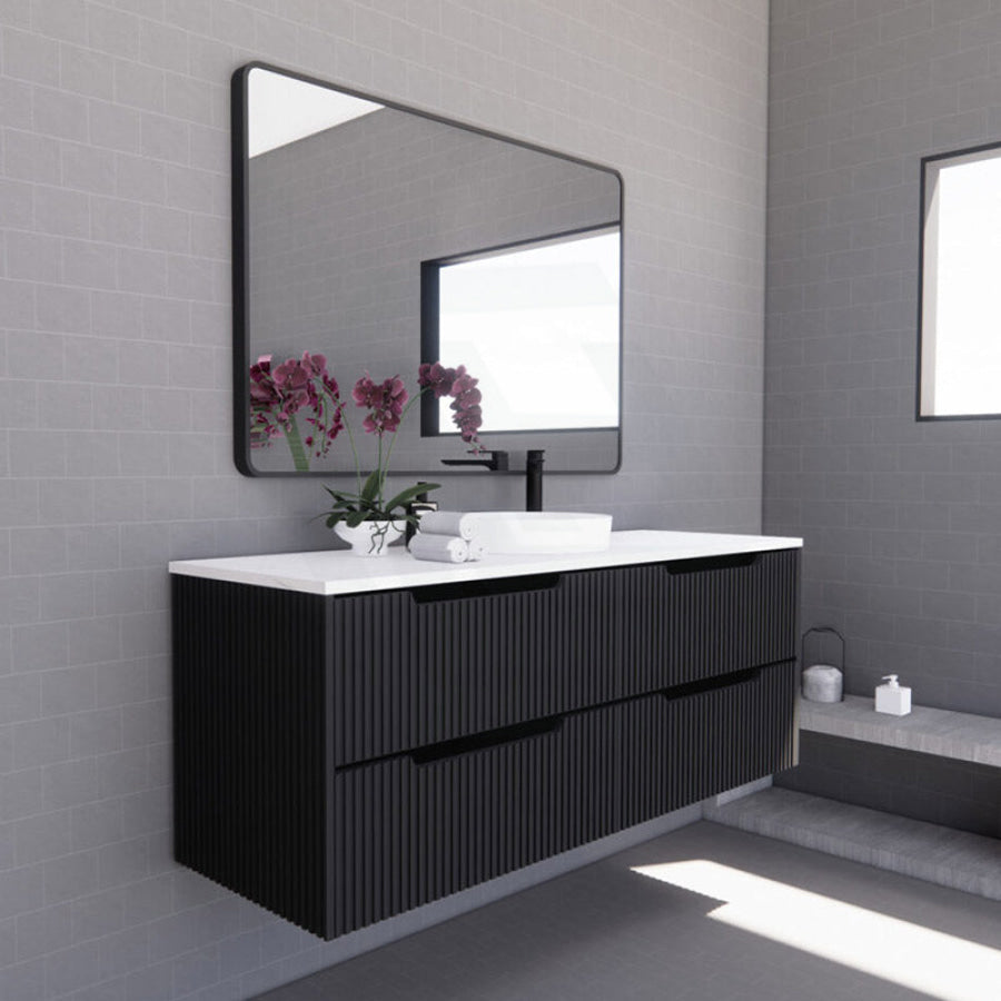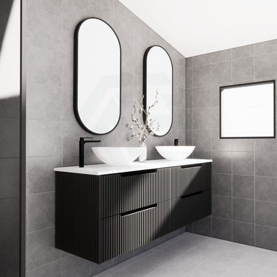 600-1500mm Bali Wall Hung Bathroom Floating Vanity Matt Black Linear Fluted Cabinet PVC Coating