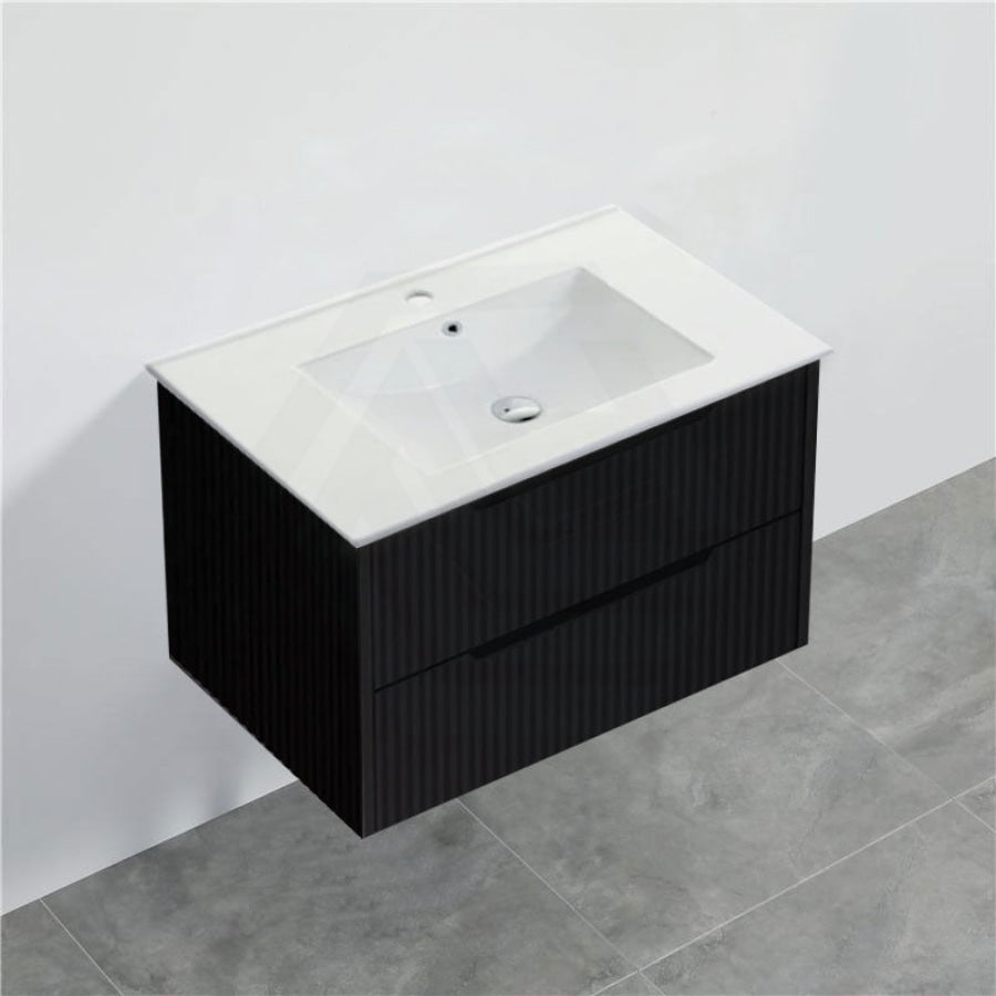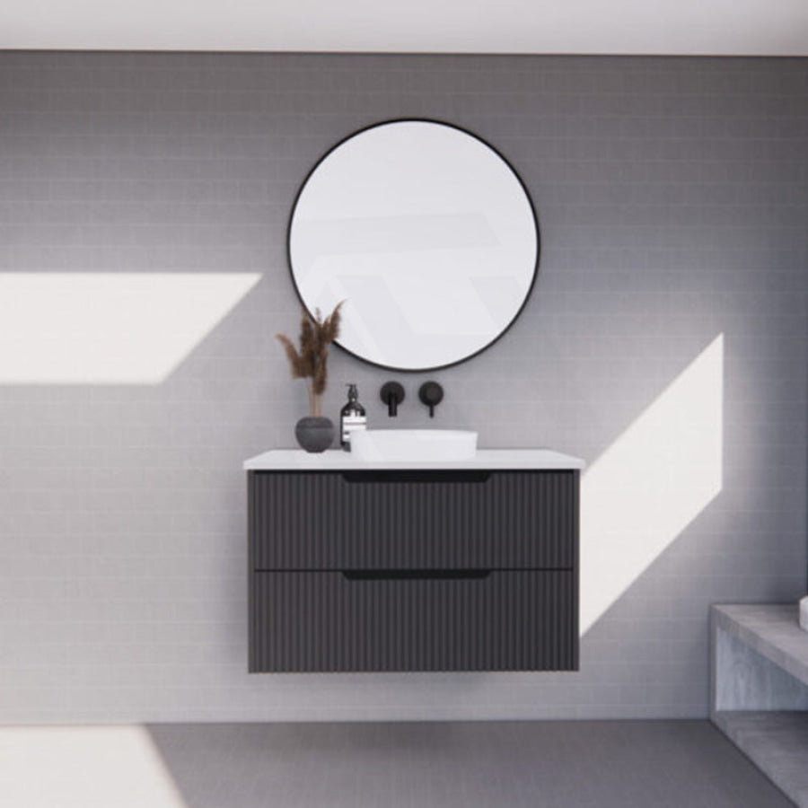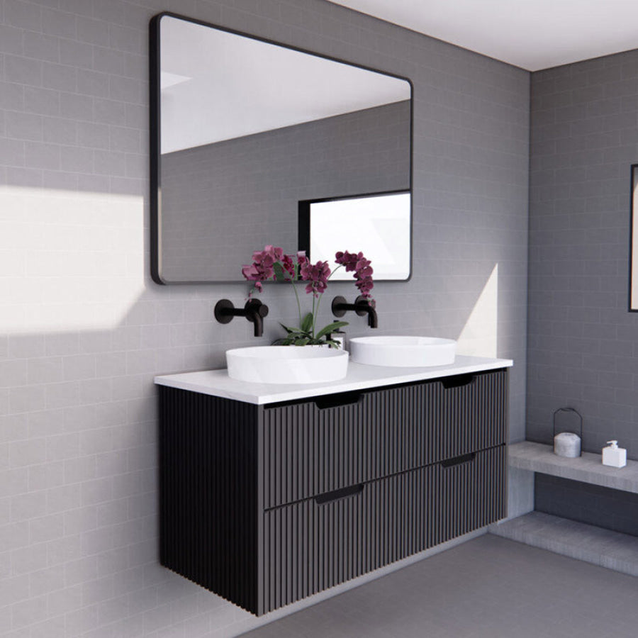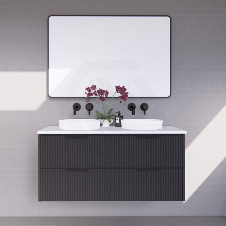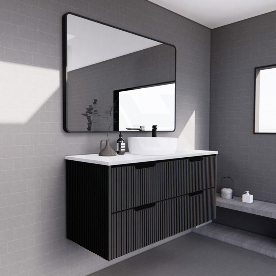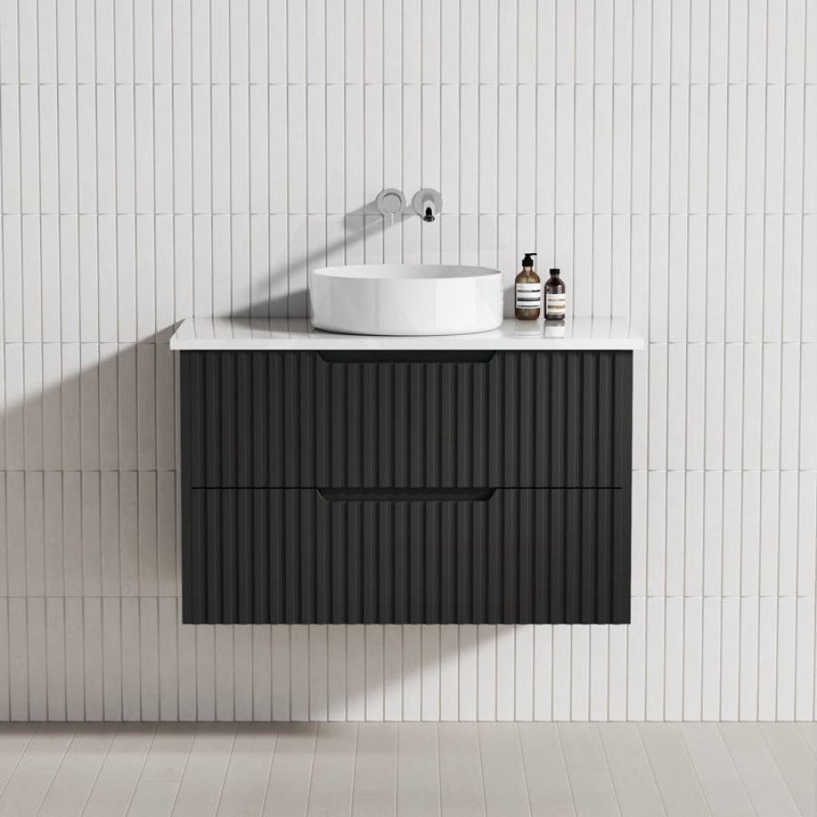 600-1500mm Bali Wall Hung Bathroom Floating Vanity Matt Black Linear Fluted Cabinet PVC Coating