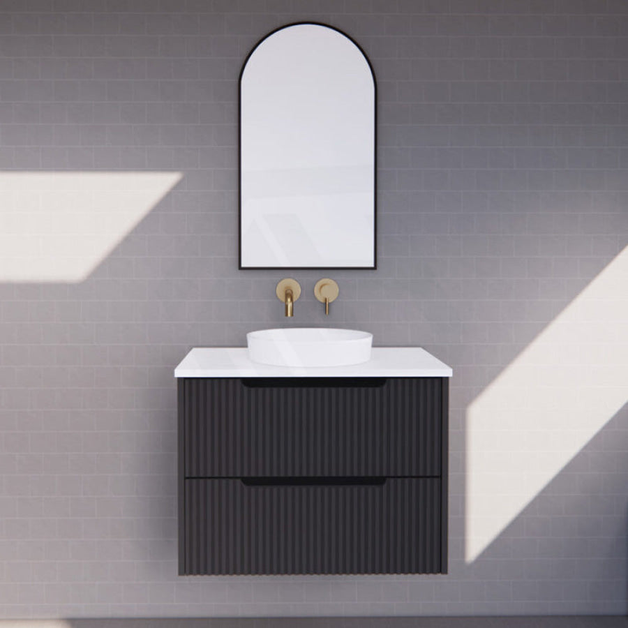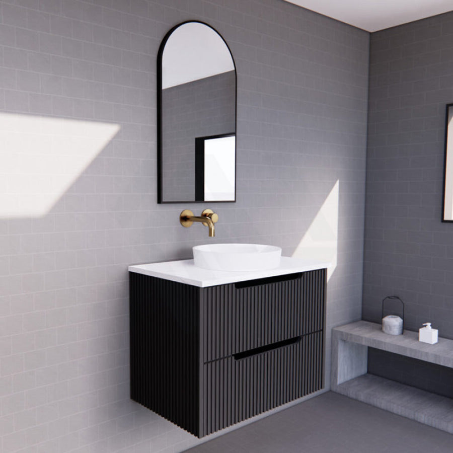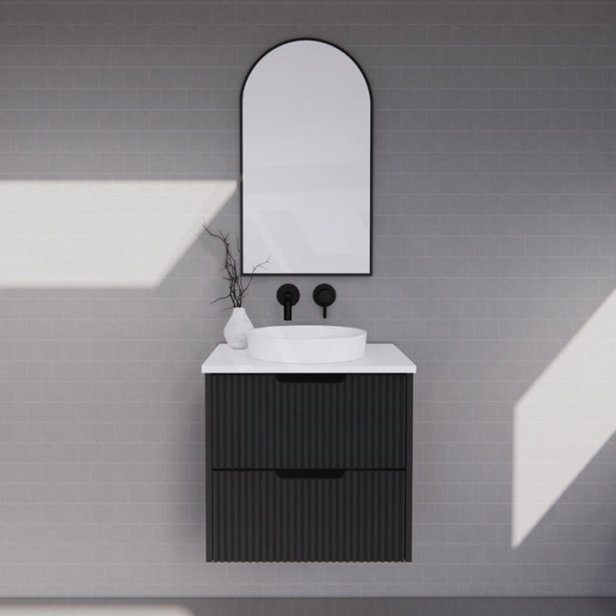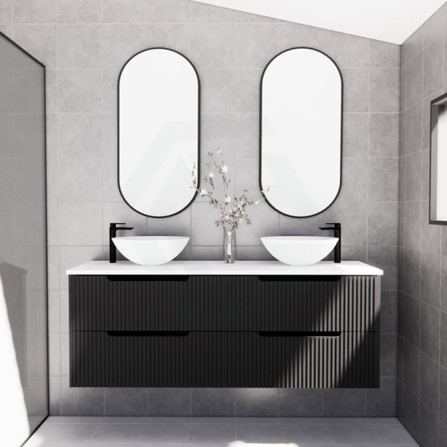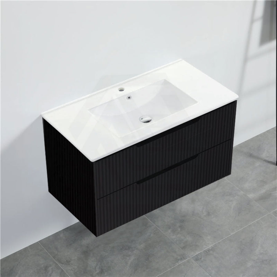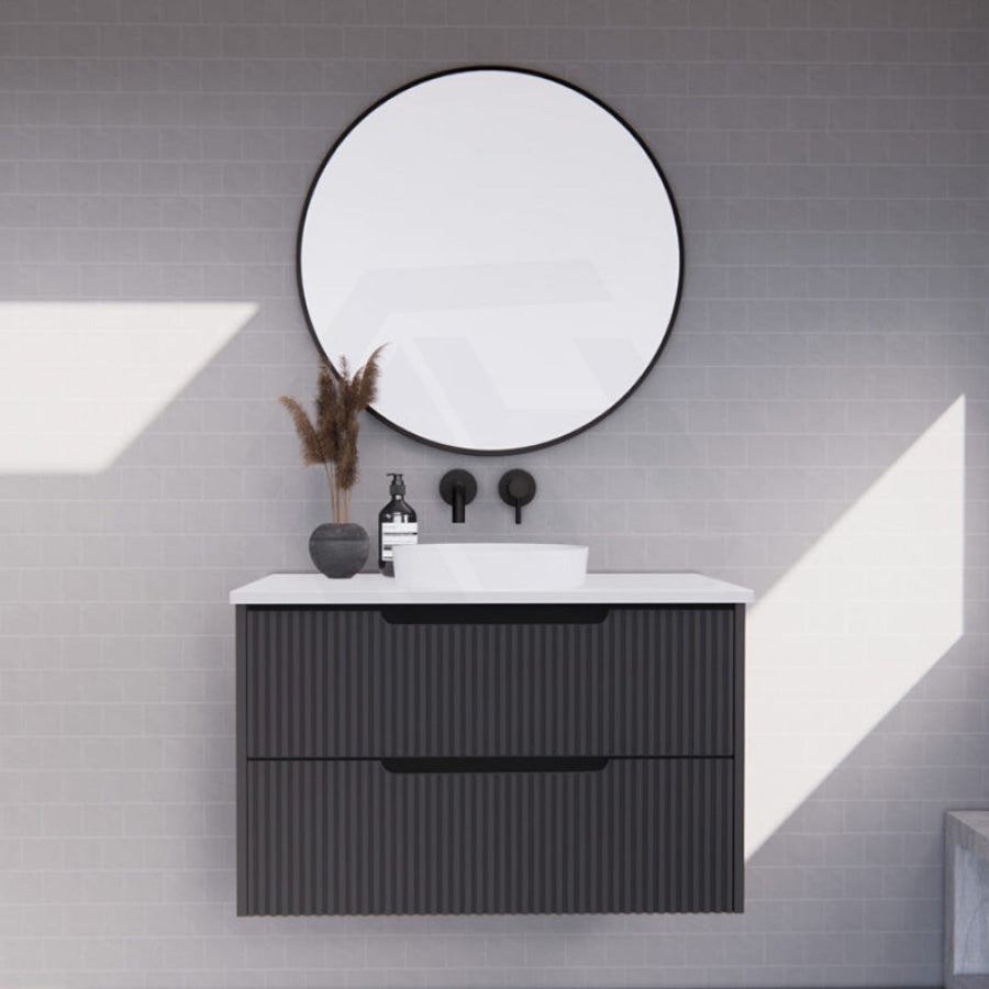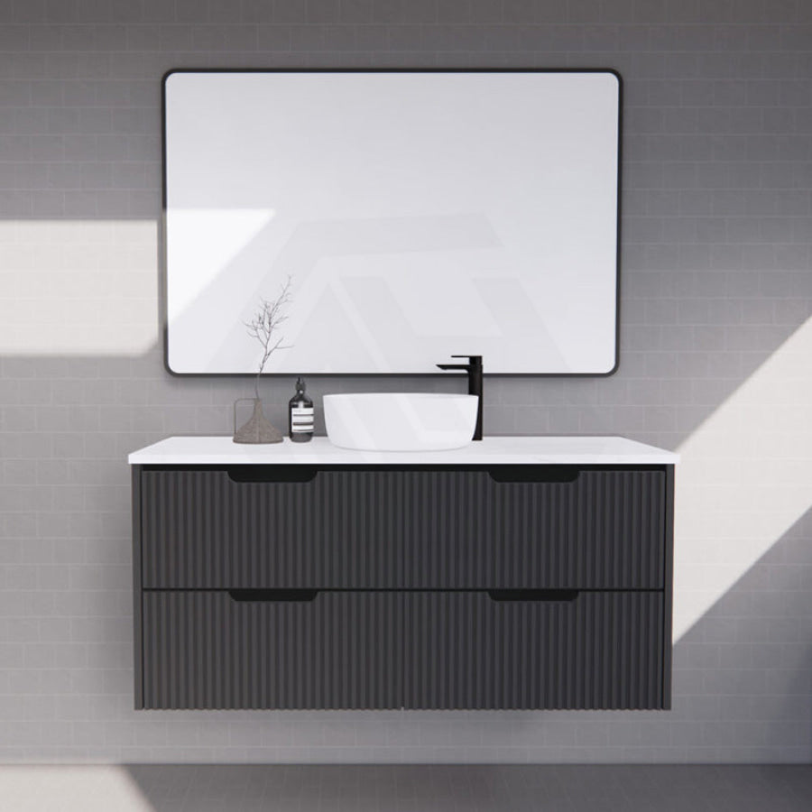 600-1500mm Bali Wall Hung Bathroom Floating Vanity Matt Black Linear Fluted Cabinet PVC Coating