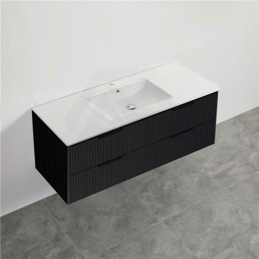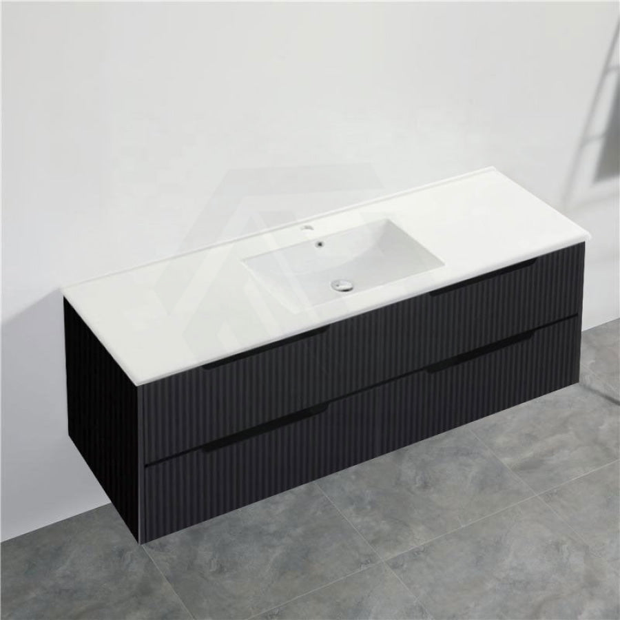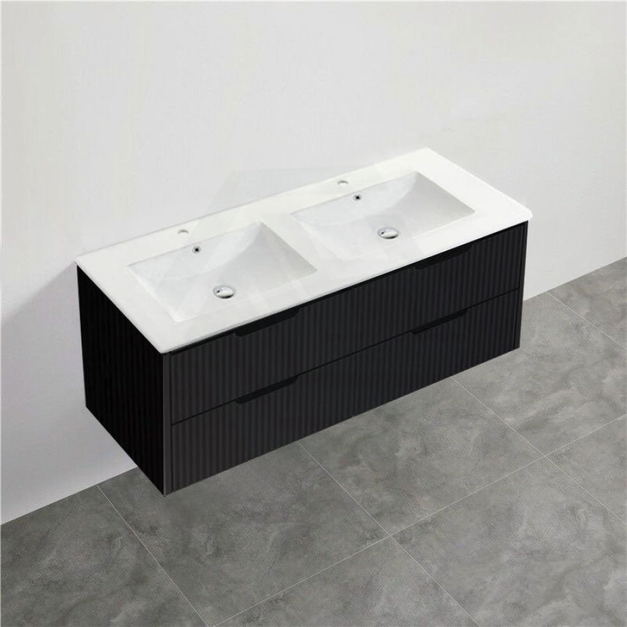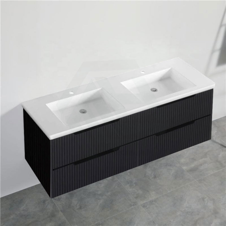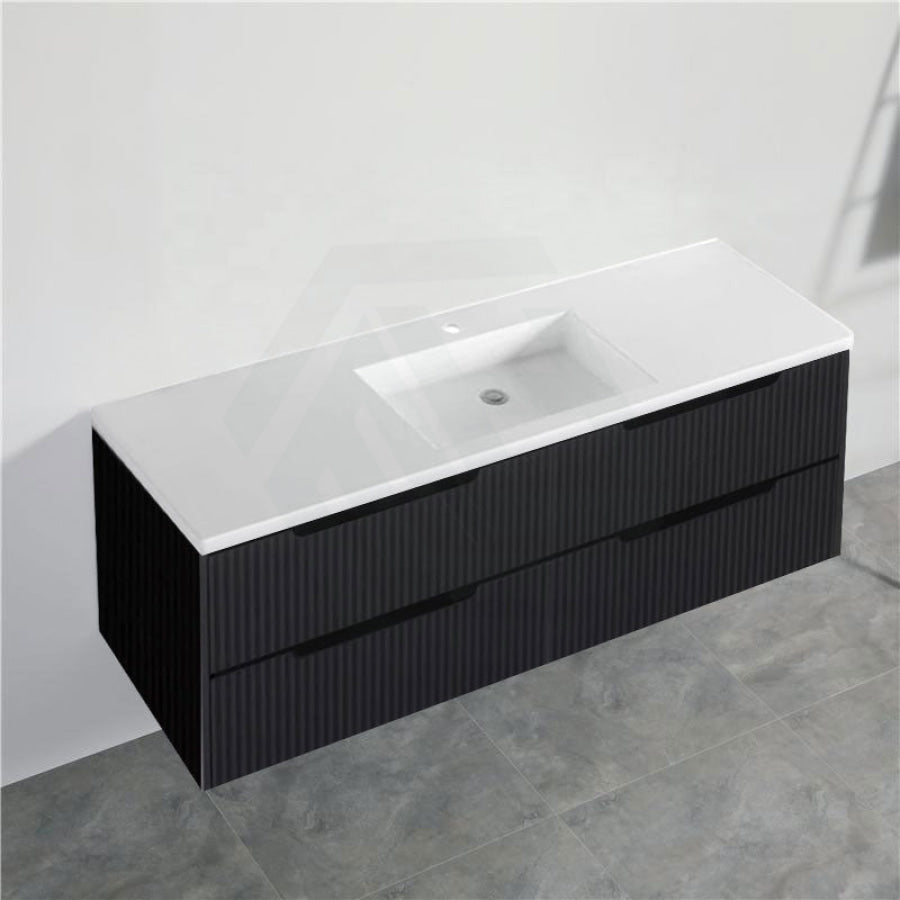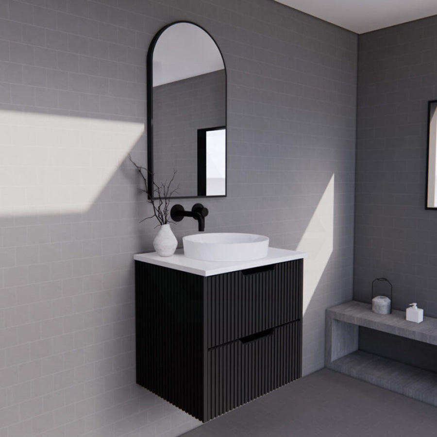600-1500mm Bali Wall Hung Bathroom Floating Vanity Matt Black Linear Fluted Cabinet PVC Coating