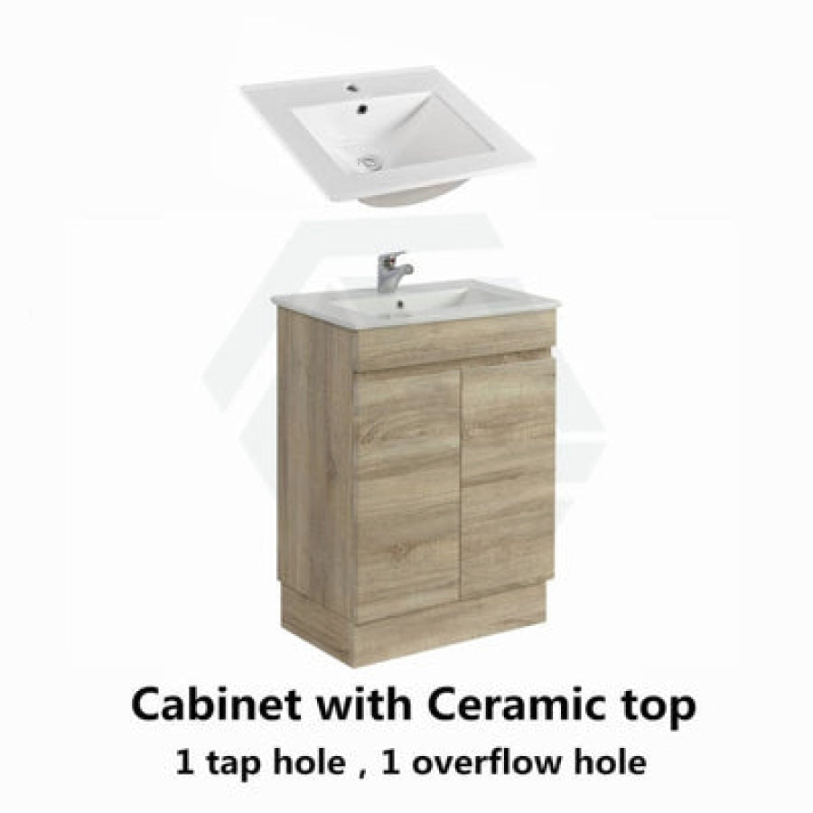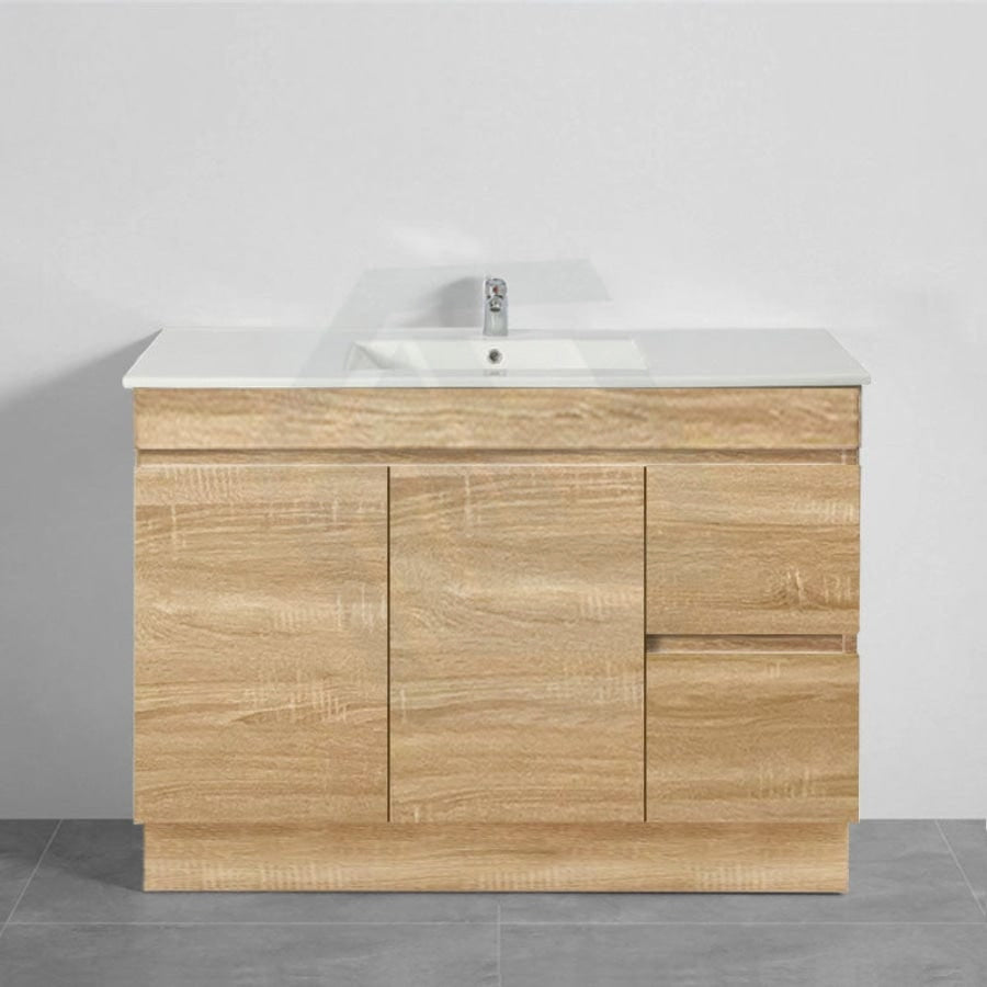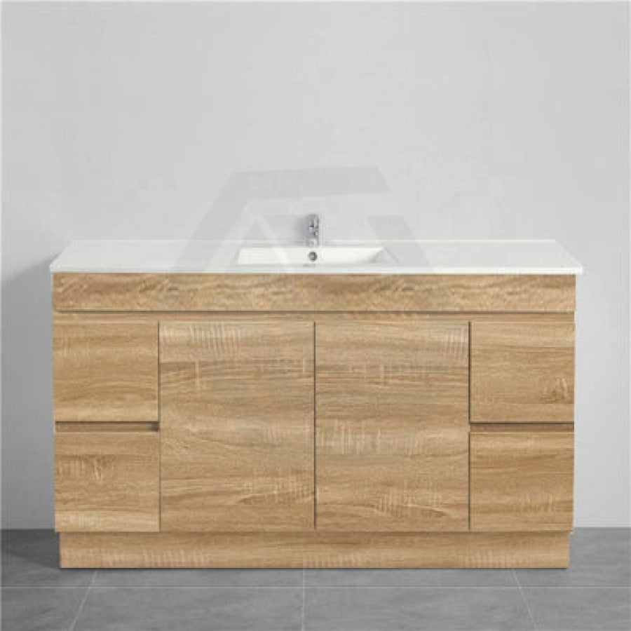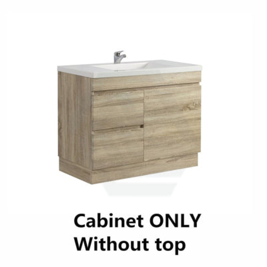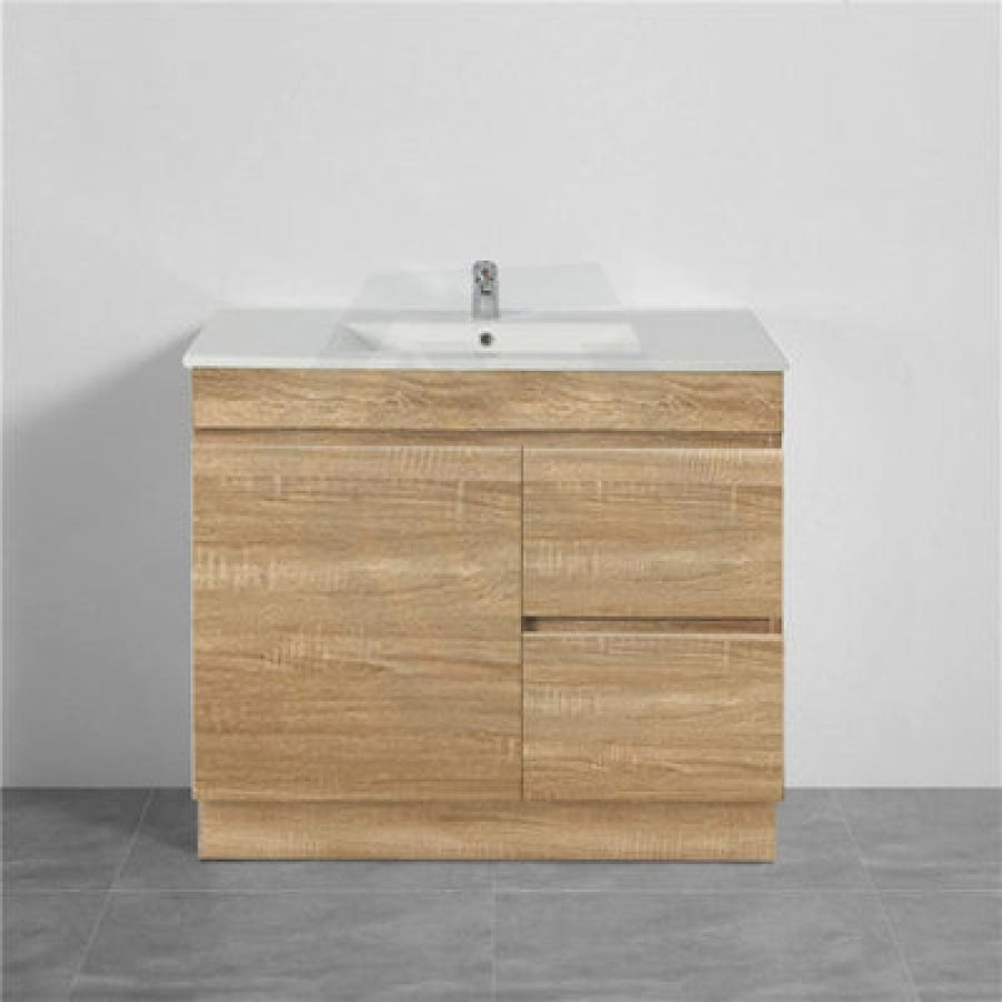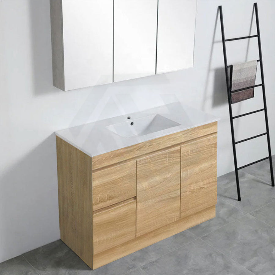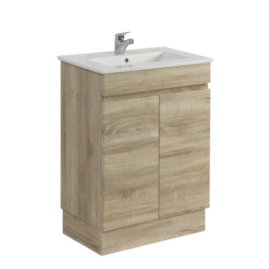 600-1500mm Berge Freestanding Bathroom Floor Vanity with Kickboard White Oak Wood Grain PVC Filmed Cabinet ONLY & Ceramic/Poly Top Available