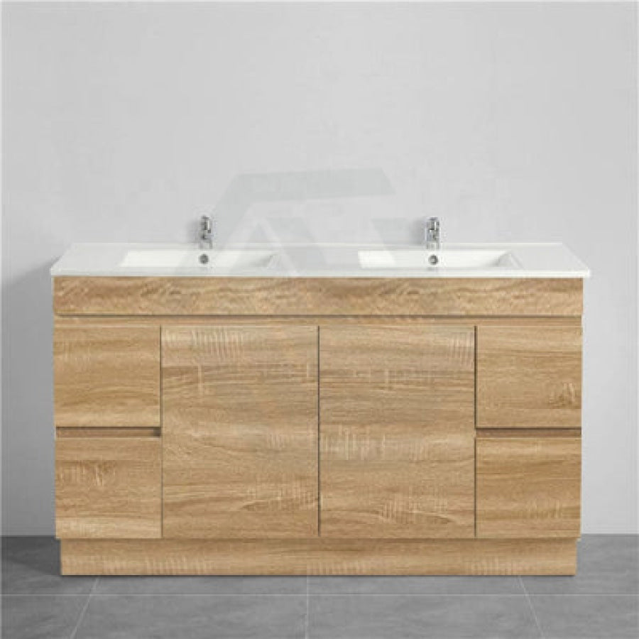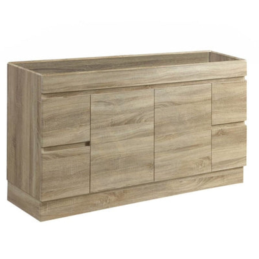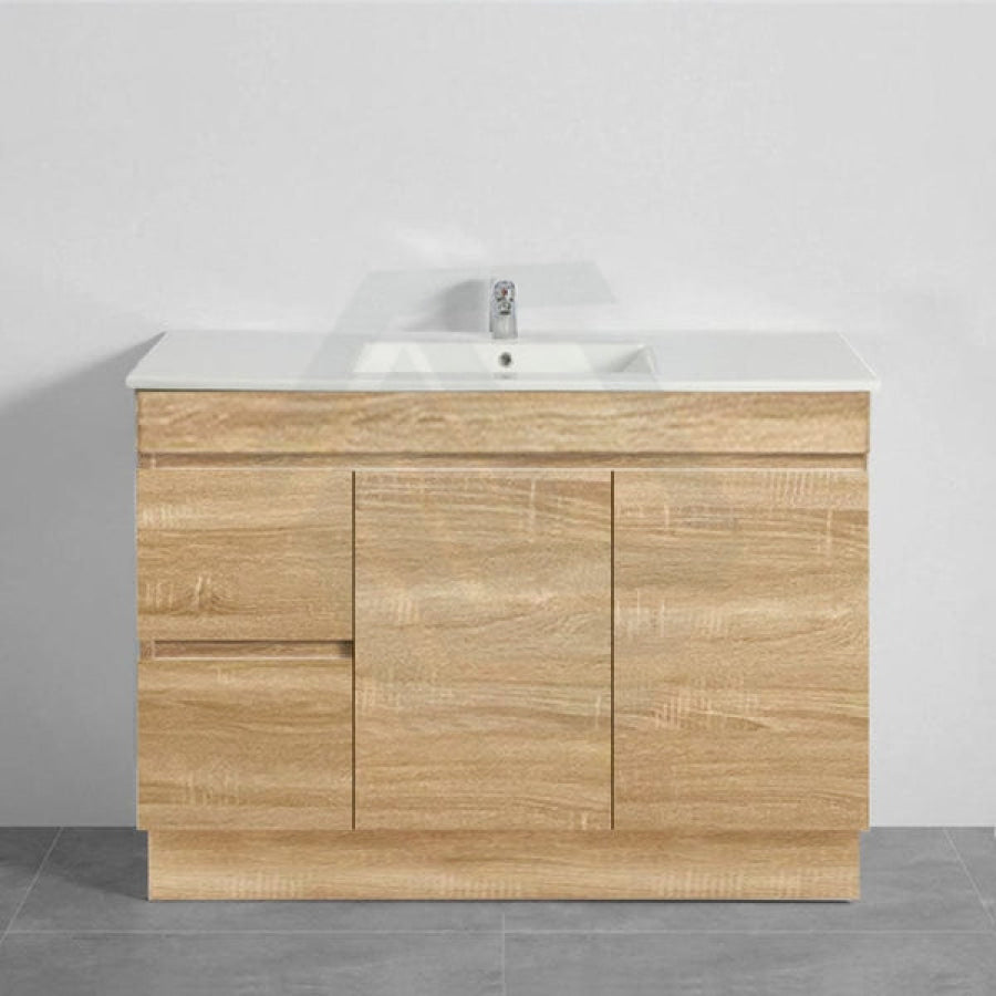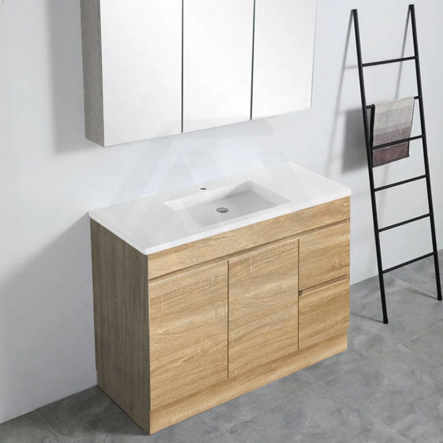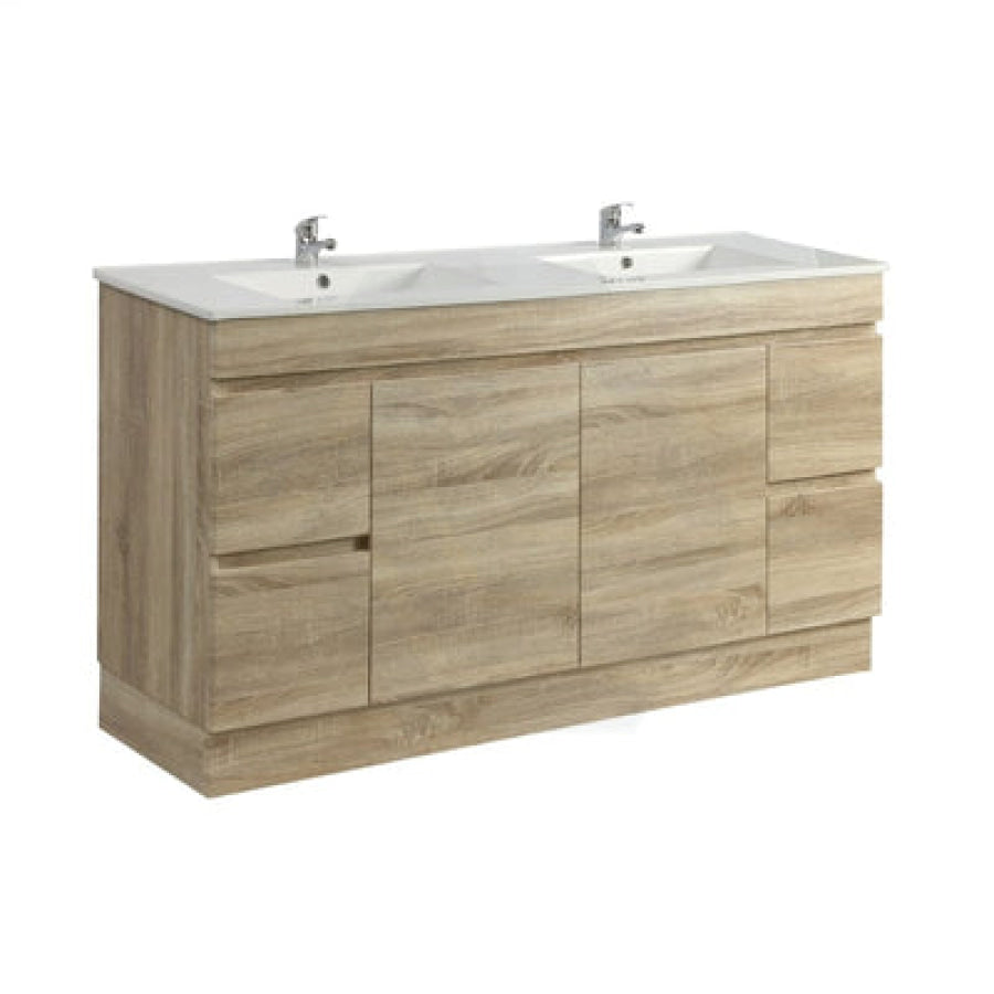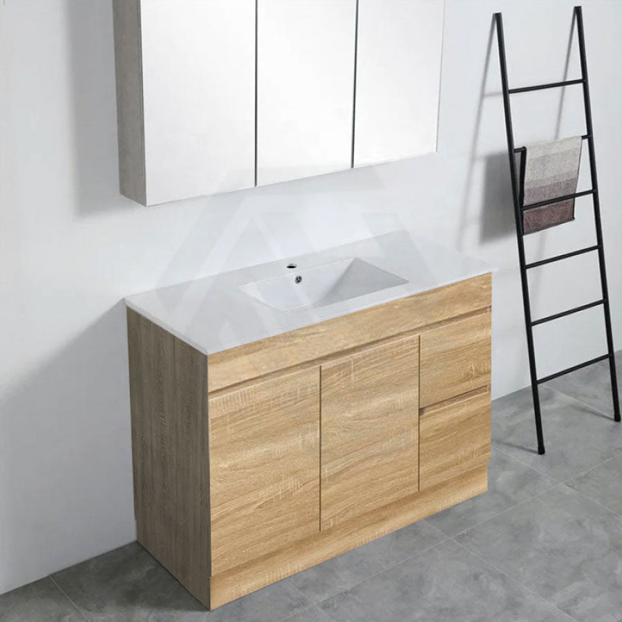 600-1500mm Berge Freestanding Bathroom Floor Vanity with Kickboard White Oak Wood Grain PVC Filmed Cabinet ONLY & Ceramic/Poly Top Available