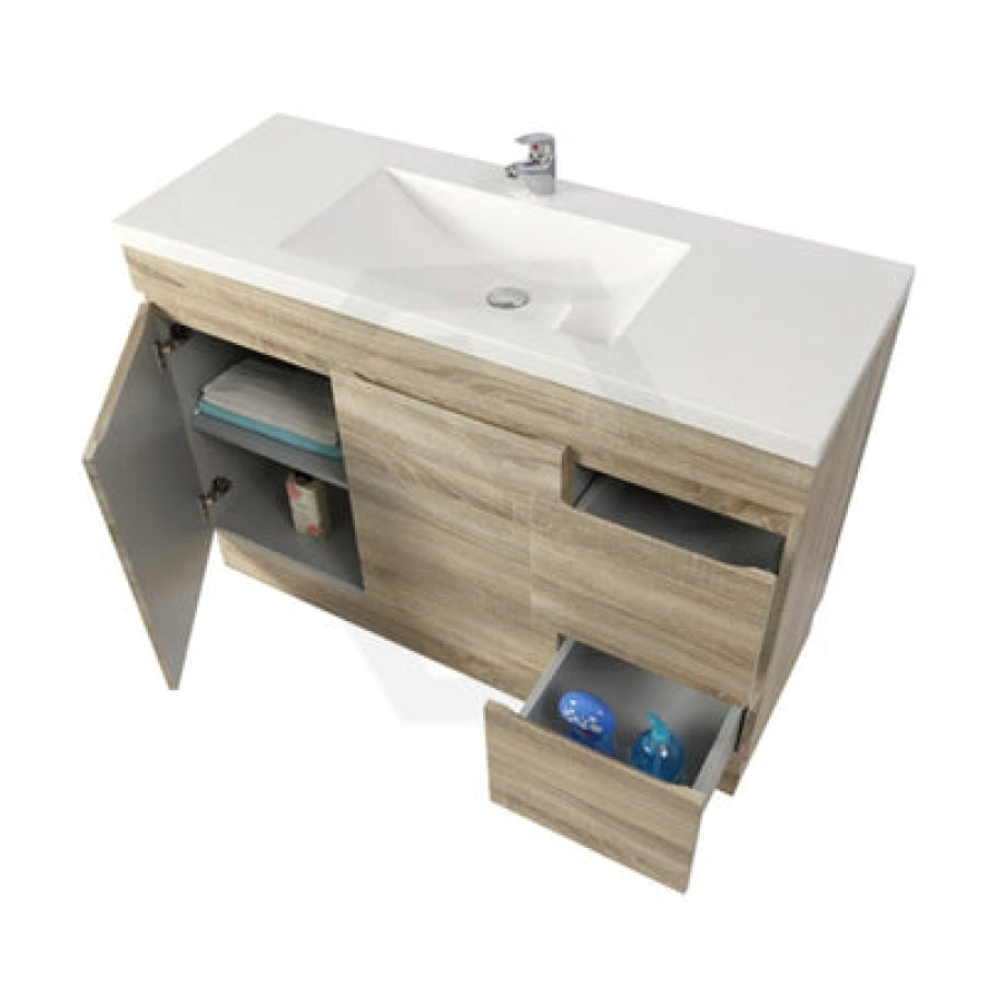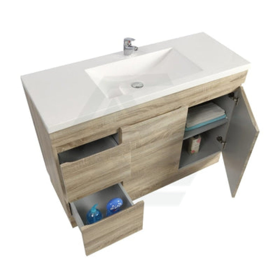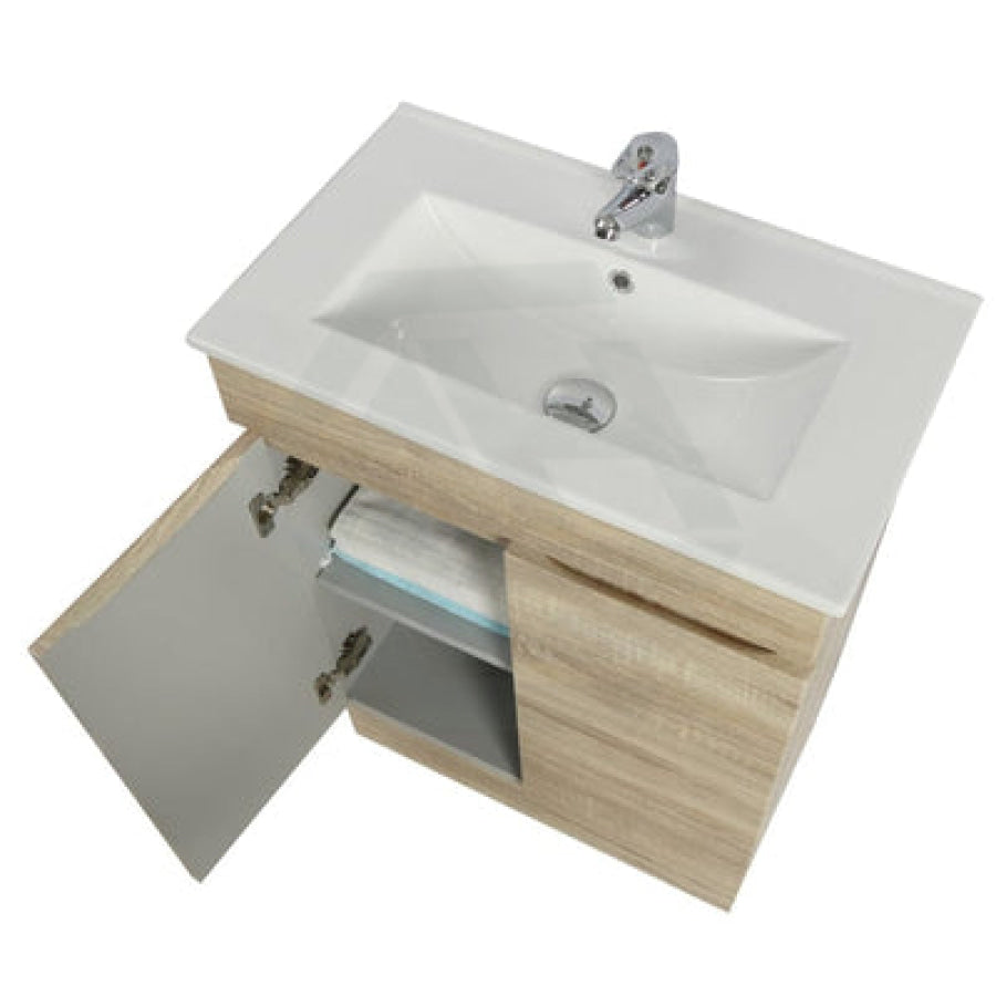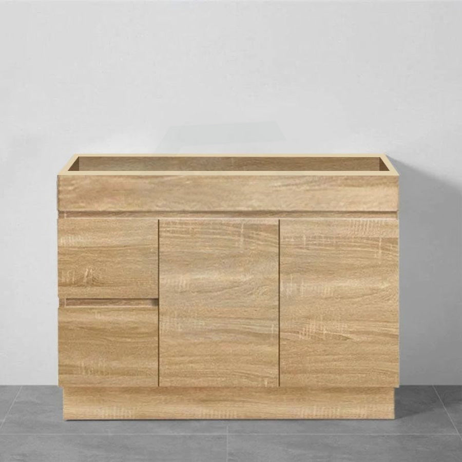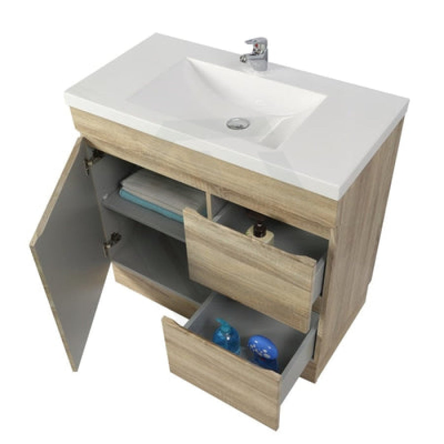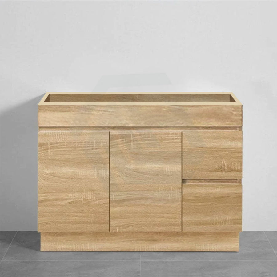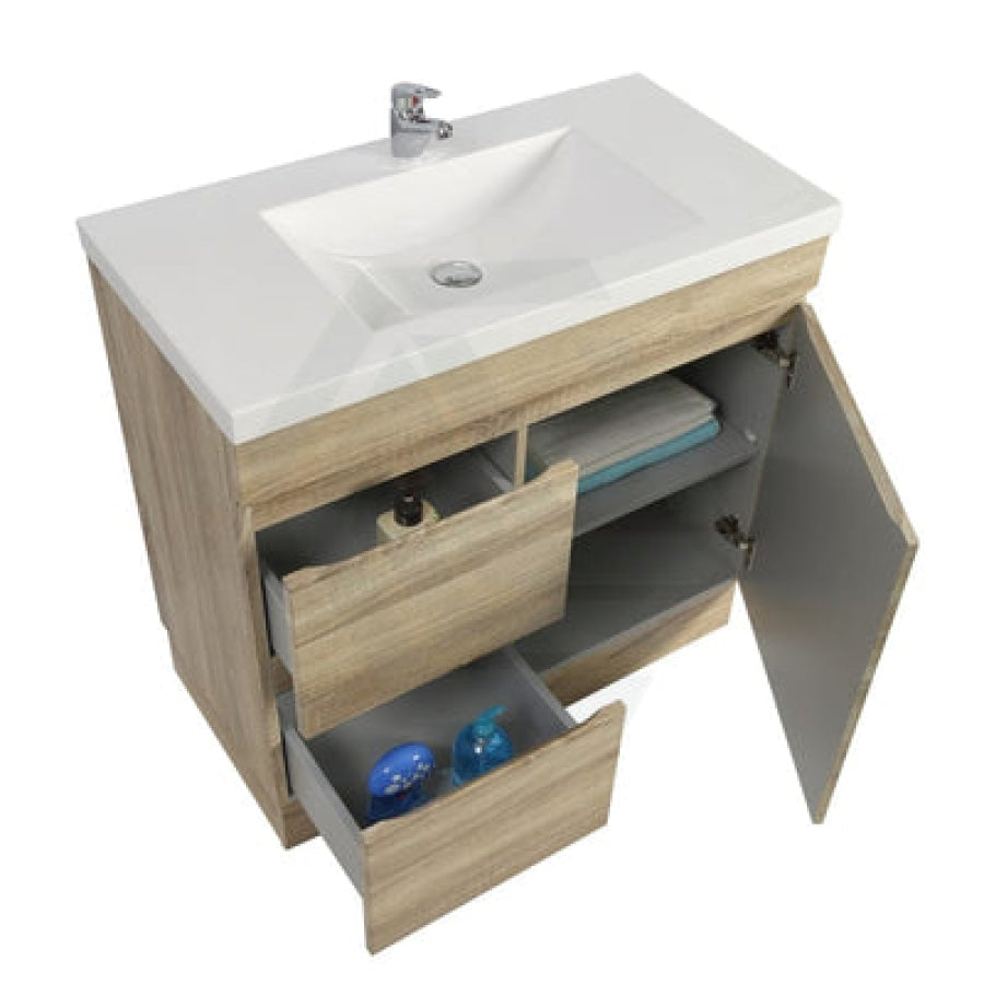 600-1500mm Berge Freestanding Bathroom Floor Vanity with Kickboard White Oak Wood Grain PVC Filmed Cabinet ONLY & Ceramic/Poly Top Available