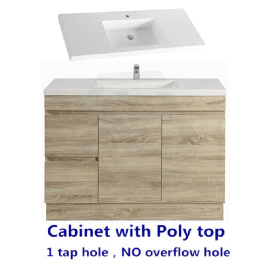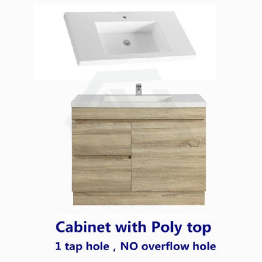 - Freestanding vanity coming with an optional ceramic/poly top.