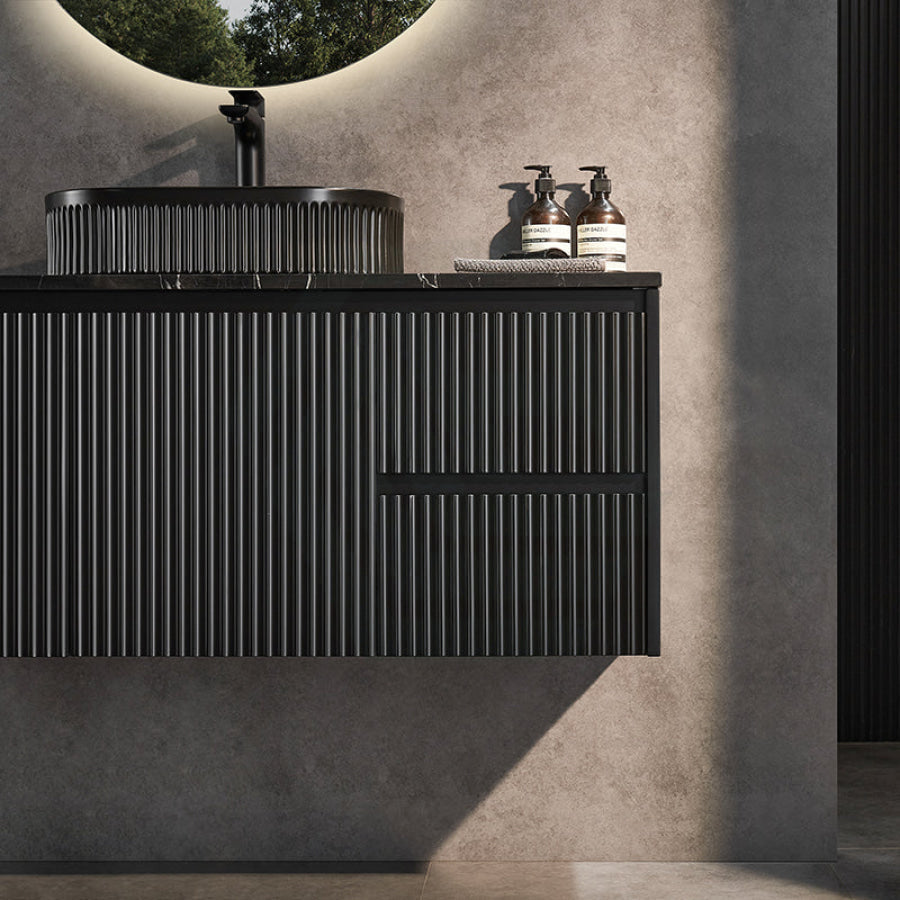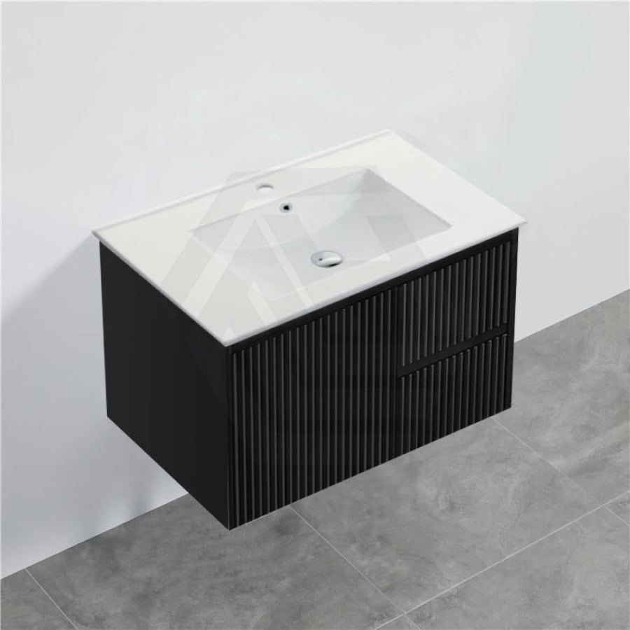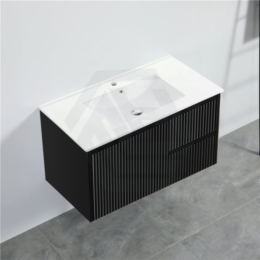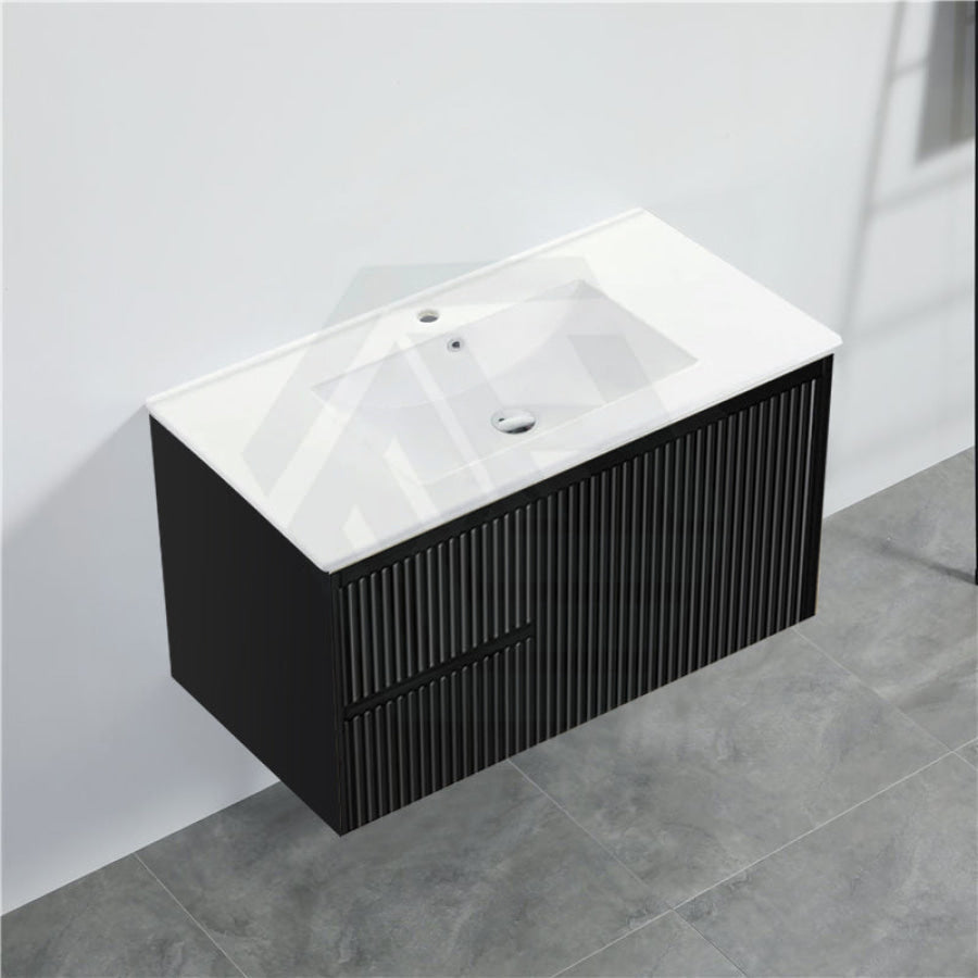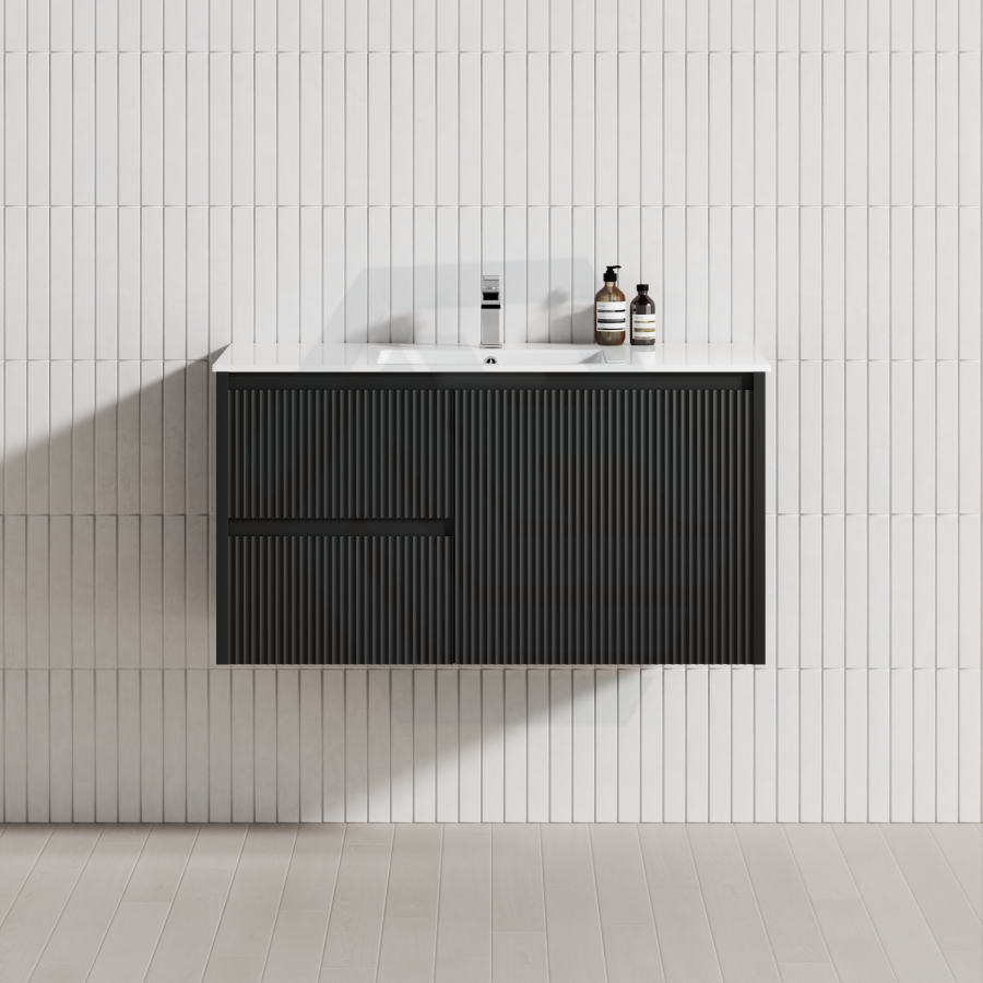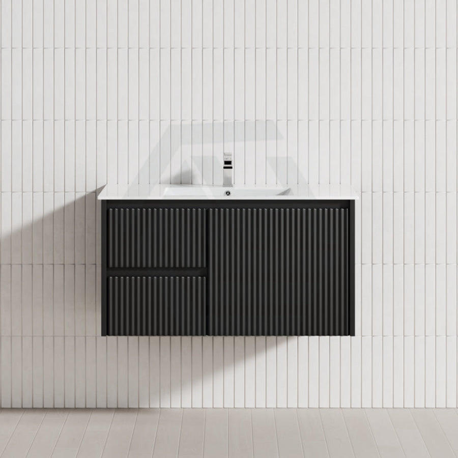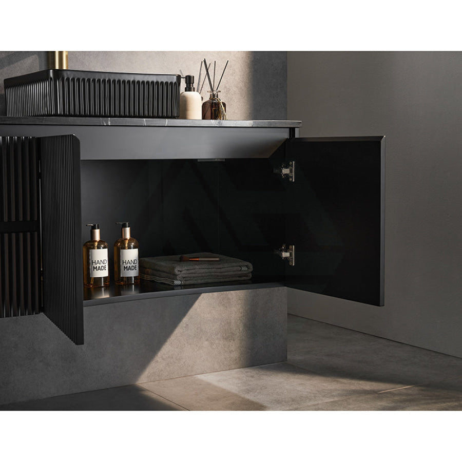600-1500mm Brindabella Wall Hung Bathroom Floating Vanity Matt Black PVC Board Cabinet ONLY&Ceramic Top Available