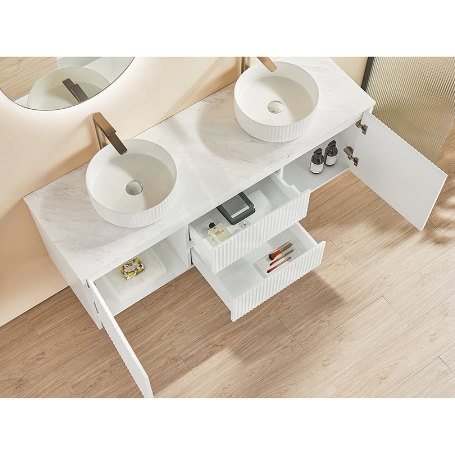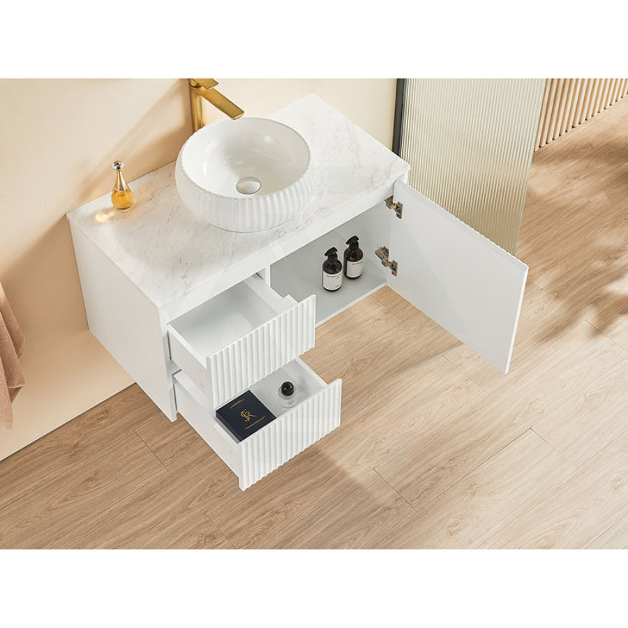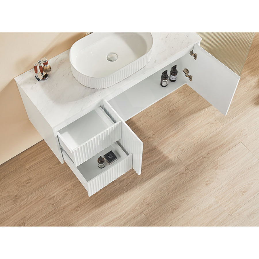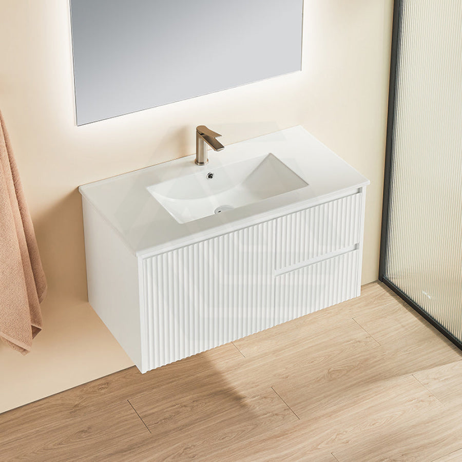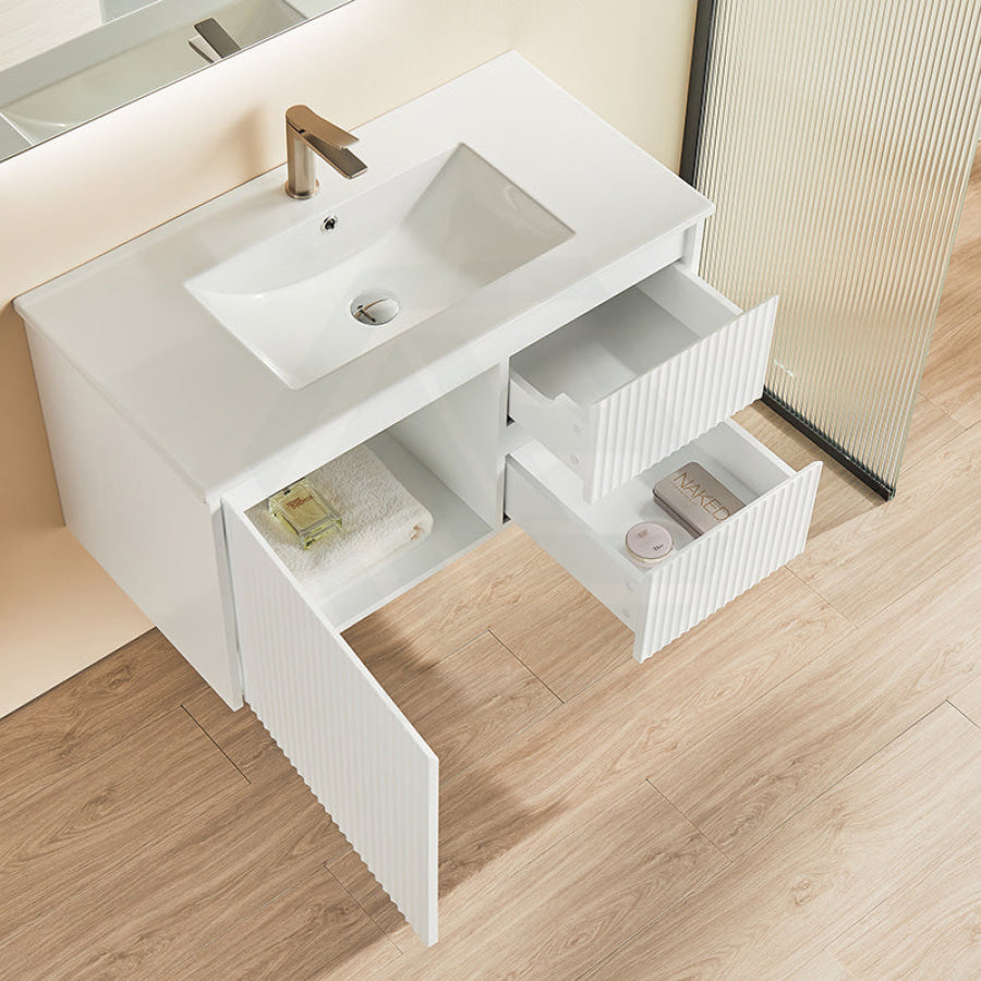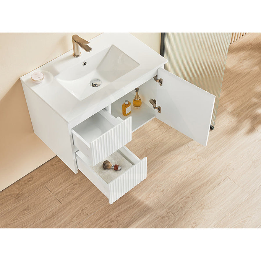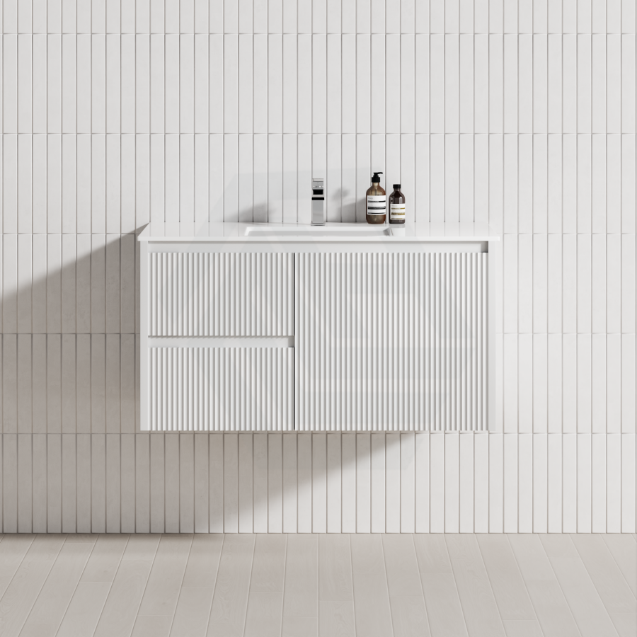 600-1500mm Brindabella Wall Hung Bathroom Floating Vanity Matt White PVC Board Cabinet ONLY&Ceramic Top Available