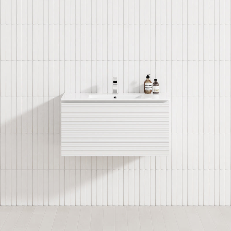 600-1500mm Lukka Sedona Modern Fluted Wall Hung PVC Vanity Matt White
