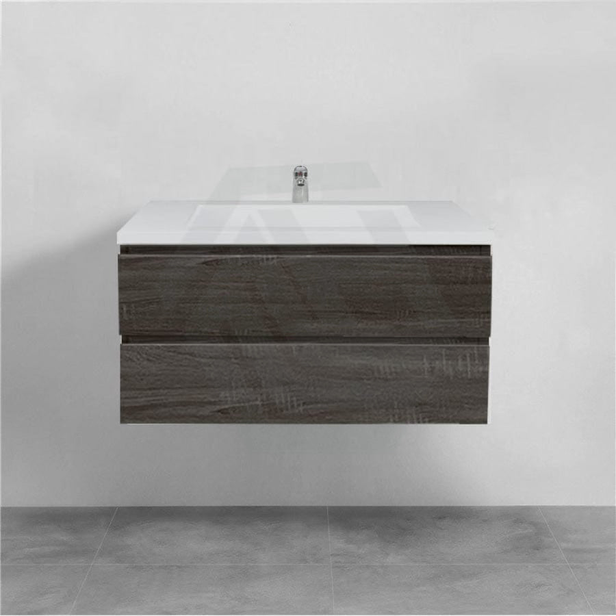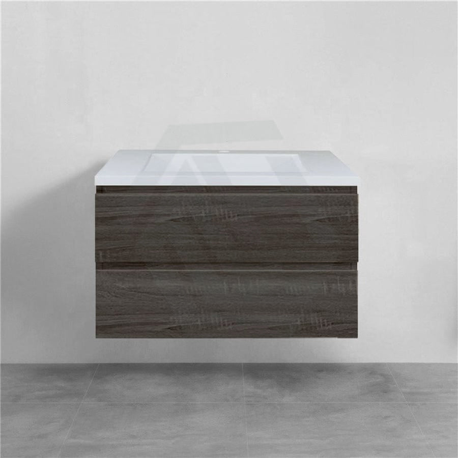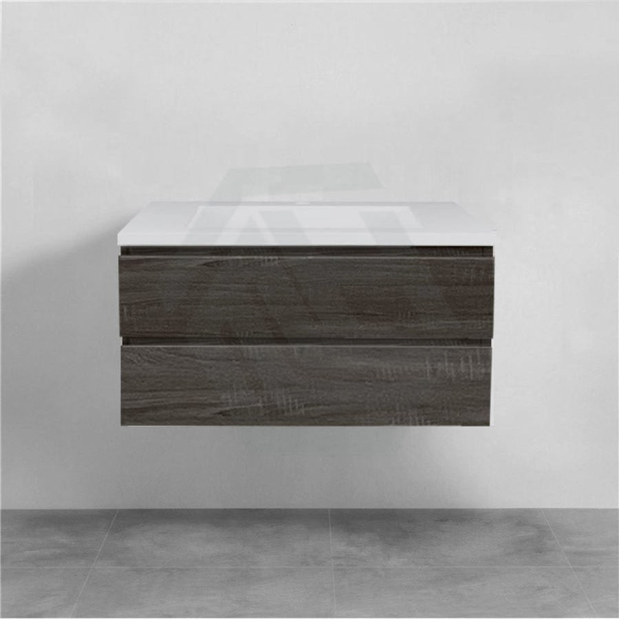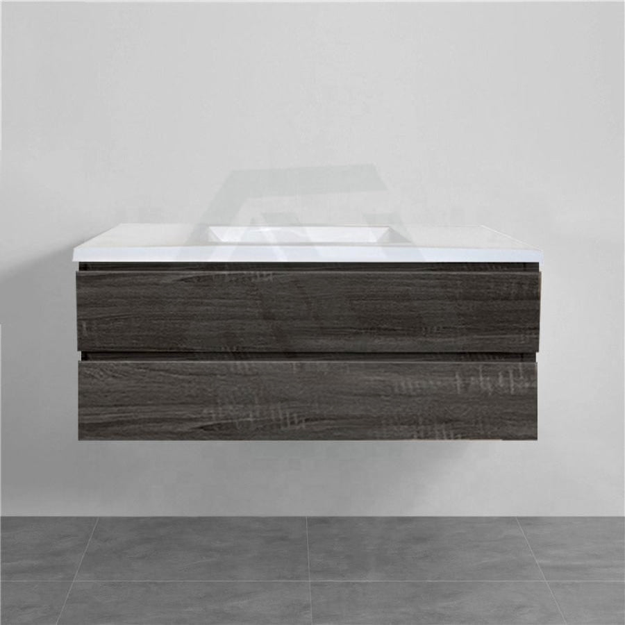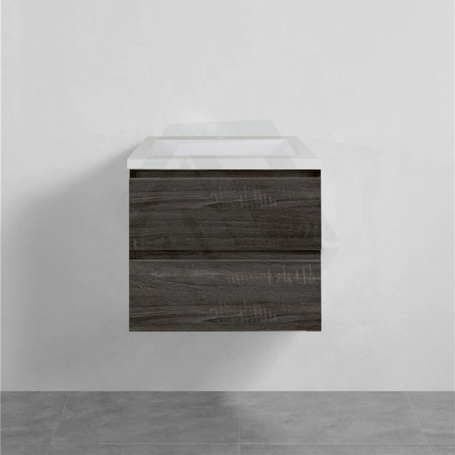 600-1500mm Wall Hung Bathroom Floating Vanity Dark Grey Wood Grain PVC Filmed Drawers Cabinet ONLY&Ceramic/Poly Top Available