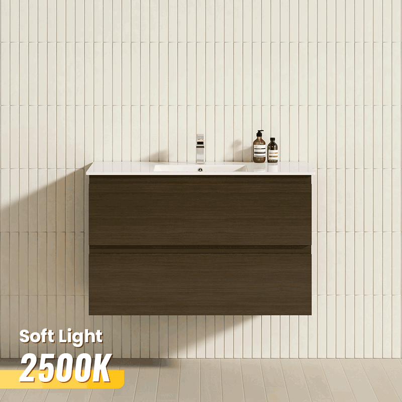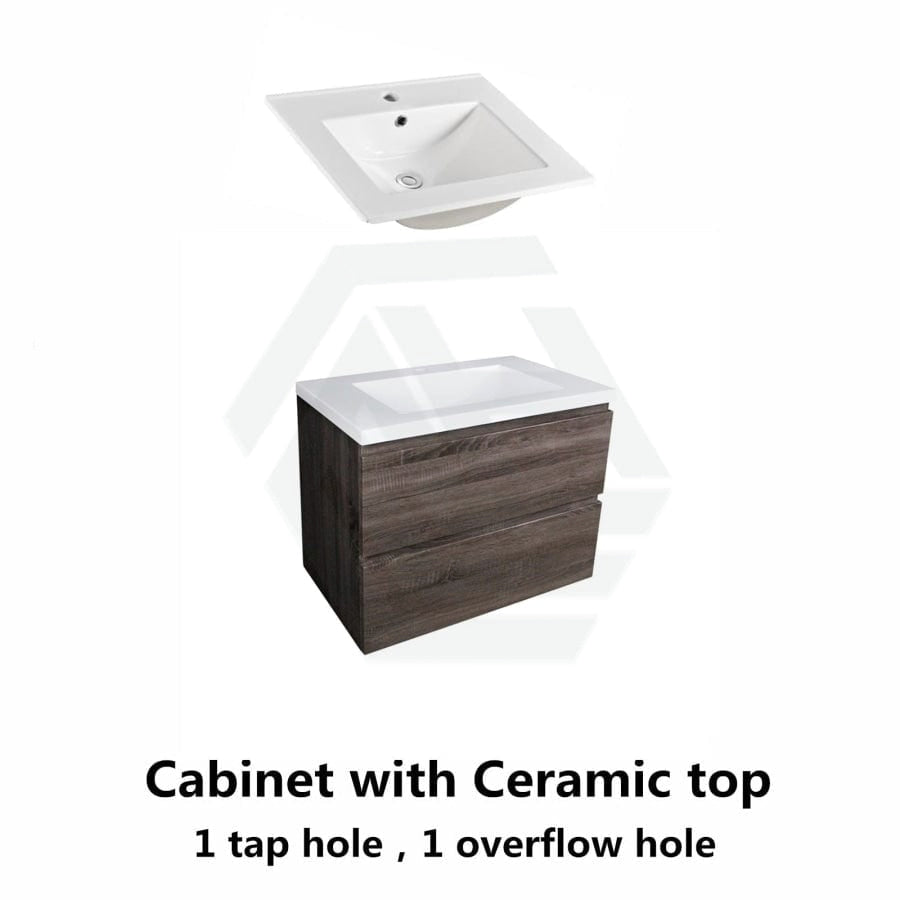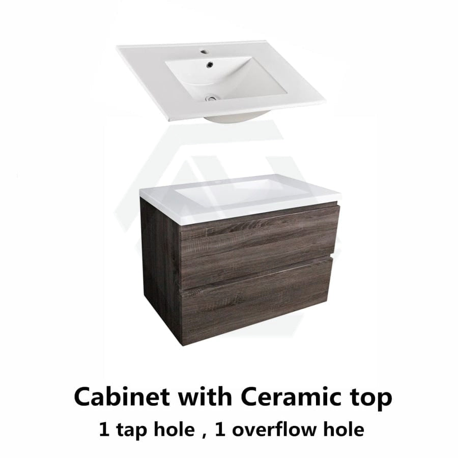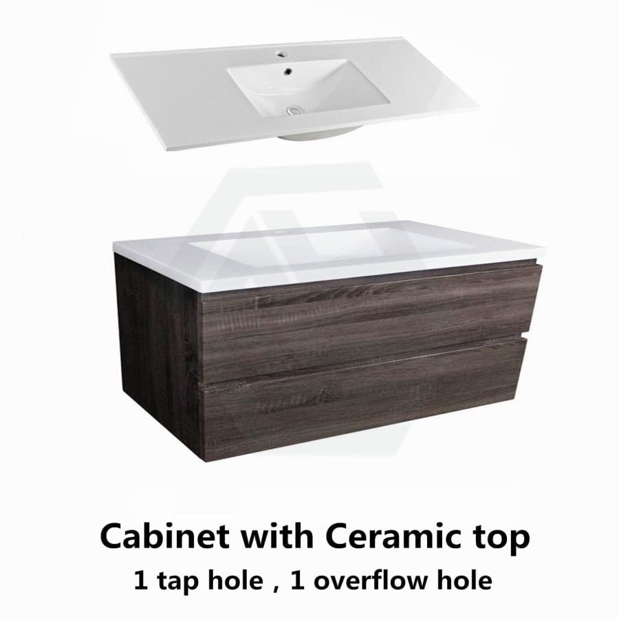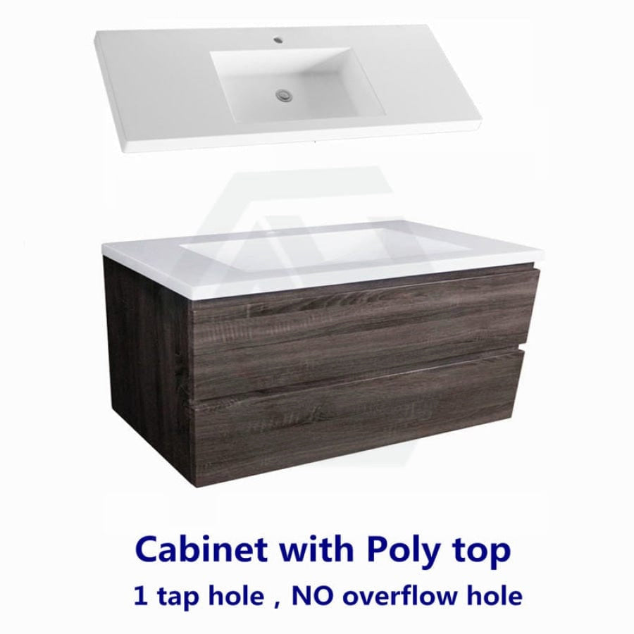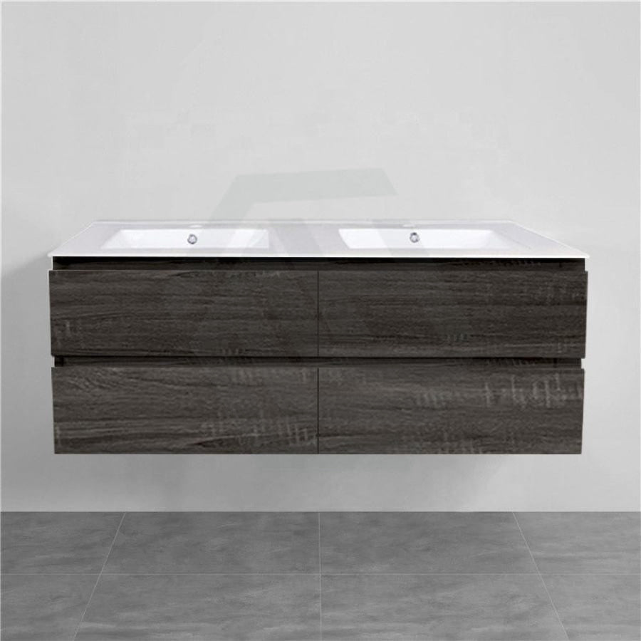 600-1500mm Wall Hung Bathroom Floating Vanity Dark Grey Wood Grain PVC Filmed Drawers Cabinet ONLY&Ceramic/Poly Top Available