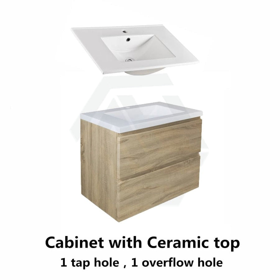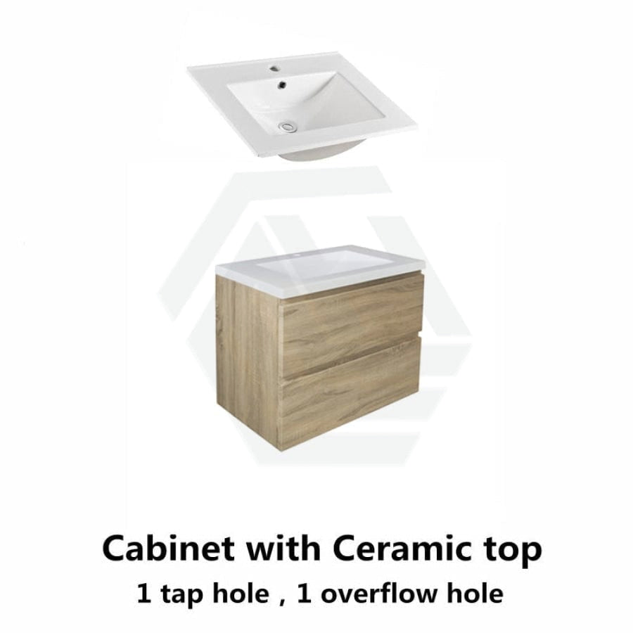 Elevate your bathroom with our 600-1500mm Wall Hung Bathroom Floating Vanity! Its sleek White Oak Wood Grain PVC Filmed Drawers Cabinet provides stylish storage, while the Ceramic/Poly Top adds a touch of luxury. Upgrade your space with this modern and functional piece.