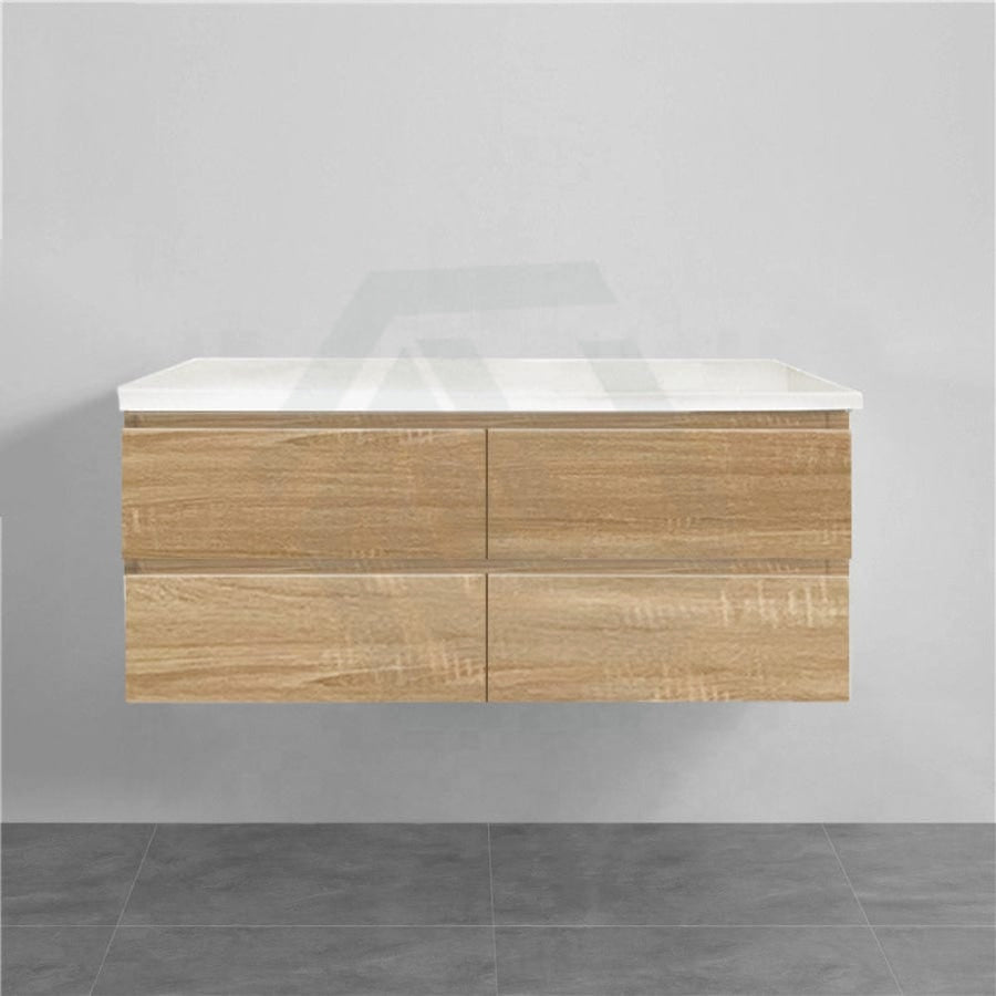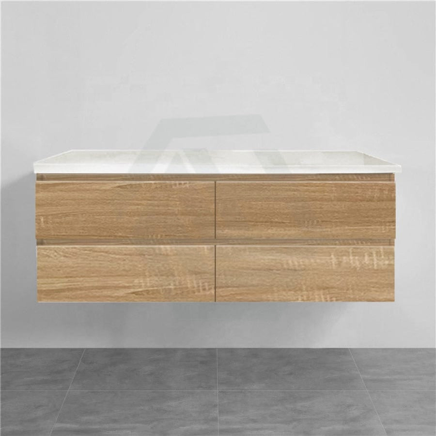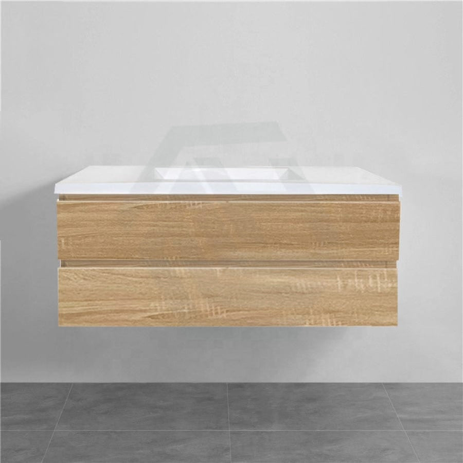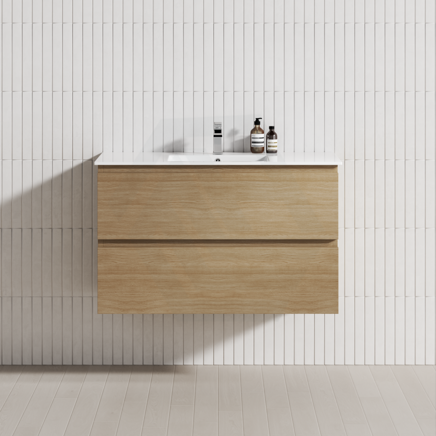 600-1500mm Wall Hung Bathroom Floating Vanity White Oak Wood Grain PVC Filmed Drawers Cabinet ONLY&Ceramic/Poly Top Available