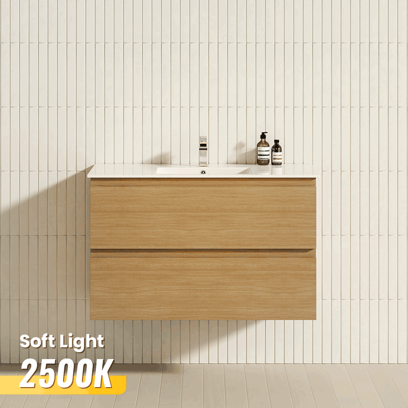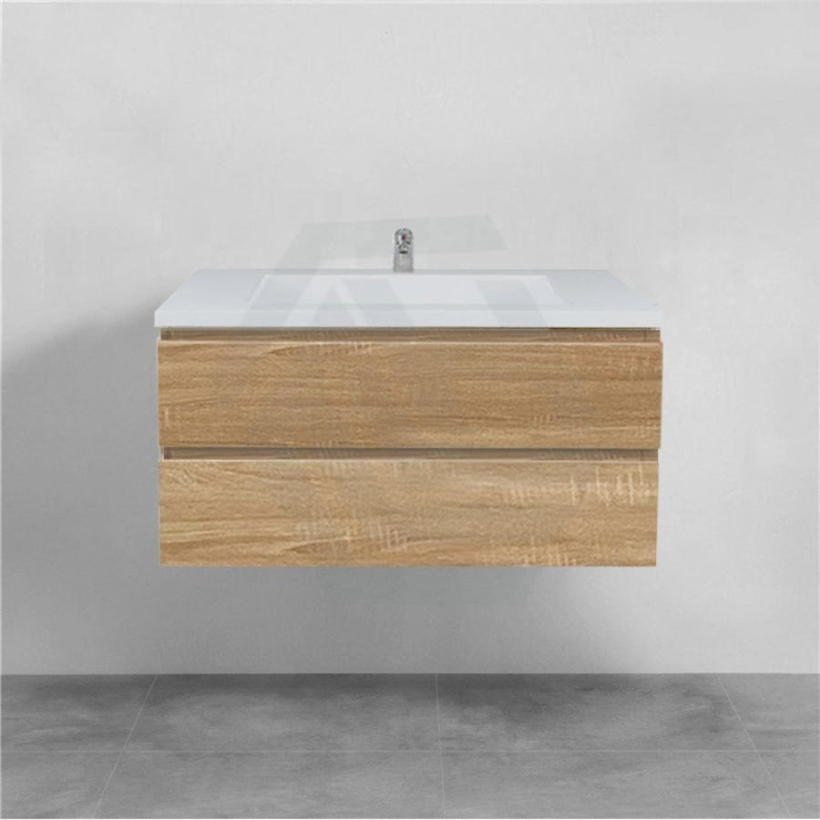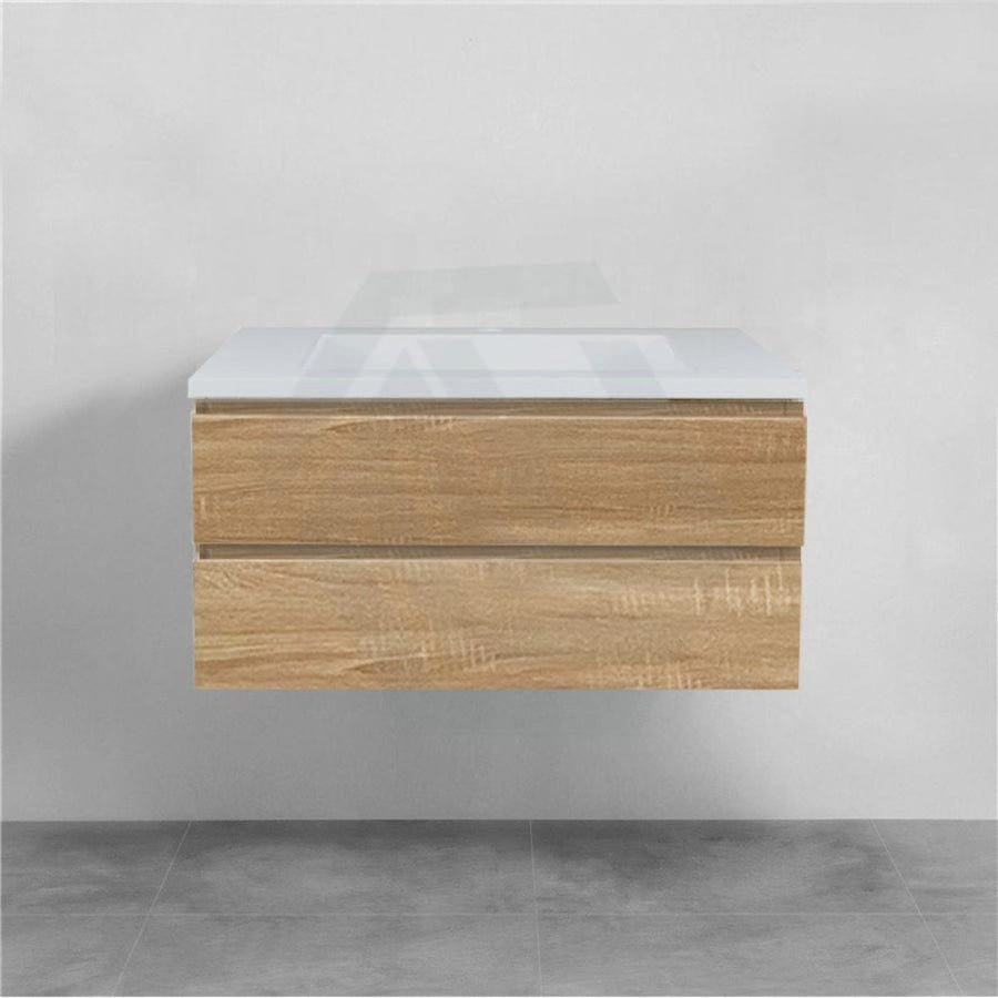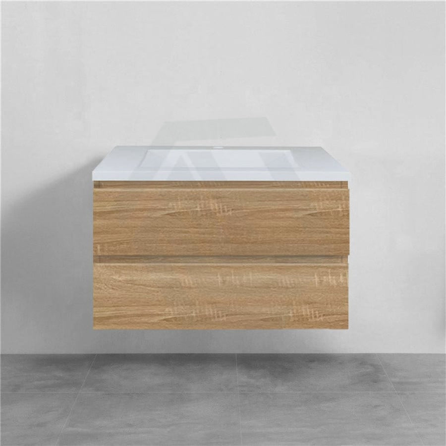 600-1500mm Wall Hung Bathroom Floating Vanity White Oak Wood Grain PVC Filmed Drawers Cabinet ONLY&Ceramic/Poly Top Available