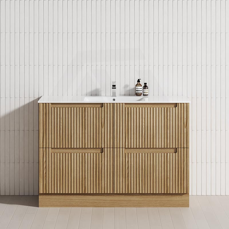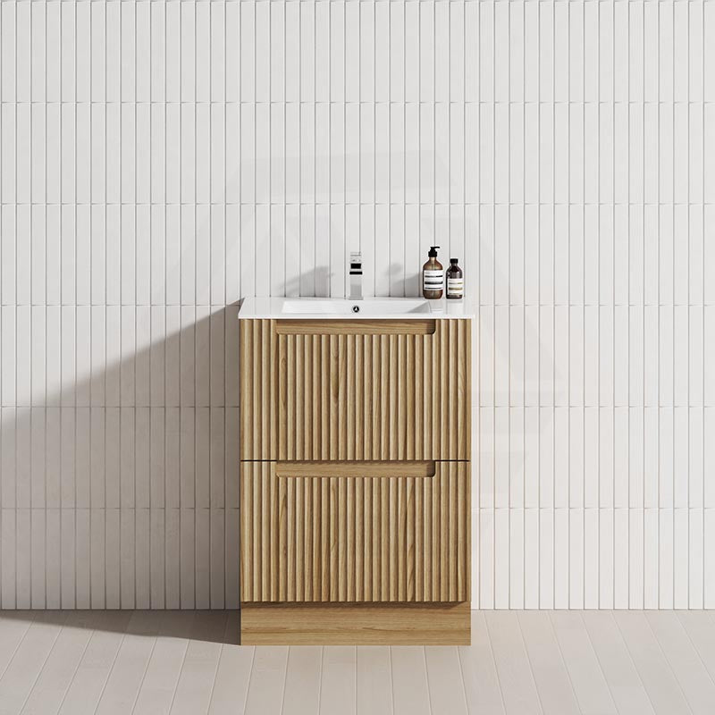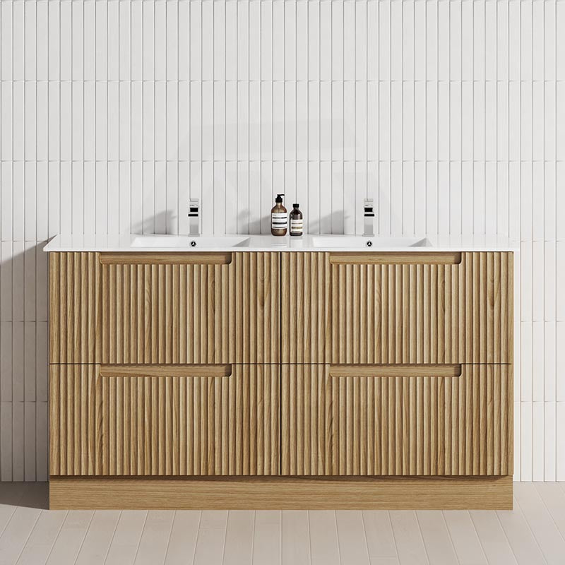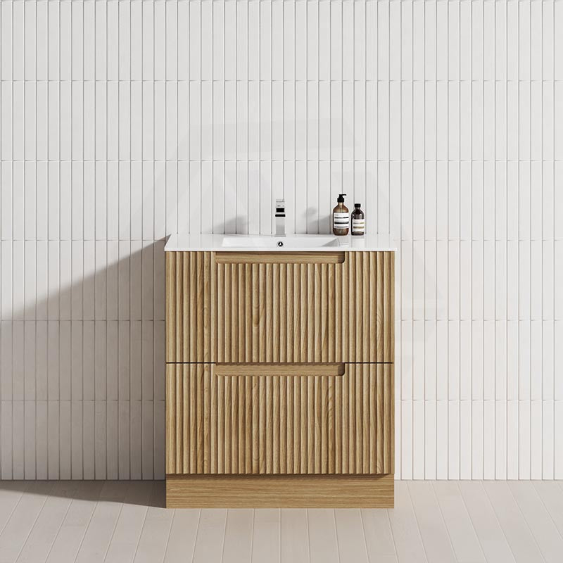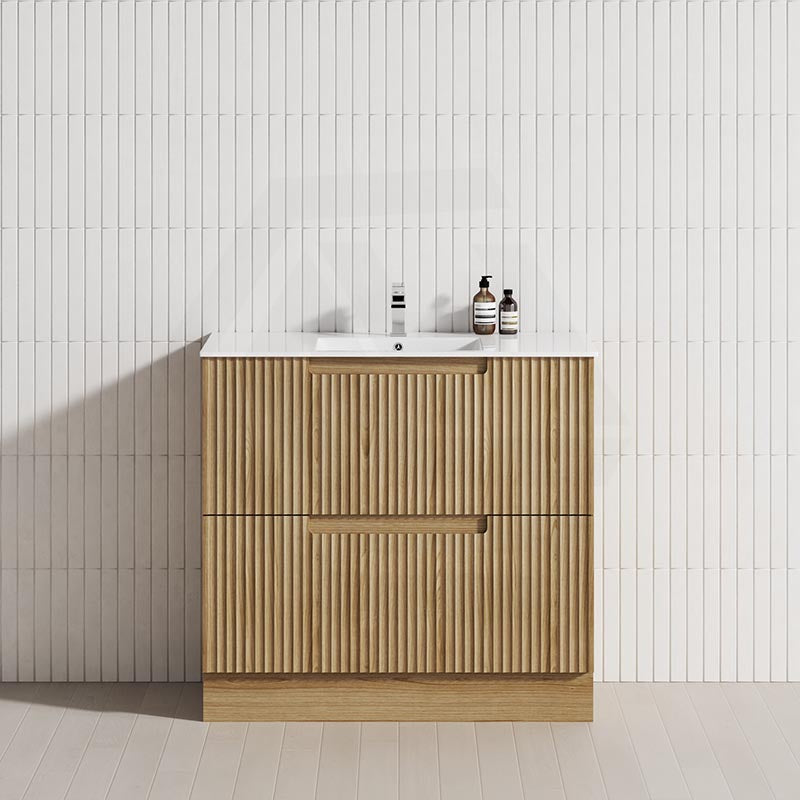 600-1800mm Aulic Lovina Fluted Freestanding Vanity with Kickboard Finger Pull Drawers Harvest Oak