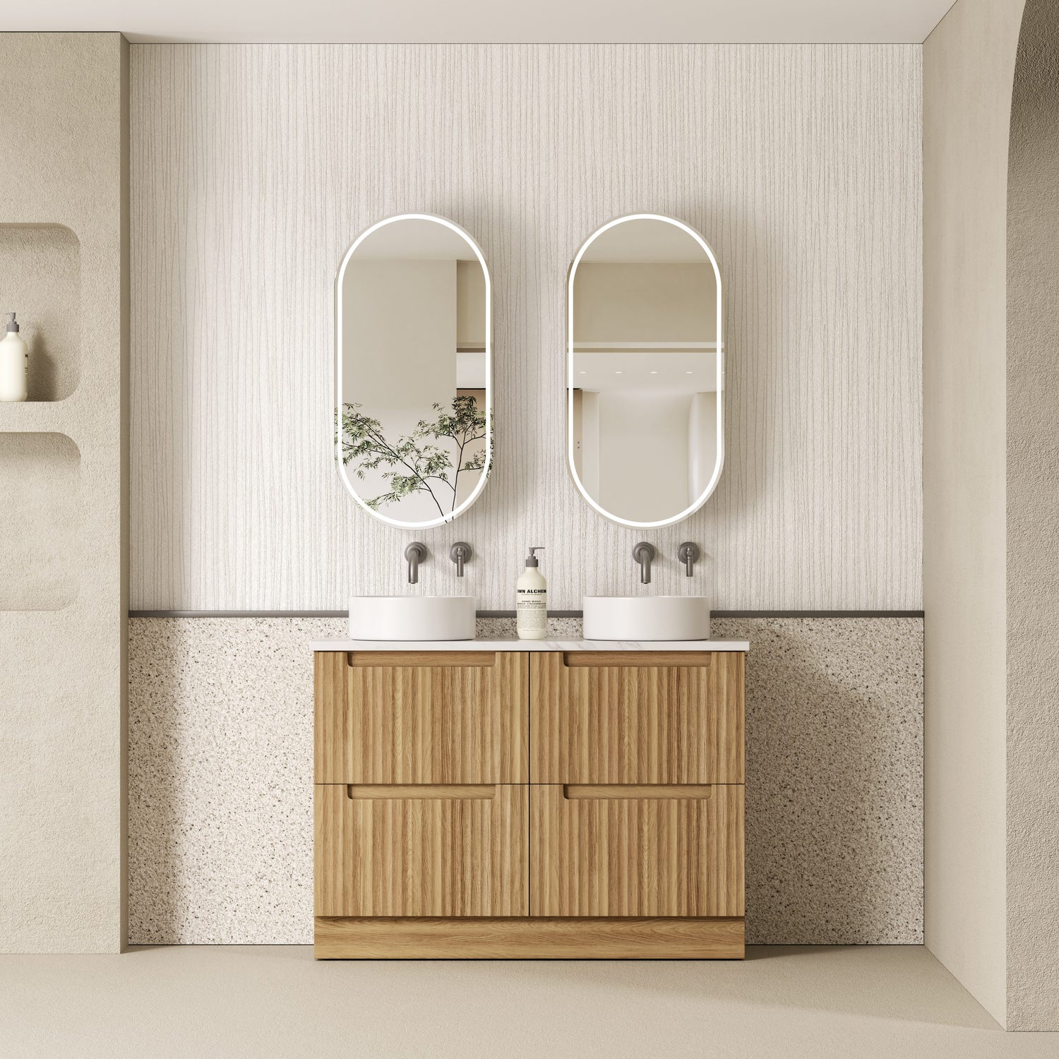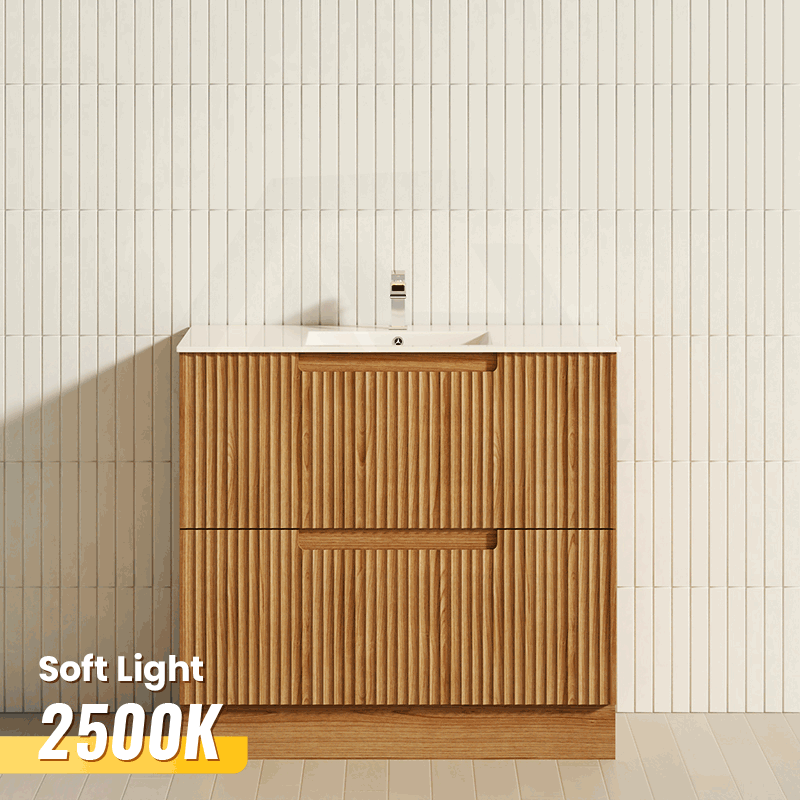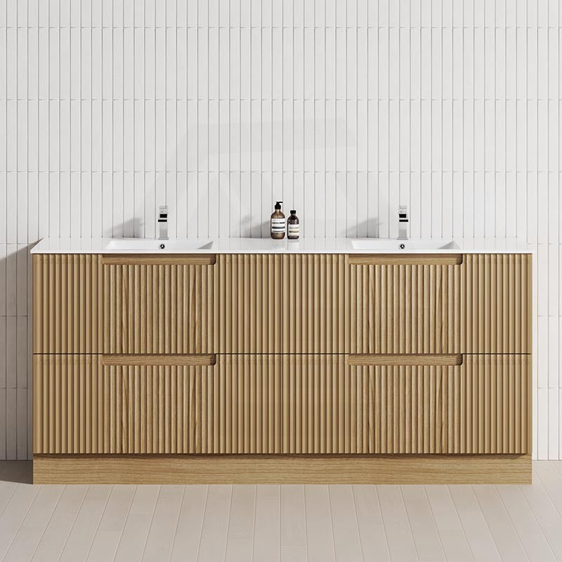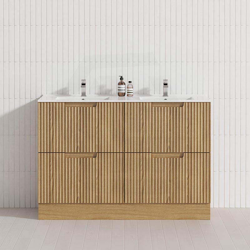 600-1800mm Aulic Lovina Fluted Freestanding Vanity with Kickboard Finger Pull Drawers Harvest Oak