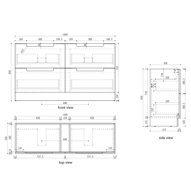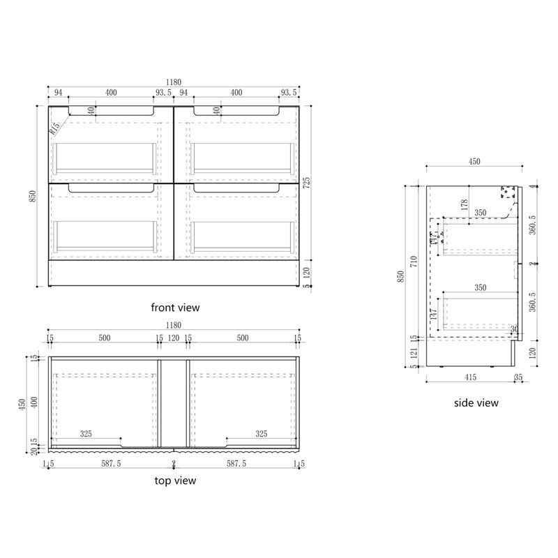 ✔ 1200/1500mm Vanity: Offers flexible plumbing options – waste pipes can be routed through the middle or either side of the cabinet for easy installation.