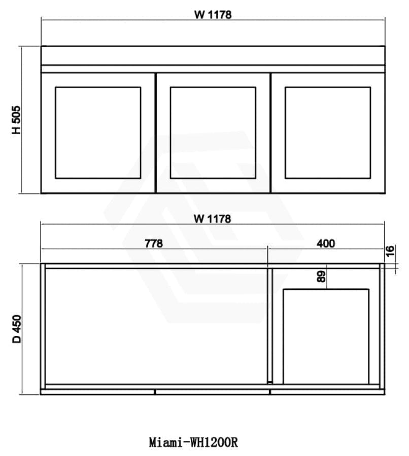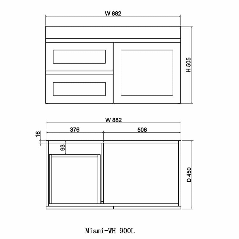 Dimension | ABS-Miami600WH (590x450x505mm) ABS-Miami750WH-L (735x450x505mm) ABS-Miami750WH-R (735x450x505mm) ABS-Miami900WH-L (882x450x505mm) ABS-Miami900WH-R (882x450x505mm) ABS-Miami1200WH-L (1178x450x505mm) ABS-Miami1200WH-R (1178x450x505mm) ABS-Miami1200WH-DB (1178x450x505mm) |