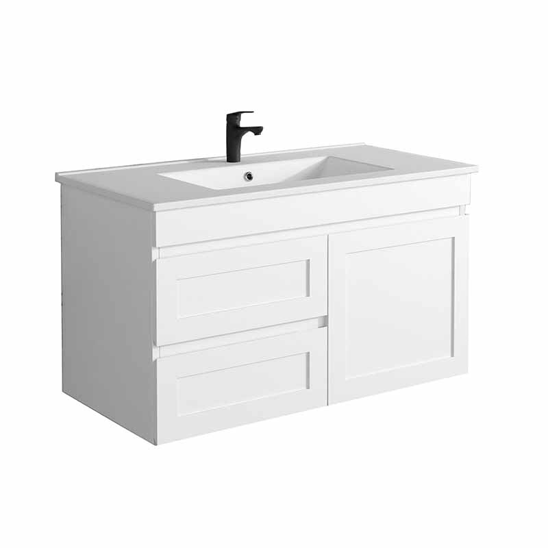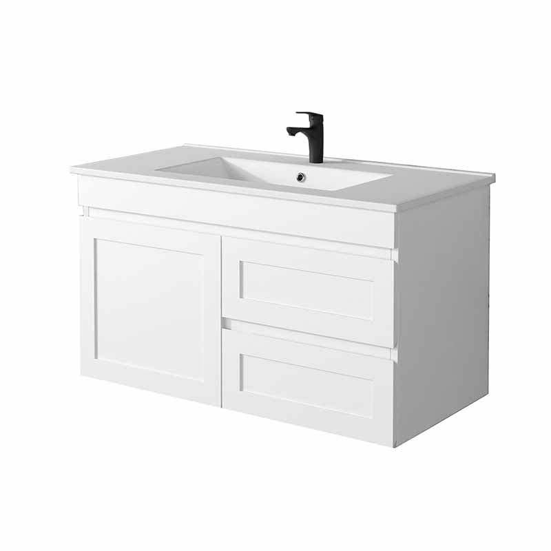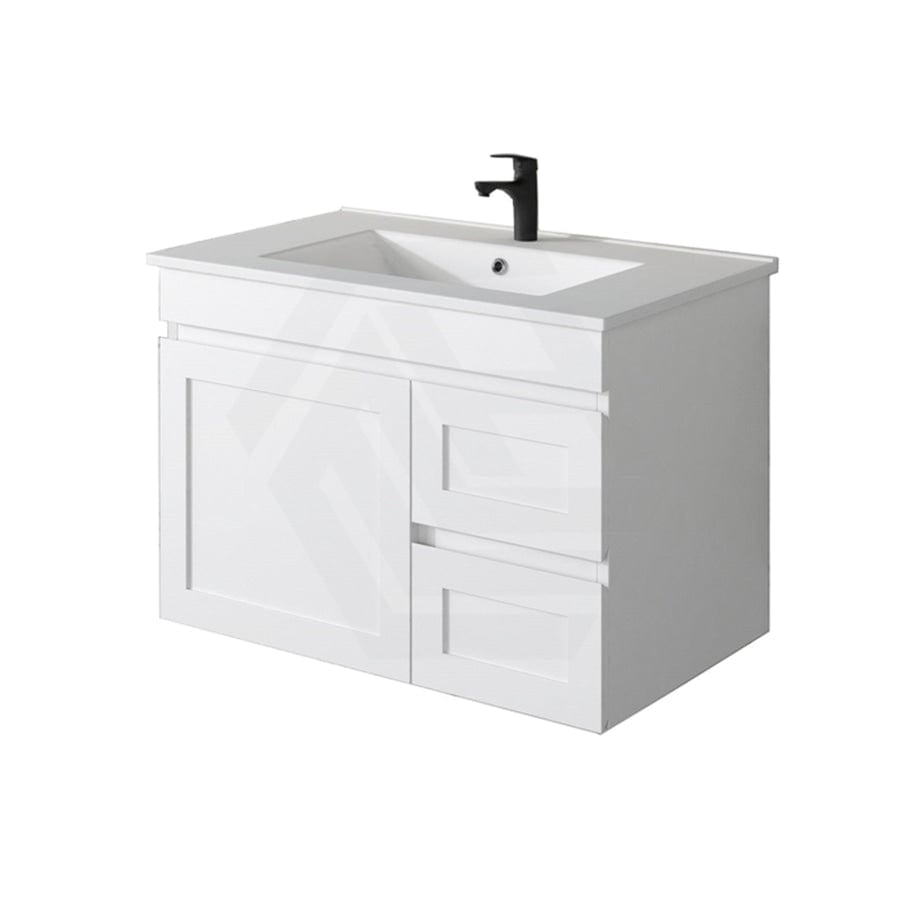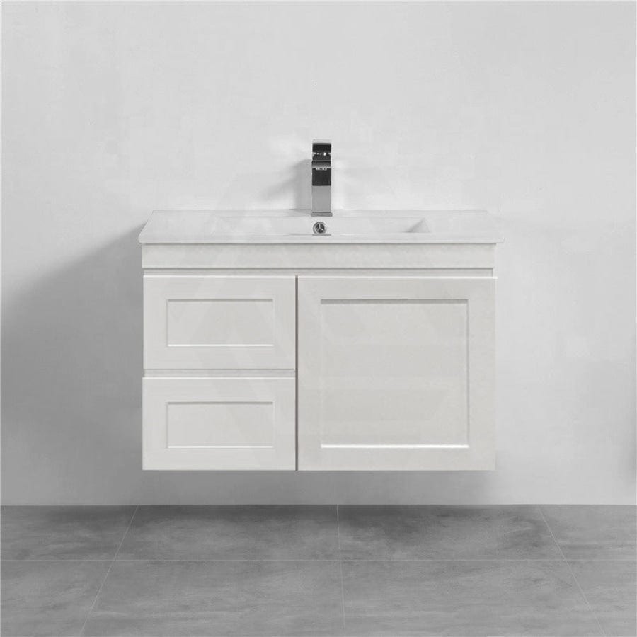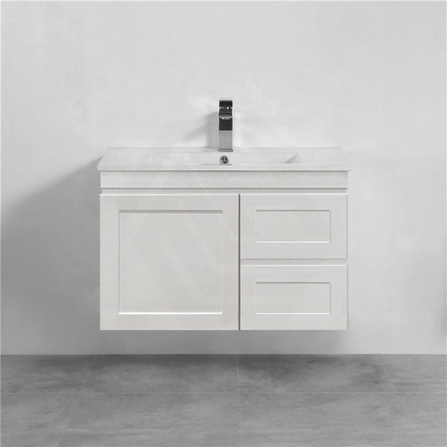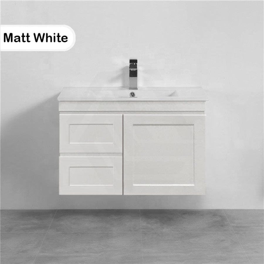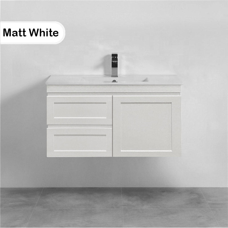 600-1200mm Miami Plywood Wall Hung Bathroom Floating Vanity with Left / Right Drawers MATT WHITE Shaker Hampton Style Cabinet ONLY&Ceramic/Poly Top Available