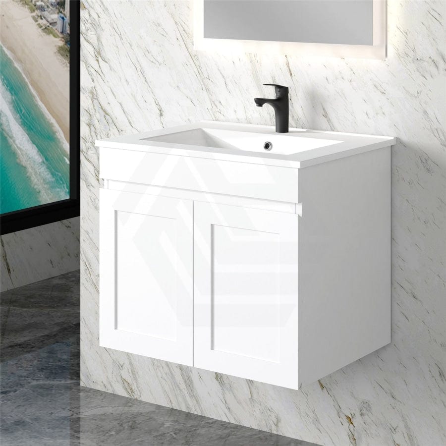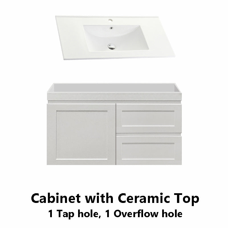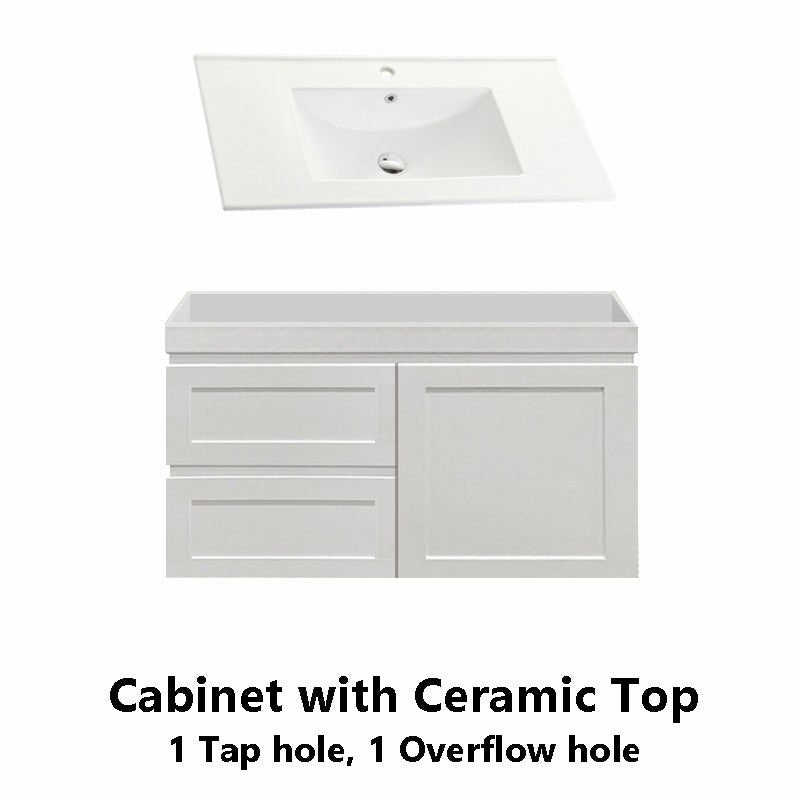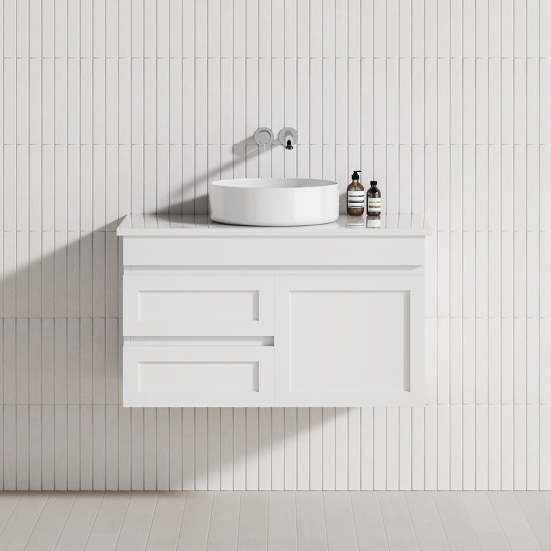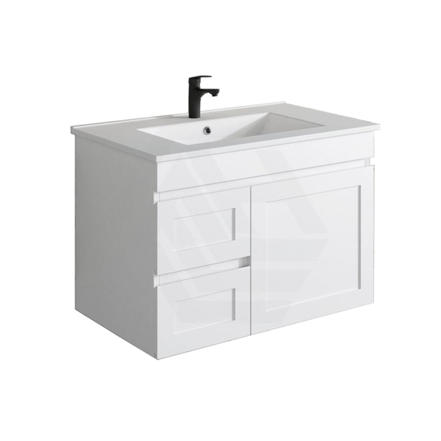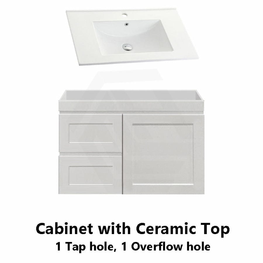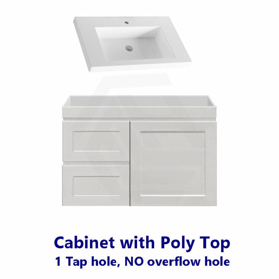 600-1200mm Miami Plywood Wall Hung Bathroom Floating Vanity with Left / Right Drawers MATT WHITE Shaker Hampton Style Cabinet ONLY&Ceramic/Poly Top Available
