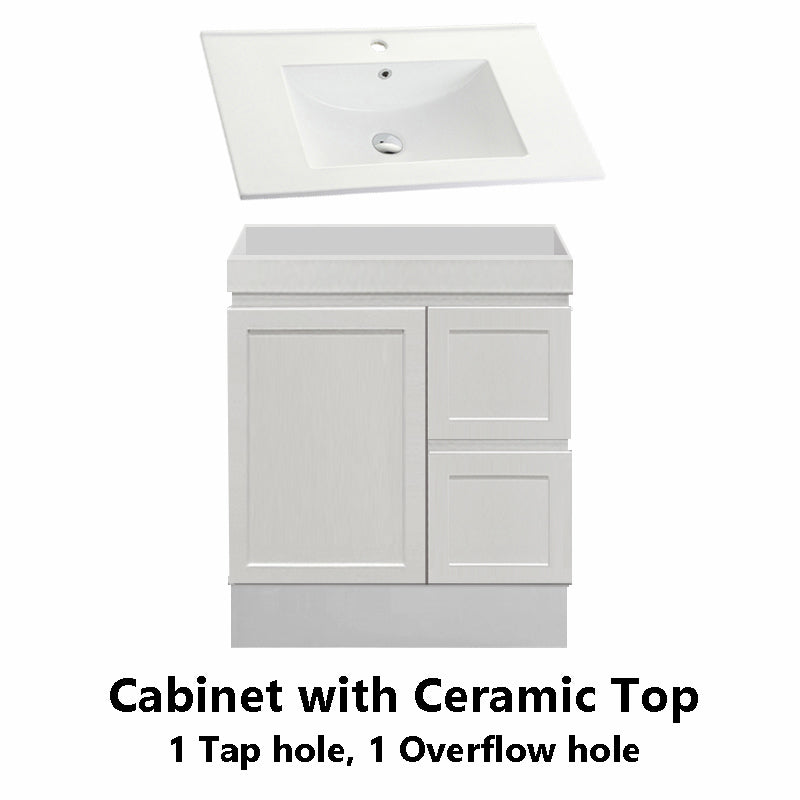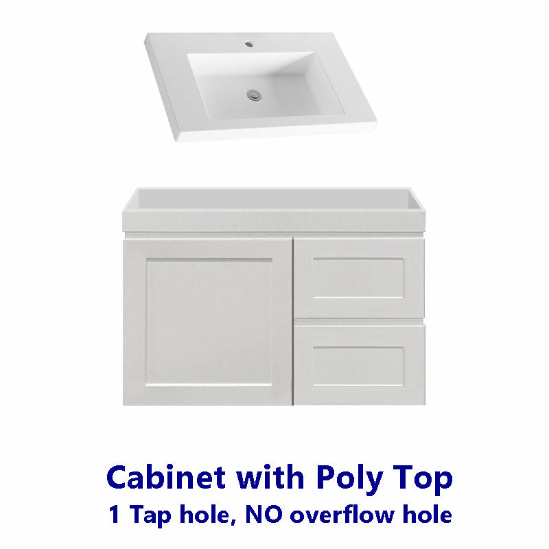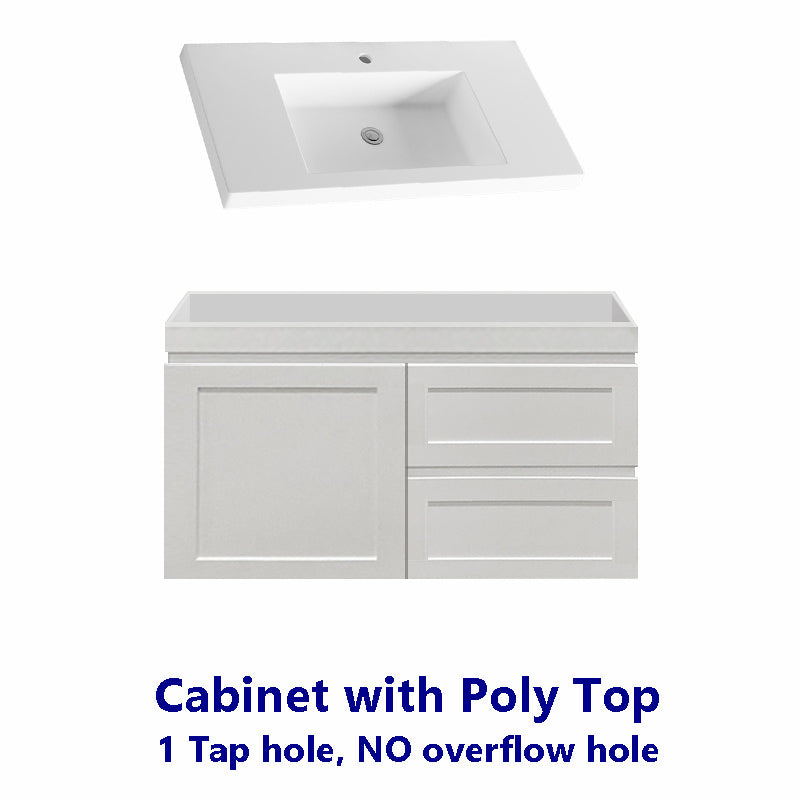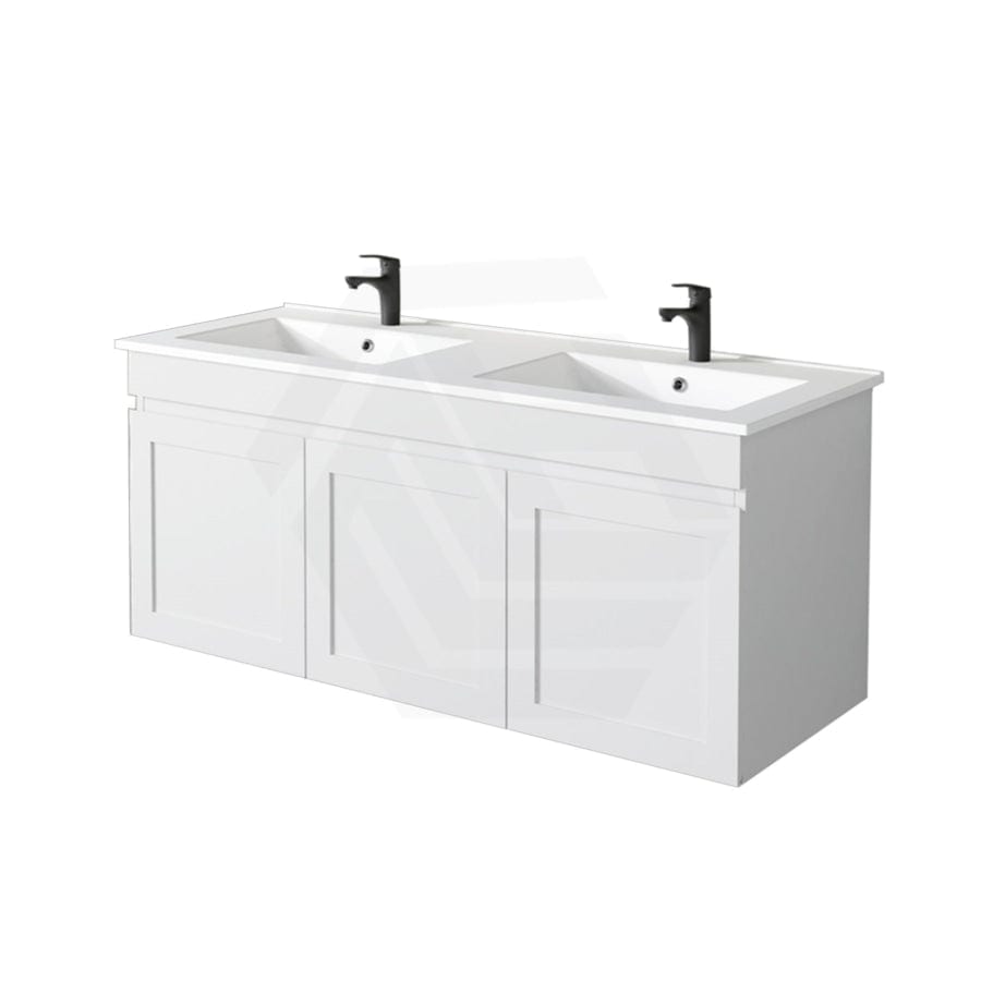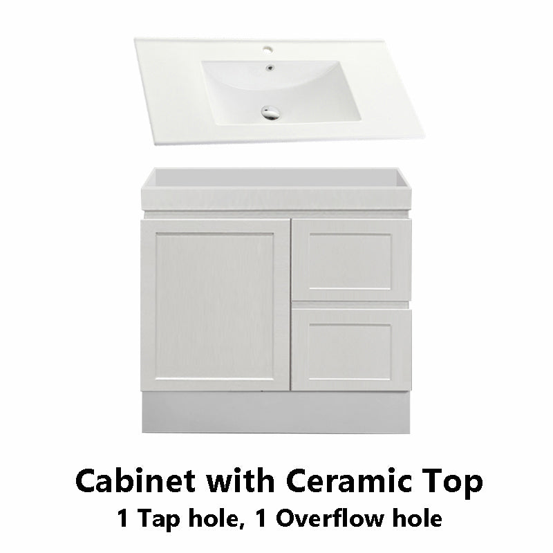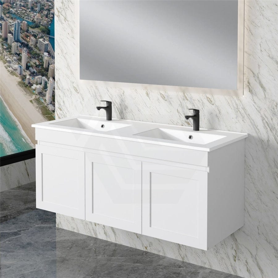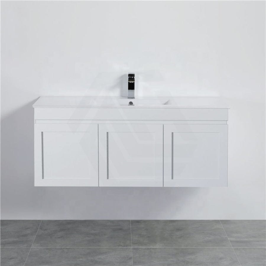 600-1200mm Miami Plywood Wall Hung Bathroom Floating Vanity with Left / Right Drawers MATT WHITE Shaker Hampton Style Cabinet ONLY&Ceramic/Poly Top Available
