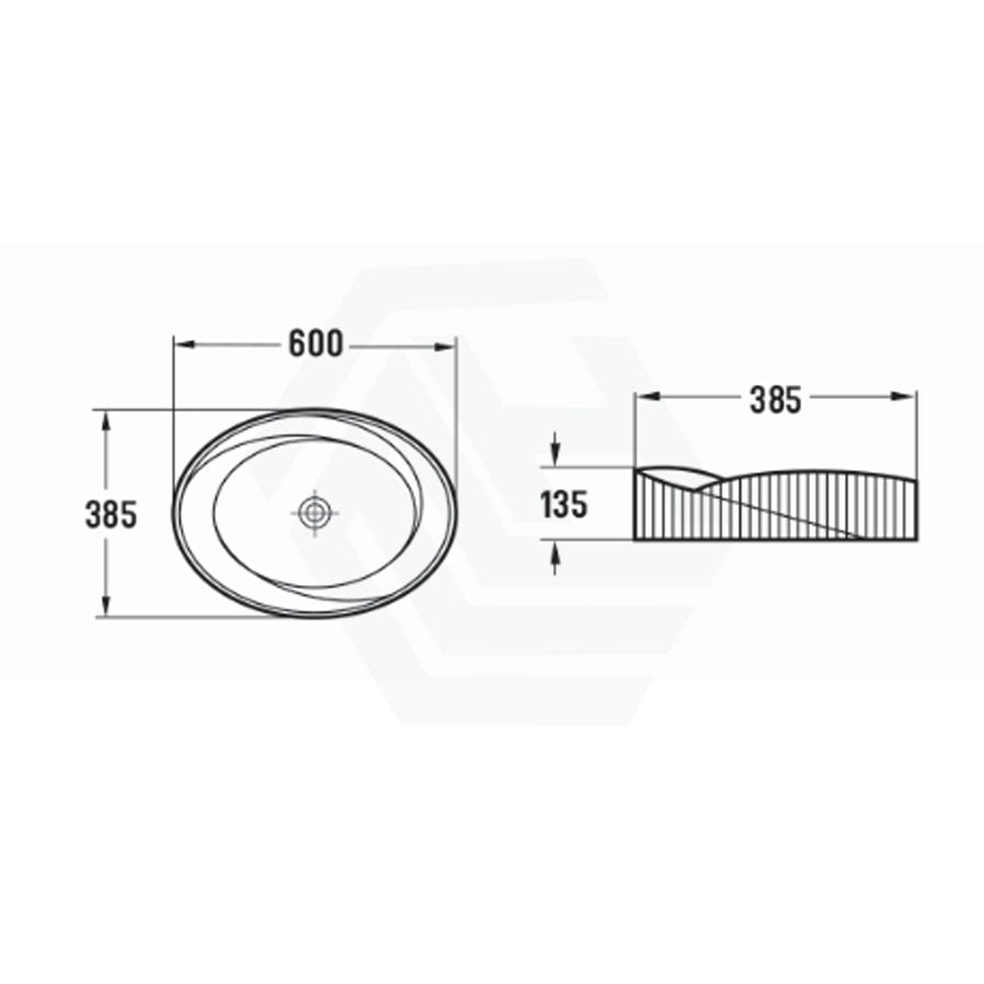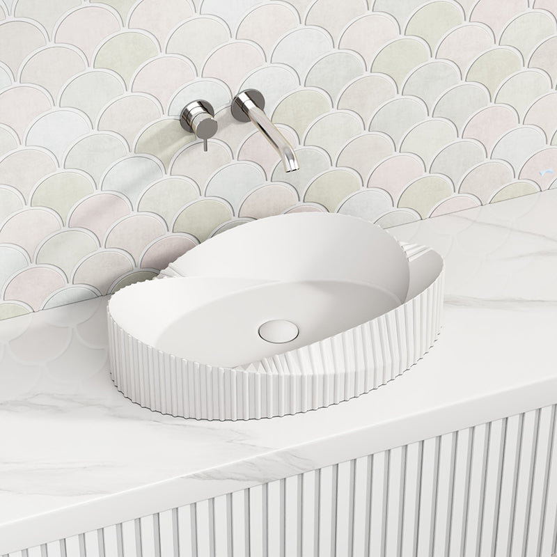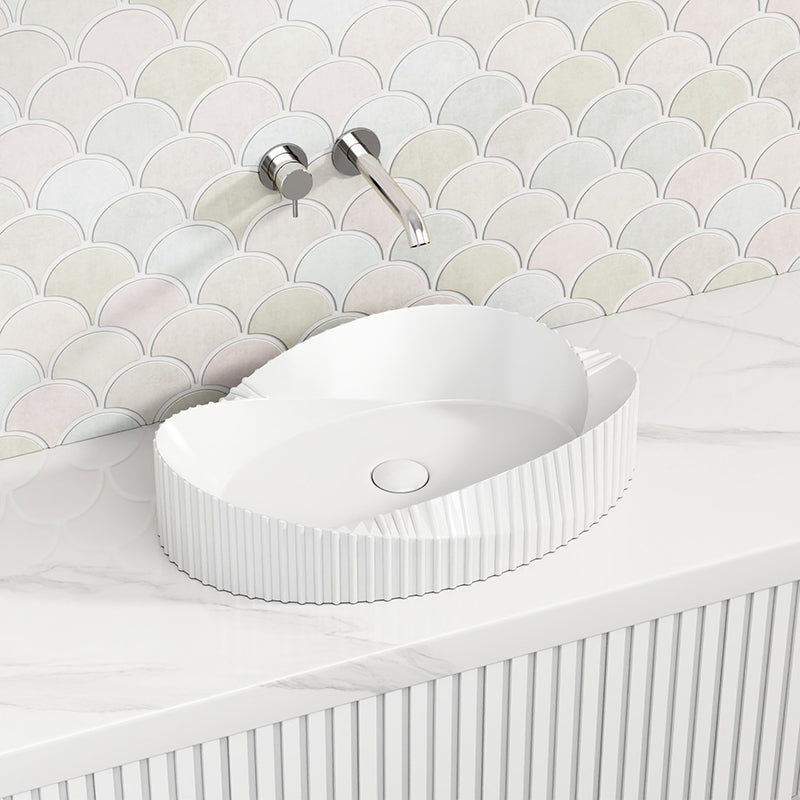600x385x135mm Special Shape Above Counter Ceramic Basin Fluted In Various Colour