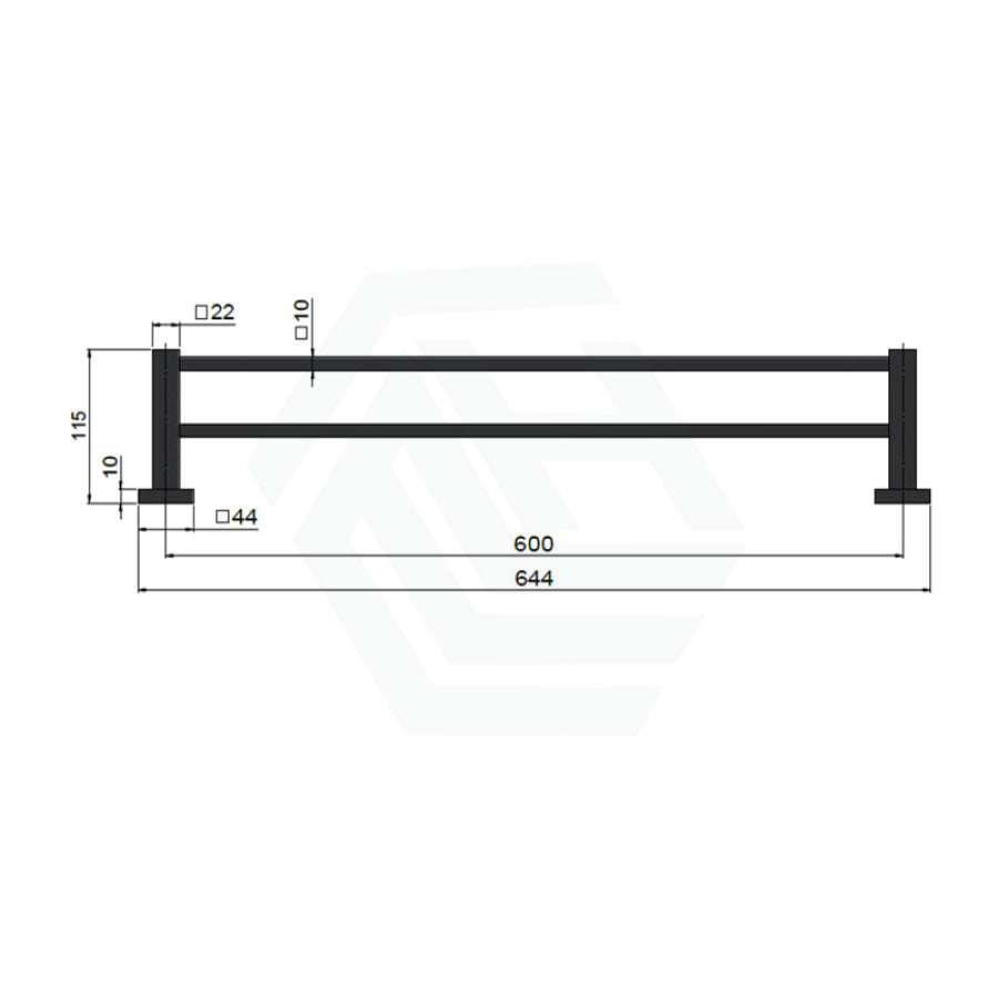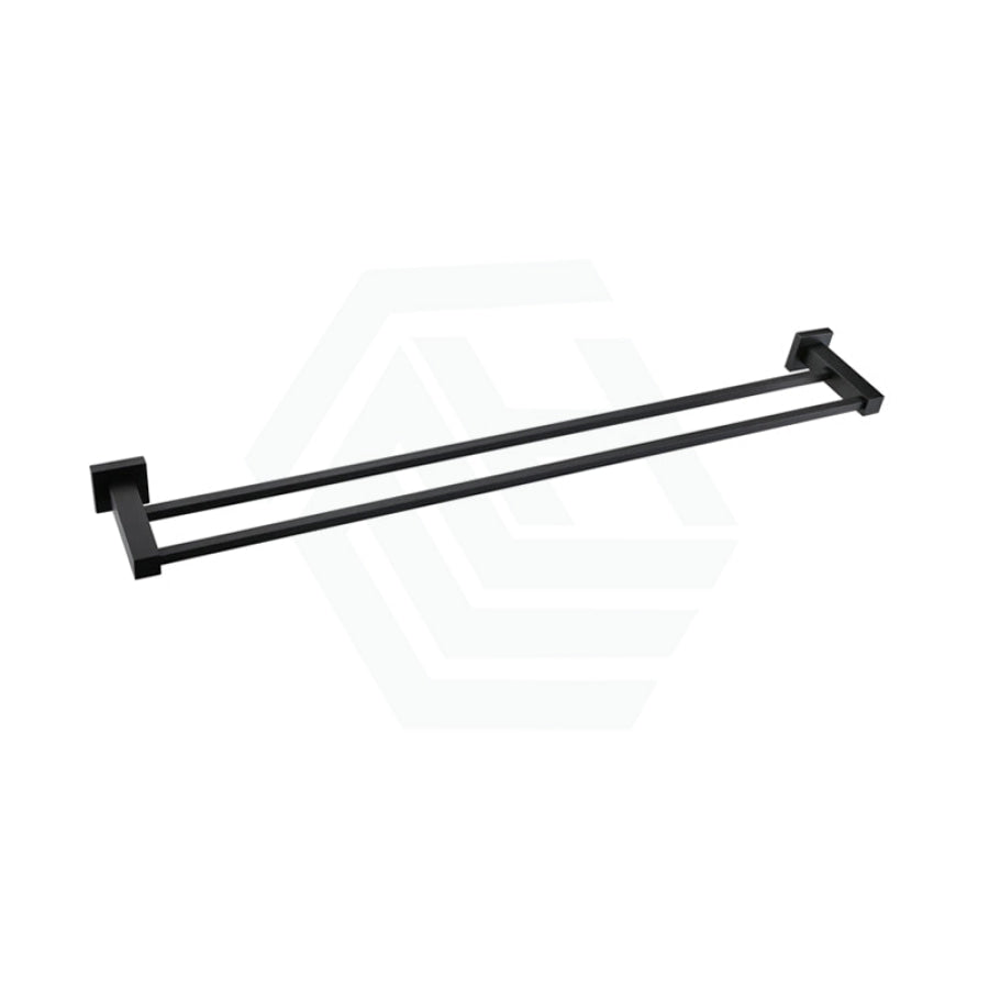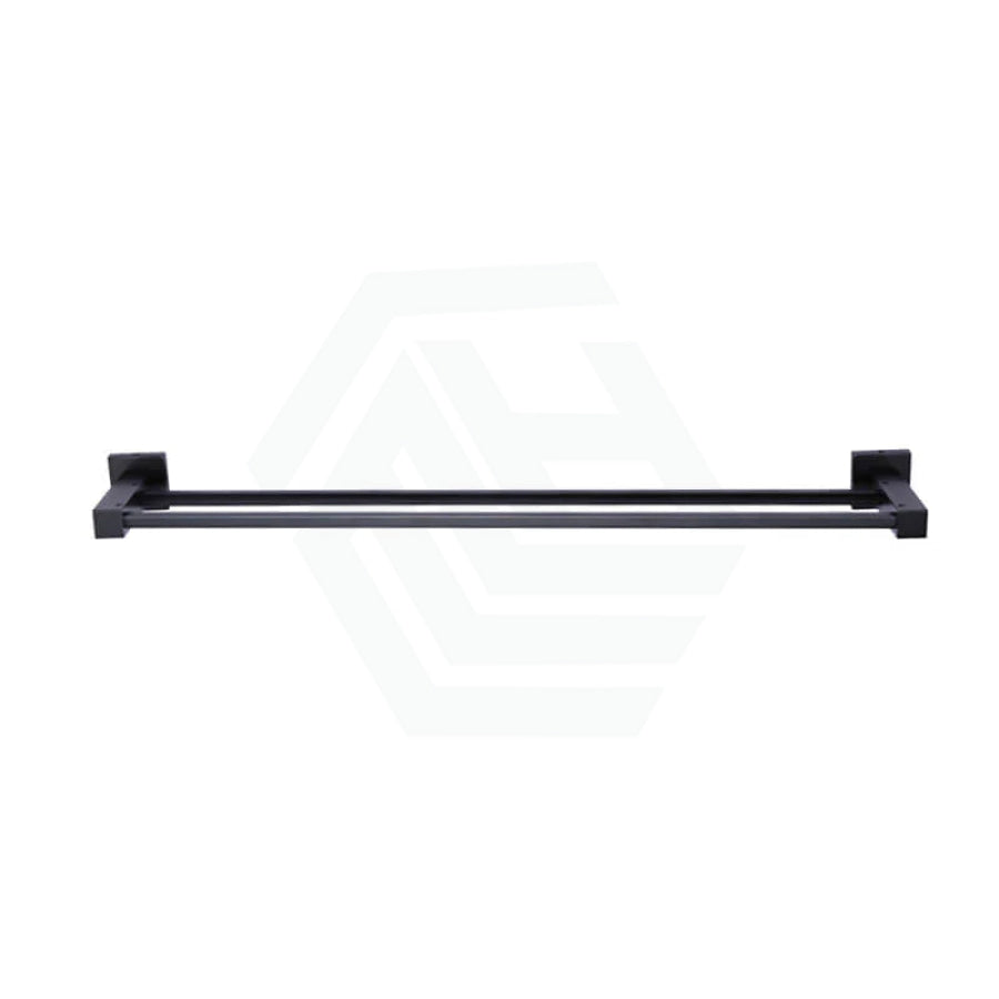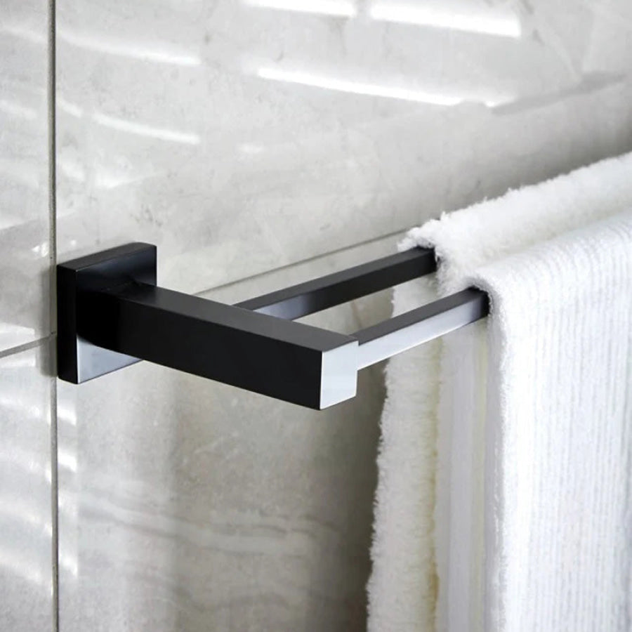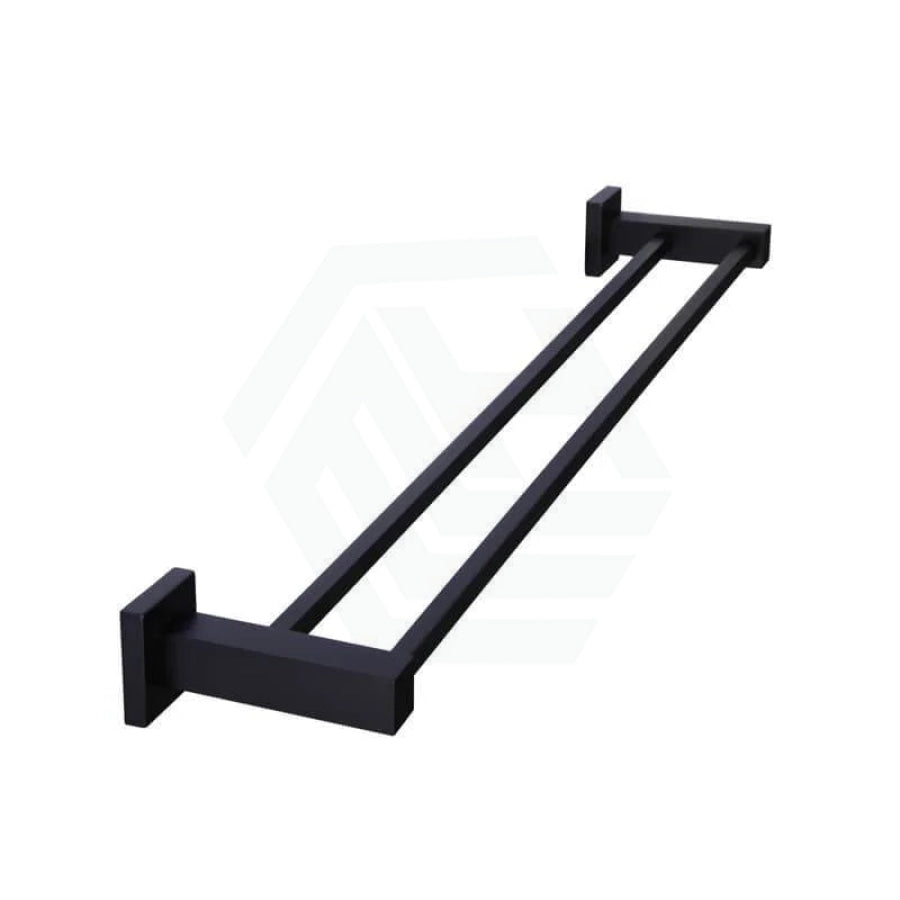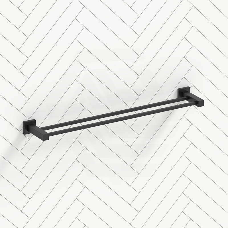 Meir 600mm Matt Black Square Double Towel Rail Wall Mounted Brass