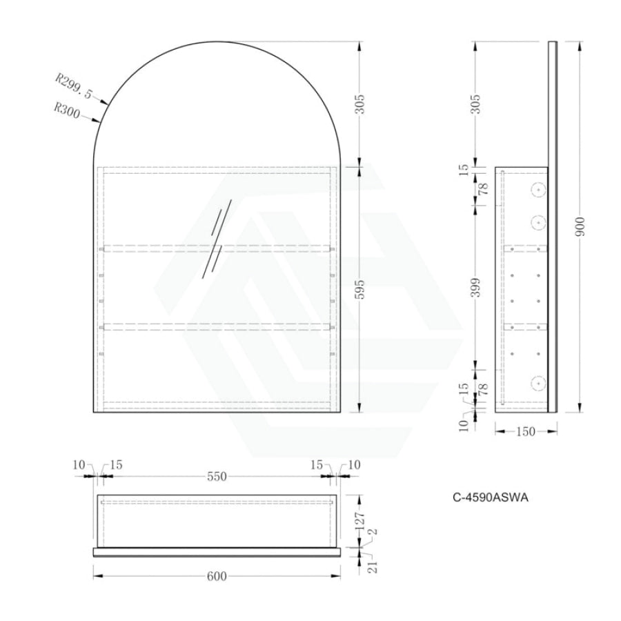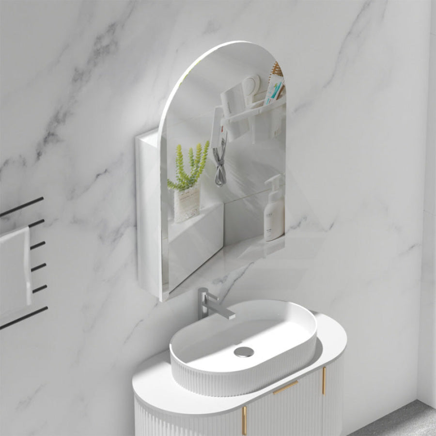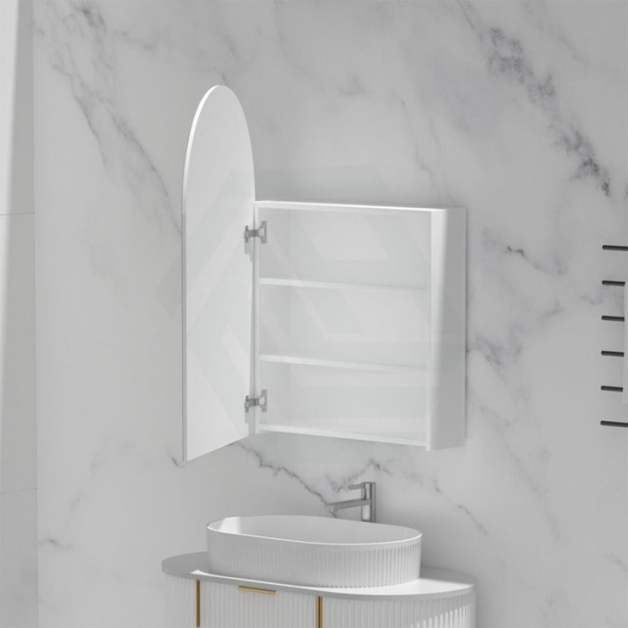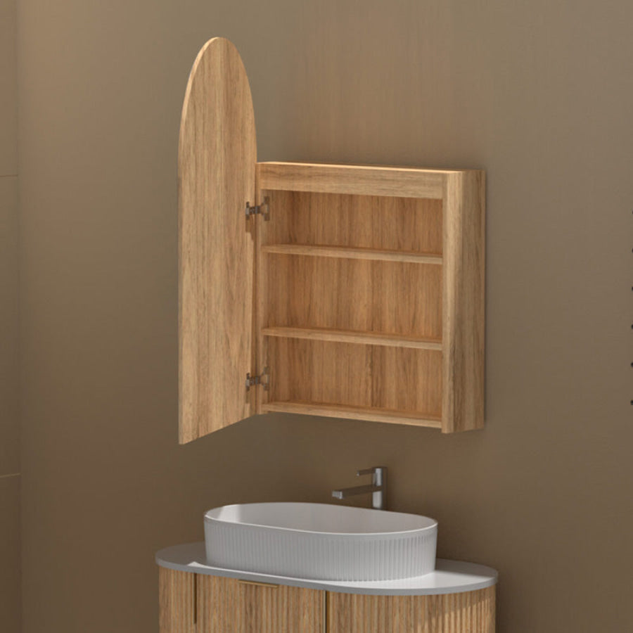 600x900mm Carysil Plywood Wall Hung Arch Shaving Mirror Cabinet Matt White/Walnut Finish for Bathroom