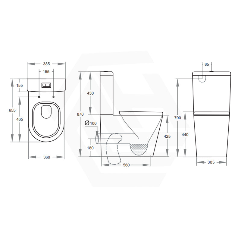 665x385x870mm Vivid Tornado Silent Back To Wall Ceramic Toilet Suite Back/Left & Right Bottom Inlet