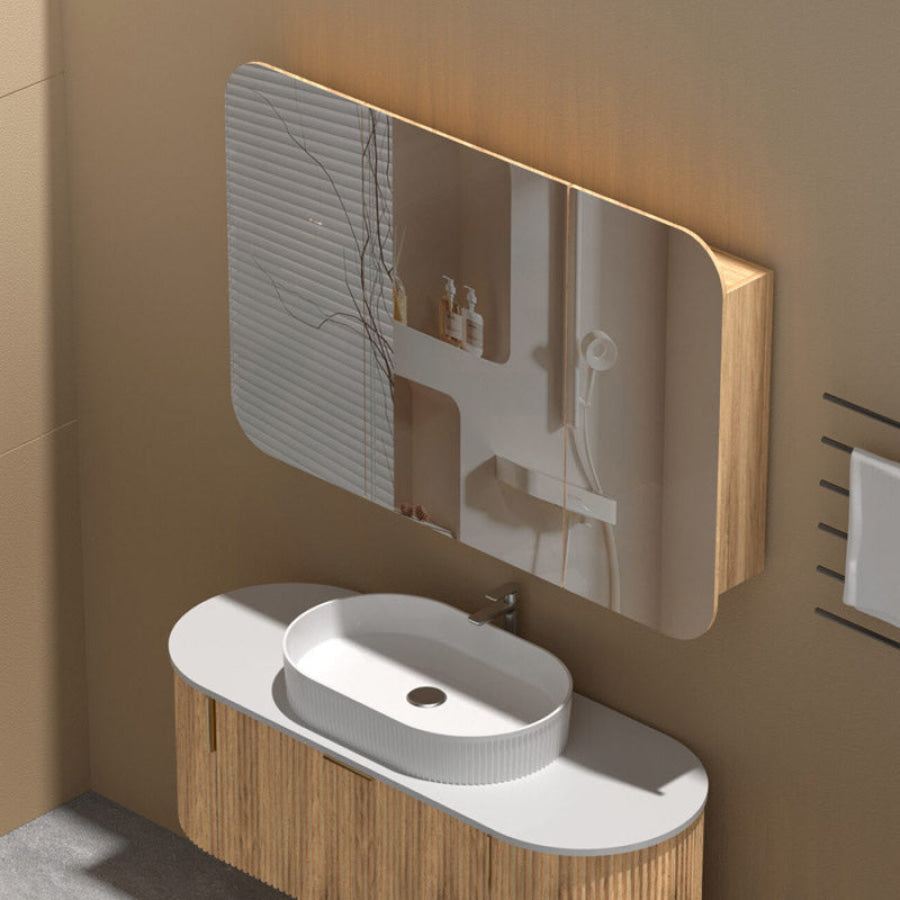 - *Please note that because the shaving cabinet is made with a natural timber veneer, variations in wood grain and color may occur and are not covered under warranty.