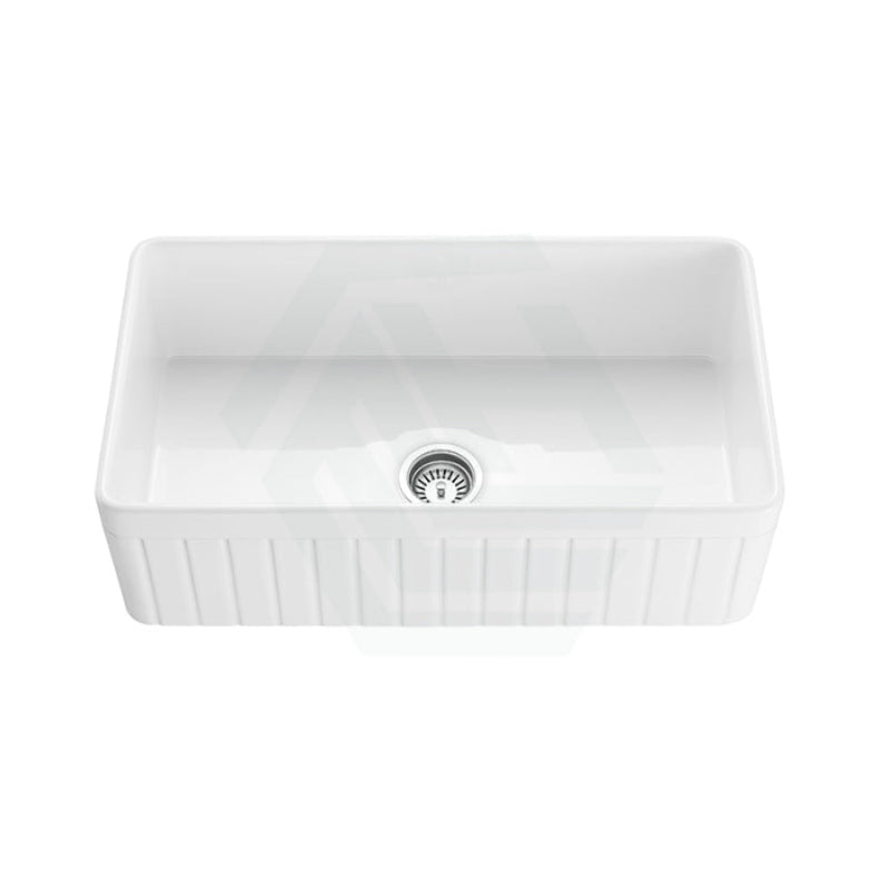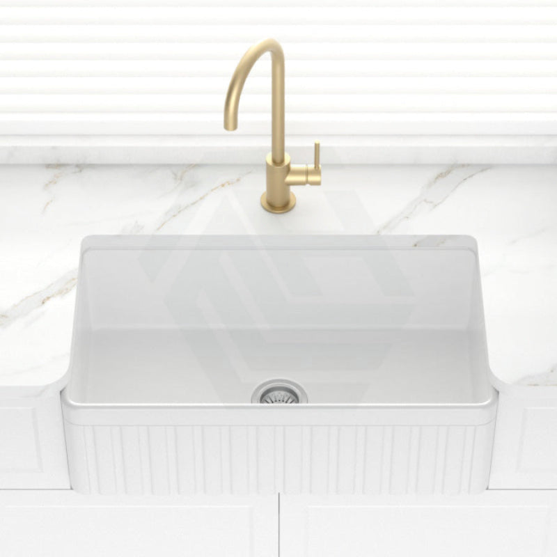 828x450x255mm Greenwich Fireclay Apron Front Farmhouse Sink Single Bowl Kitchen/Laundry Sink Gloss White/Matt Black
