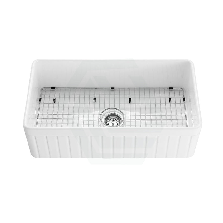 Designed for flush or under-mount installation, this sink includes a protective bottom grid and a 90mm chrome basket waste. The distinctive apron front offers both classic style and practical ergonomics. This model represents the ideal fusion of substantial capacity and the enduring, non-porous qualities of fireclay for a truly standout centerpiece.