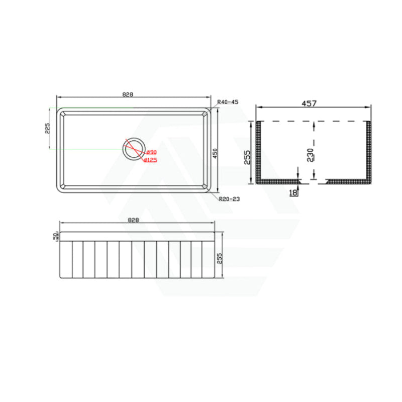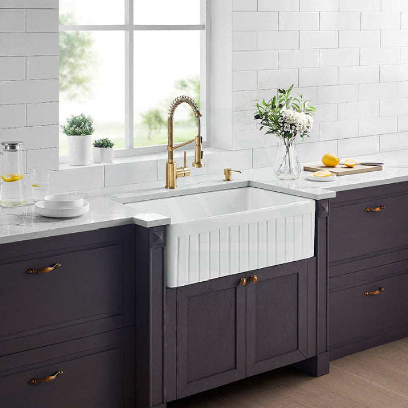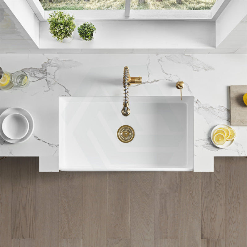 Meet the Greenwich Fireclay Apron Front Sink, where generous proportions meet timeless farmhouse appeal. Crafted from resilient fireclay in Matt Black or Gloss White, its expansive 75L capacity is perfectly contained within a deep 255mm basin. The generous 828mm length provides a commanding presence, while the 230mm internal depth ensures exceptional utility for both kitchen and laundry tasks.
