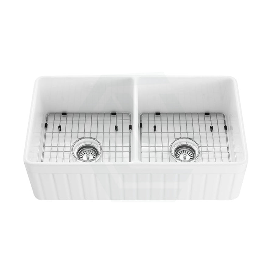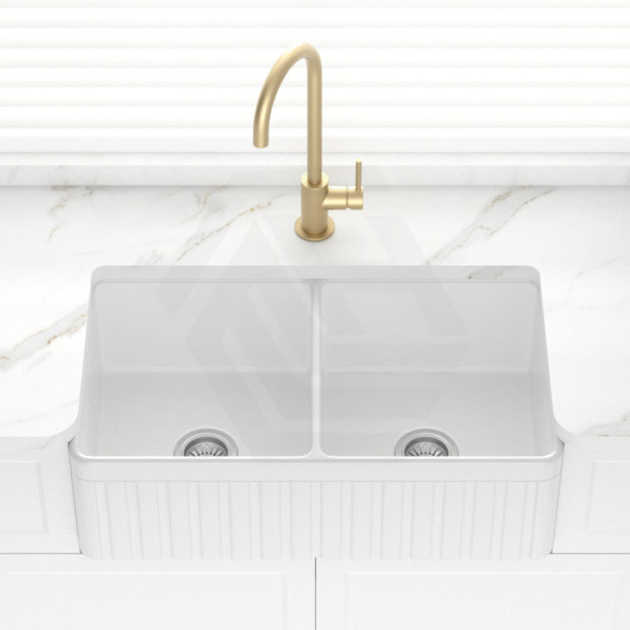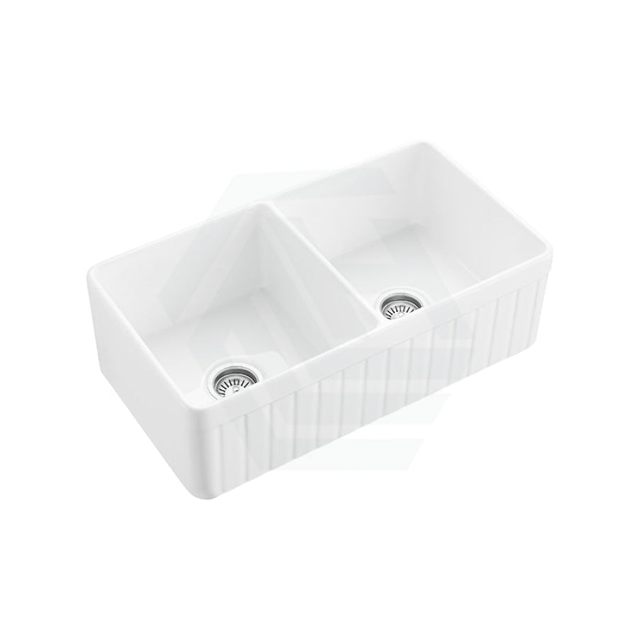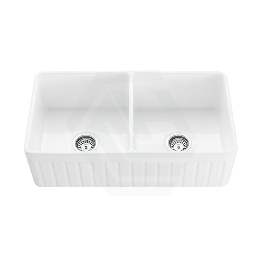 828x450x255mm Gloss White Greenwich Fireclay Farmhouse Sink Double Bowls Kitchen Laundry Sink