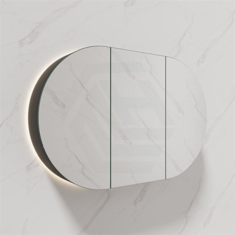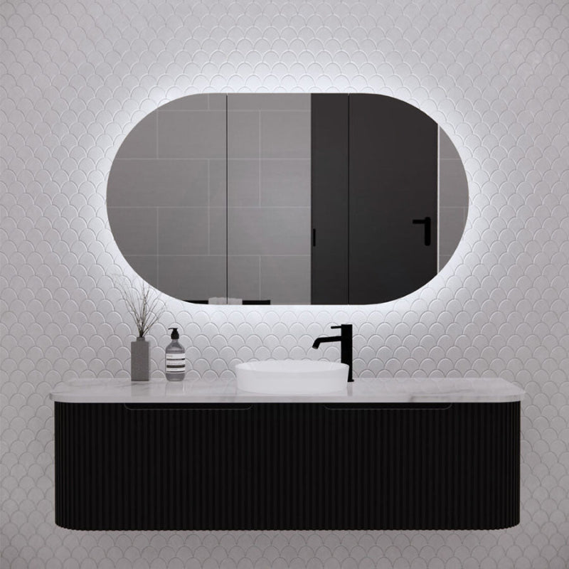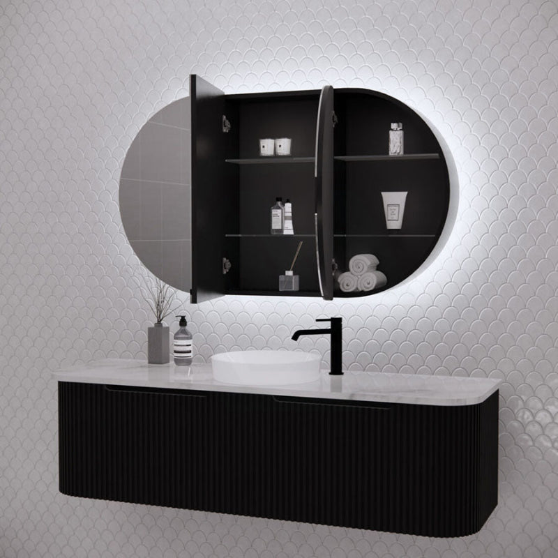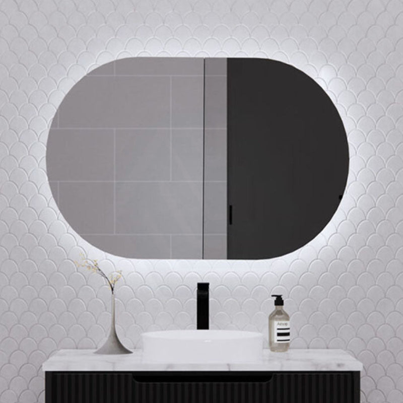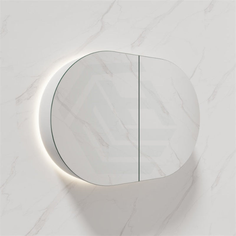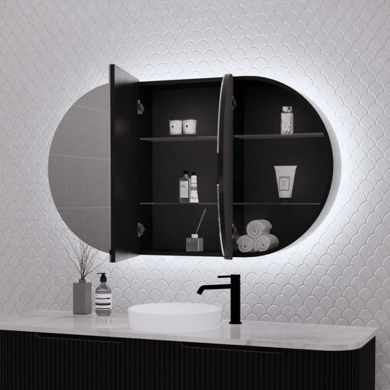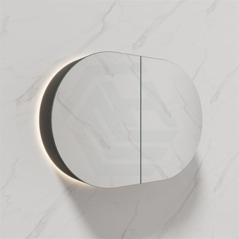 870/1200mm Oval LED Backlit Pencil Edge Mirror Cabinet Matt White/Matt Black