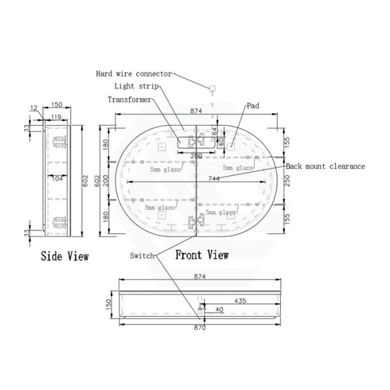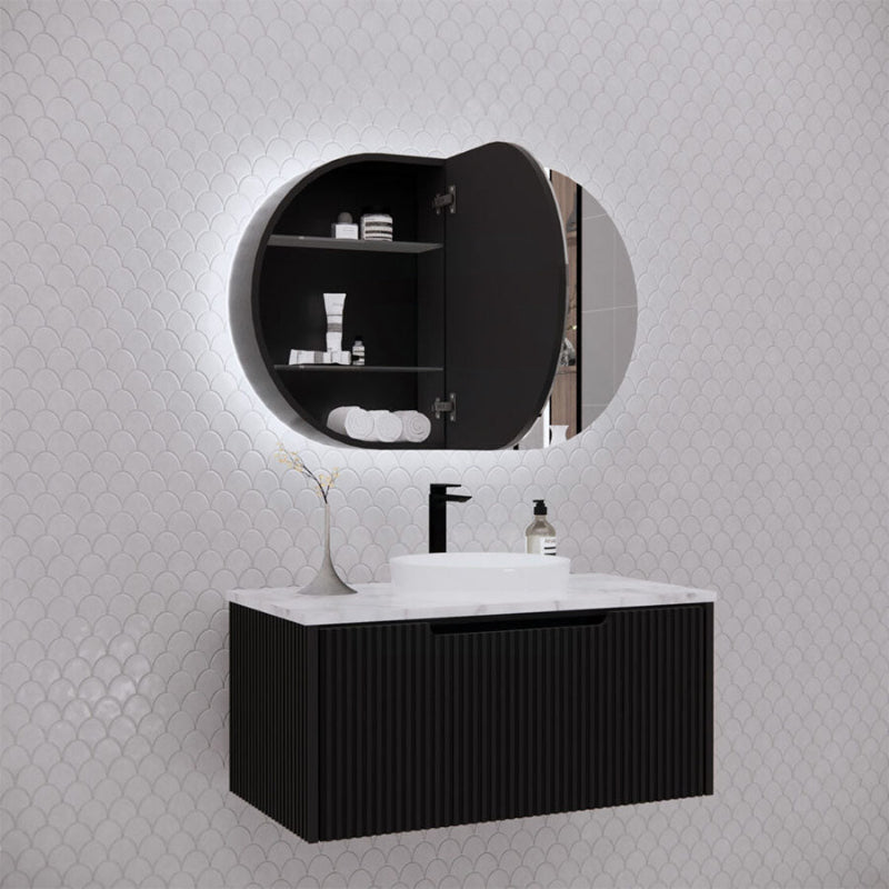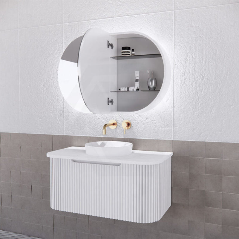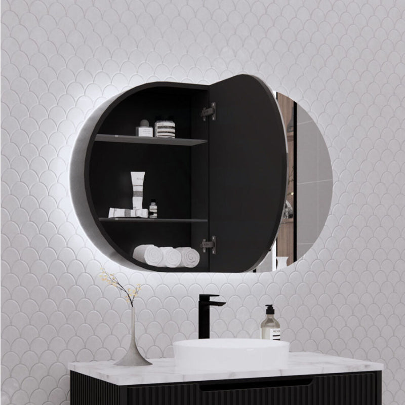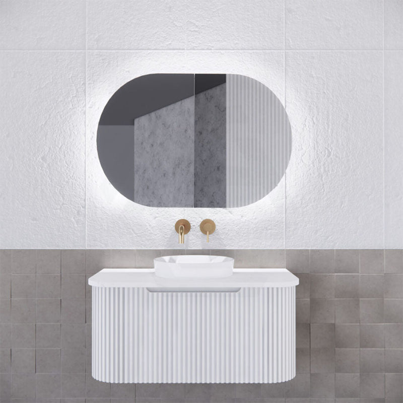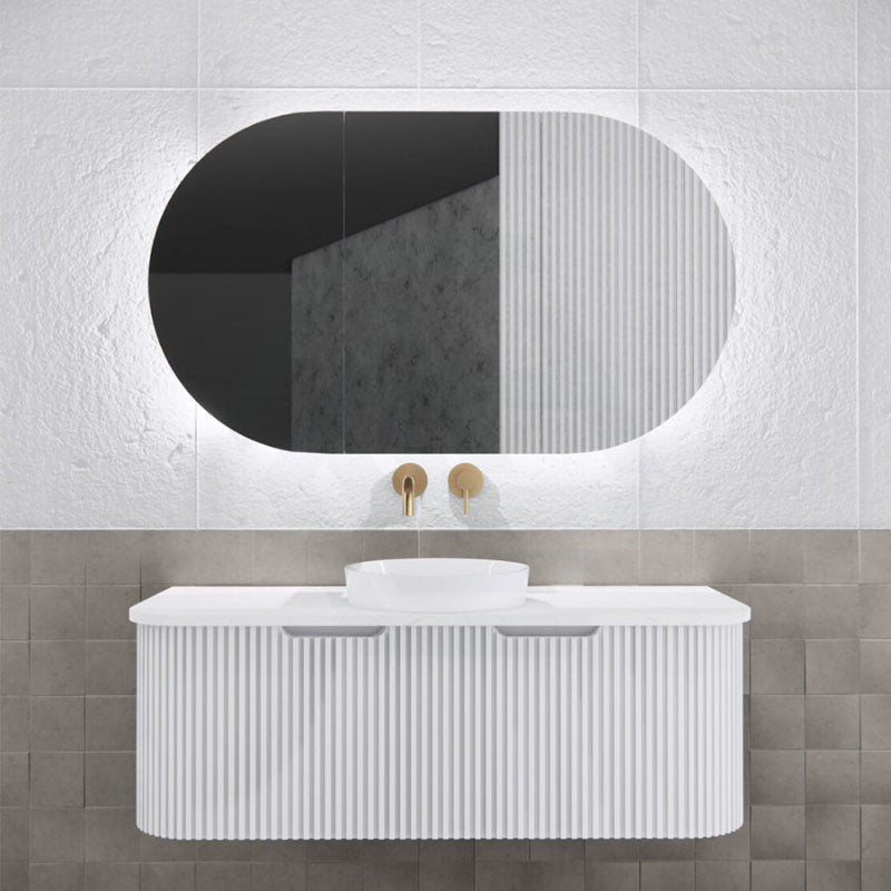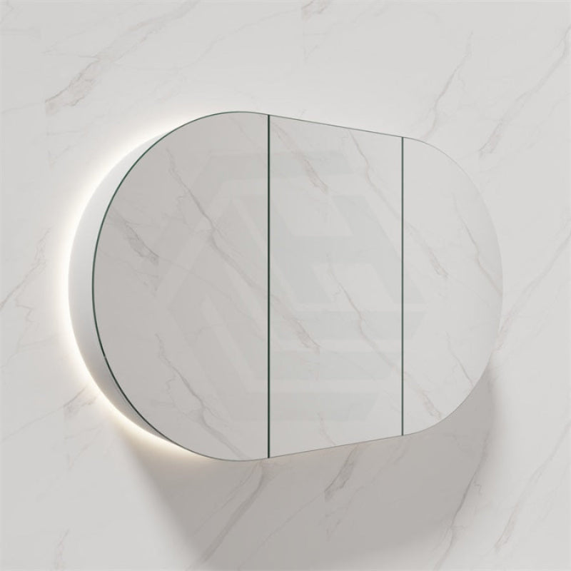 870/1200mm Oval LED Backlit Pencil Edge Mirror Cabinet Matt White/Matt Black
