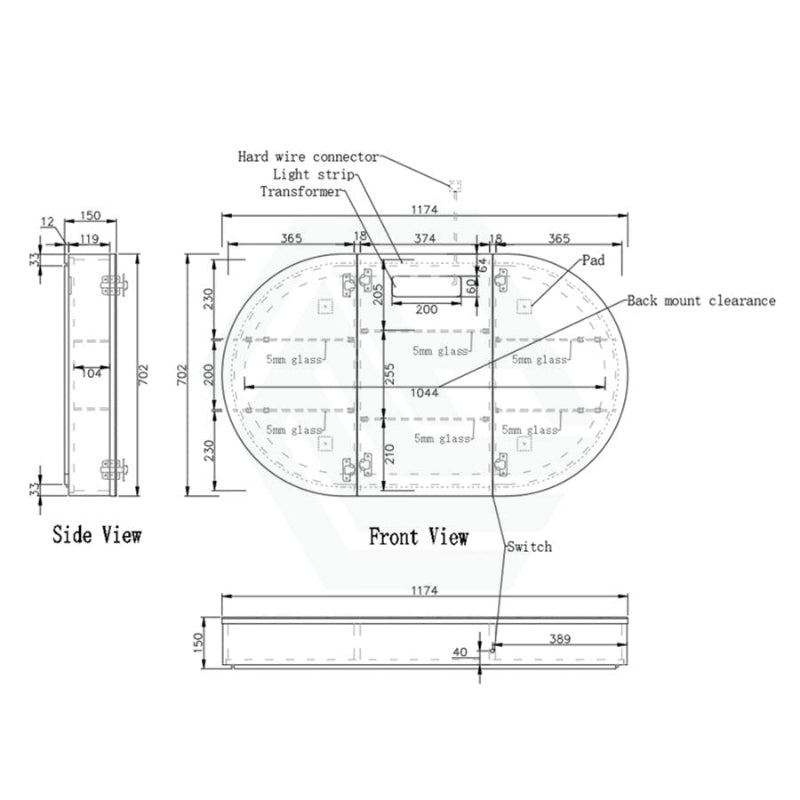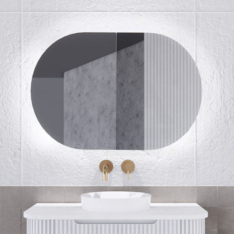 Experience the spacious Oval LED Mirror Cabinet with optional sizes in 870x600x150mm or 1200x700x150mm. This elegant oval shaving cabinet features a distinctive pencil edge mirror illuminated by integrated LED backlighting. Engineered for enduring bathroom conditions, its construction features polyurethane finishes applied internally and externally over a robust water-resistant plywood frame, incorporating a clear, tarnish-resistant copper-free mirror.