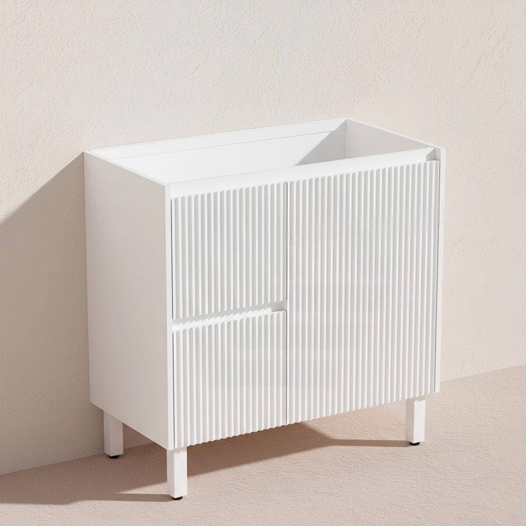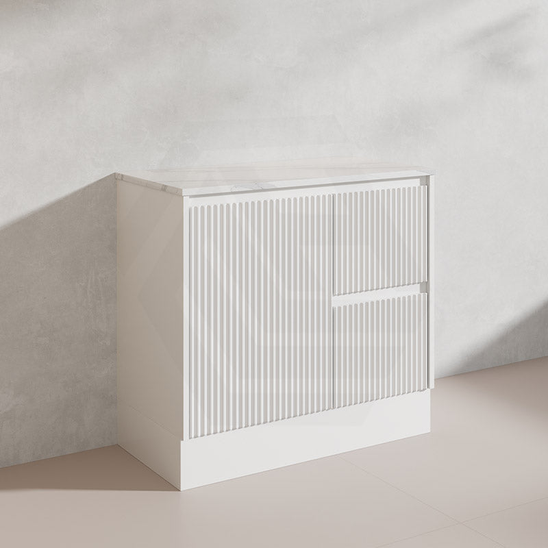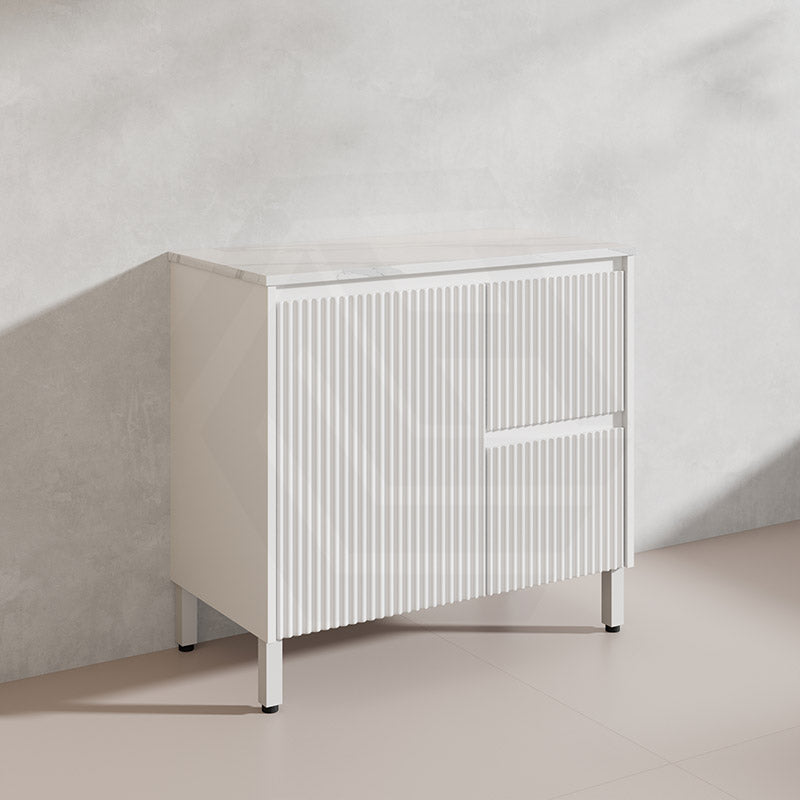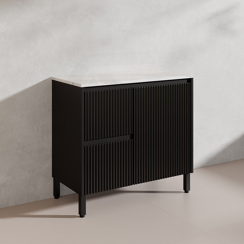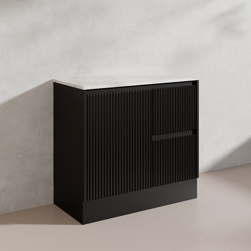 900mm Ceto Brighton Freestanding Vanity PVC Board Matt Black/White Linear Surface