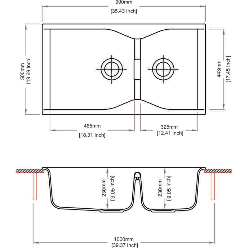900x500x230mm Quartz Granite Double Bowls Sink for Top/Under Mount in Kitchen Variant Colour Available