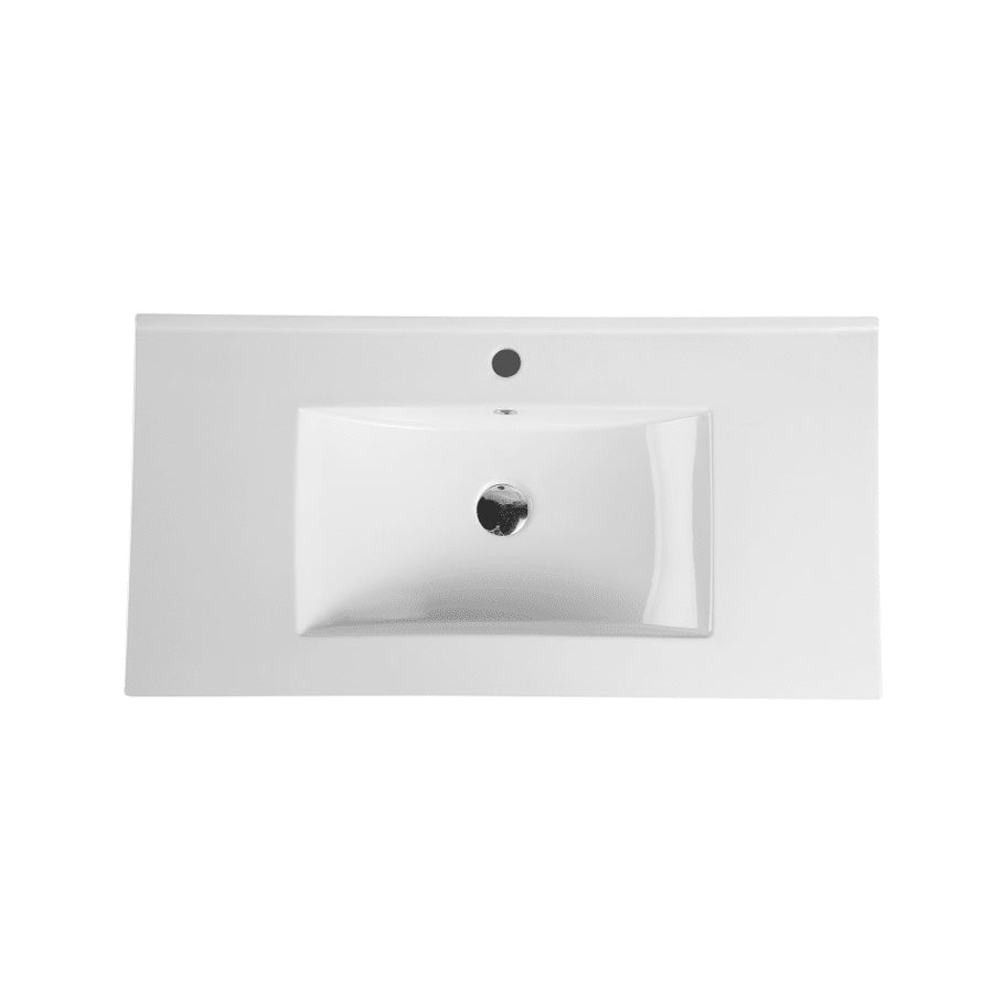 910x370x190mm Slim Ceramic Top for Bathroom Vanity Single Bowl Gloss White Narrow