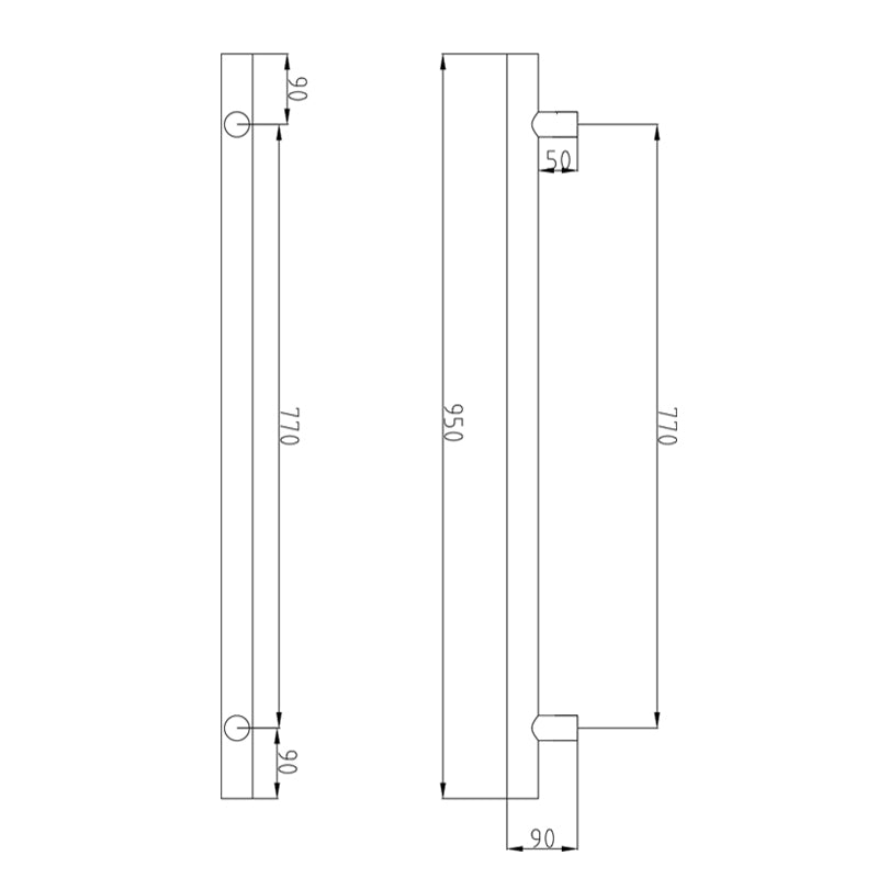 Radiant Vertical Heated Towel Rail 40x950mm Single Bar Variant Colour Available