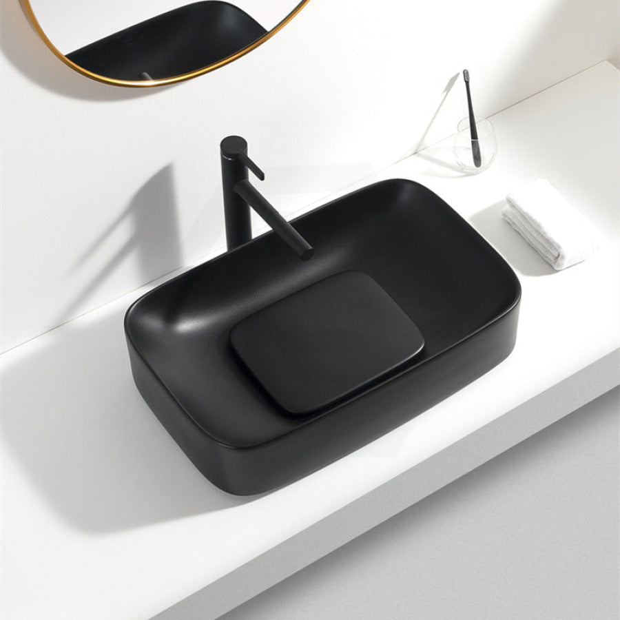 Elevate your bathroom design with this 600x375x145mm rectangular above-counter ceramic wash basin featuring a sleek decoration board. Available in a variety of refined colors, it offers both aesthetic versatility and durability. Its clean lines and smooth finish create a sophisticated focal point while providing practical functionality for everyday use. Perfect for modern and classic interiors alike, this basin combines style and convenience seamlessly.