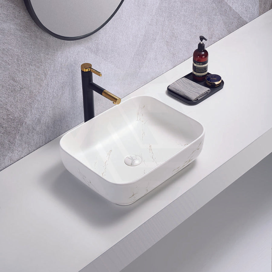 500x390x130mm Rectangle Matt White Carrara Above Counter Ceramic Basin
