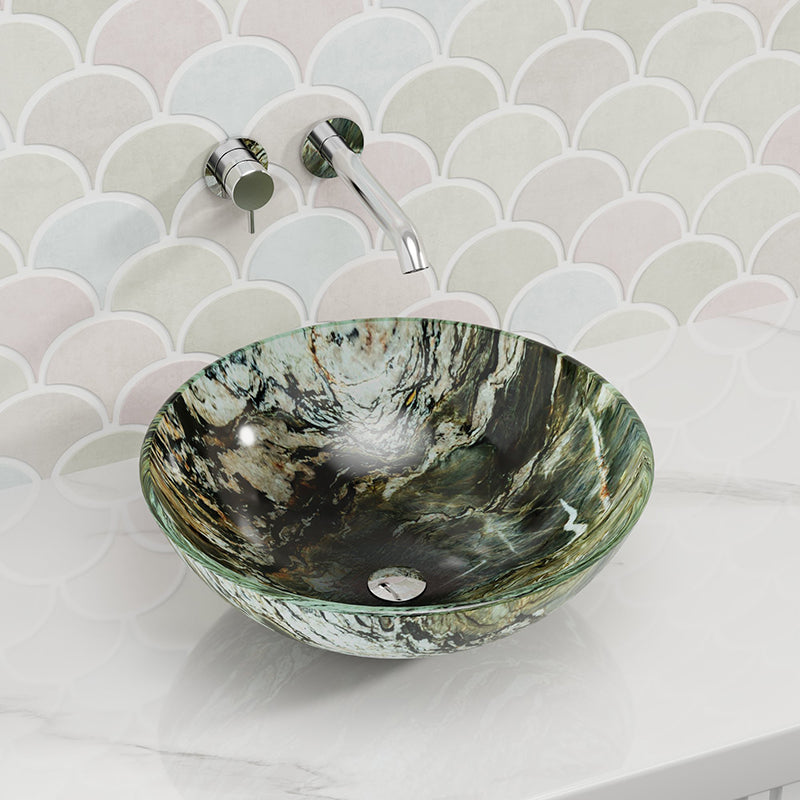 420x420x145mm Tempered Glass Basin Round Shape Double Layer