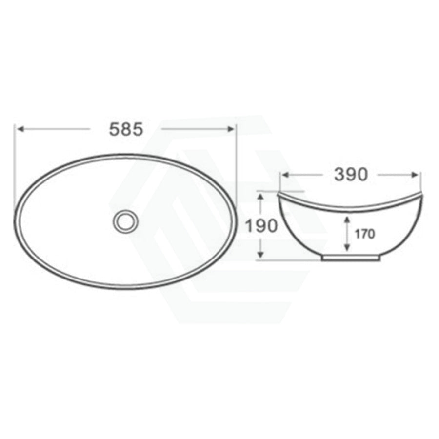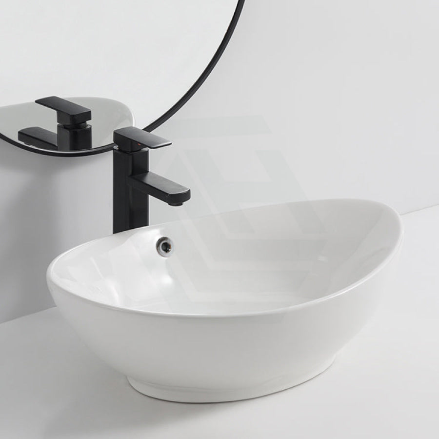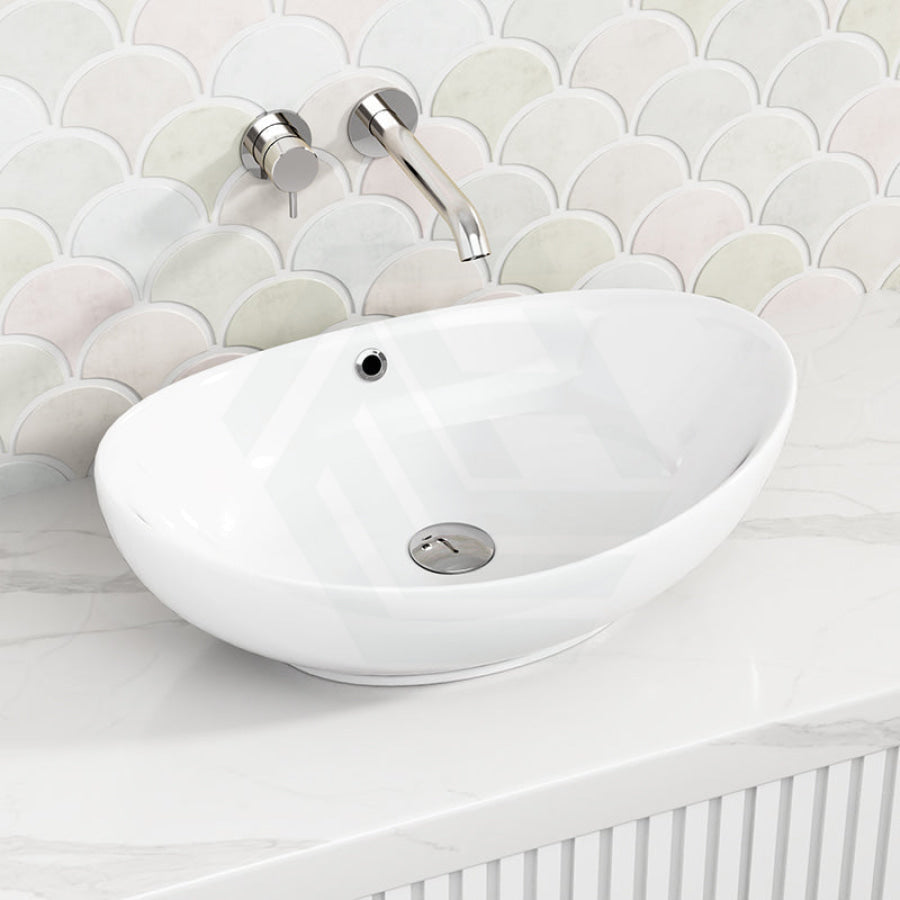 585x390x190mm Oval Above Counter Gloss White Ceramic Basin