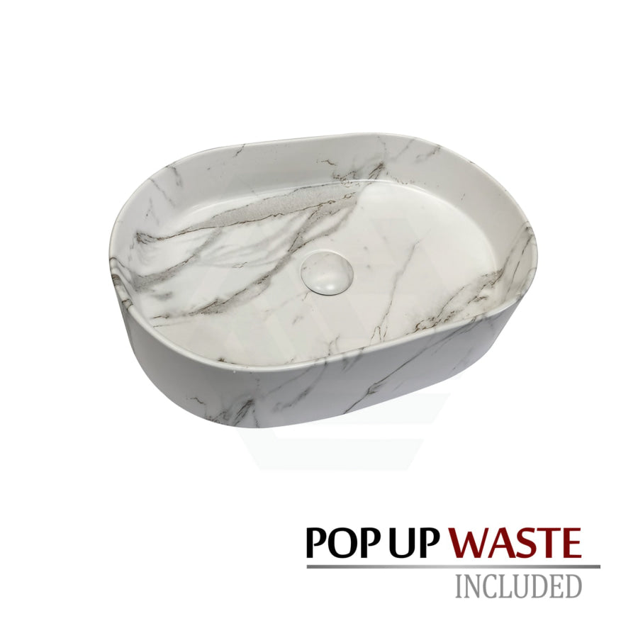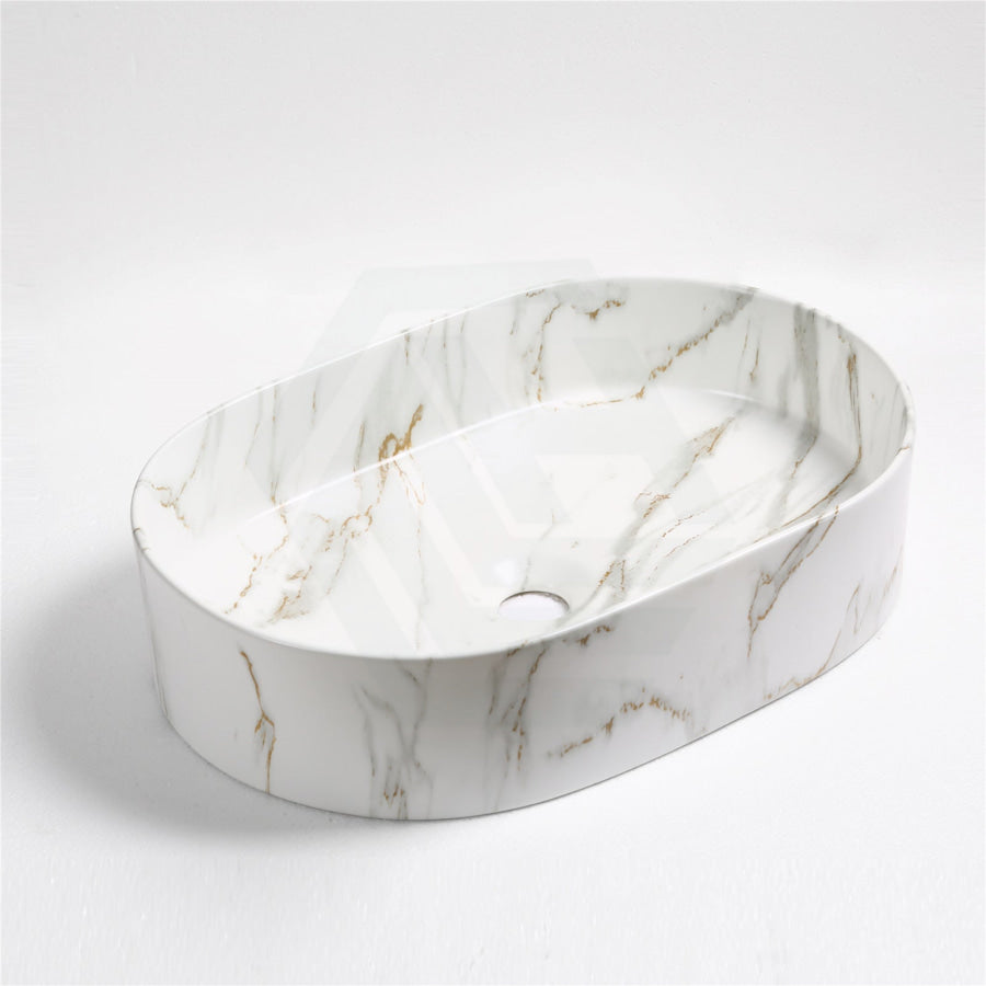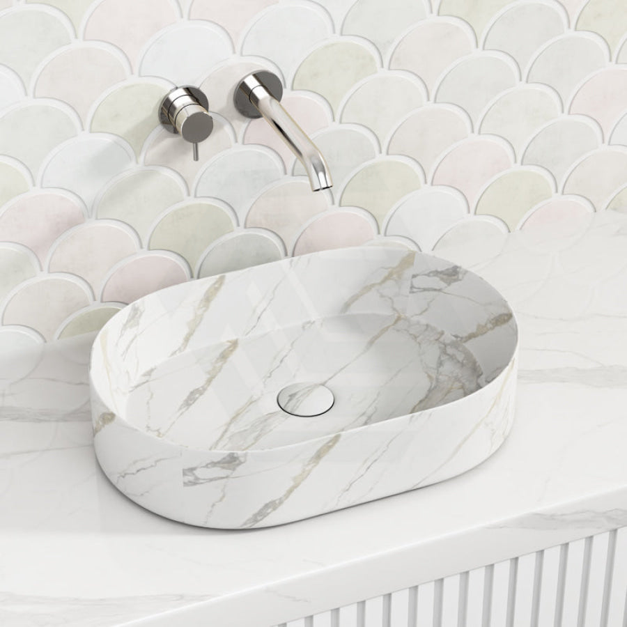 500x340x120mm Bathroom Oval Above Counter Wash Basin Matt Carrara Finish Ceramic