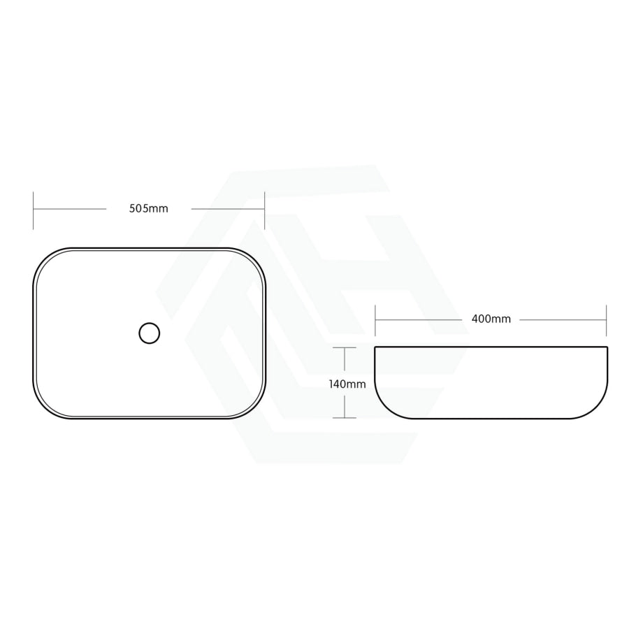 505x400x140mm Gloss Marble Carrara Surface Bathroom Rectangle Curved Rim Above Counter Wash Basin
