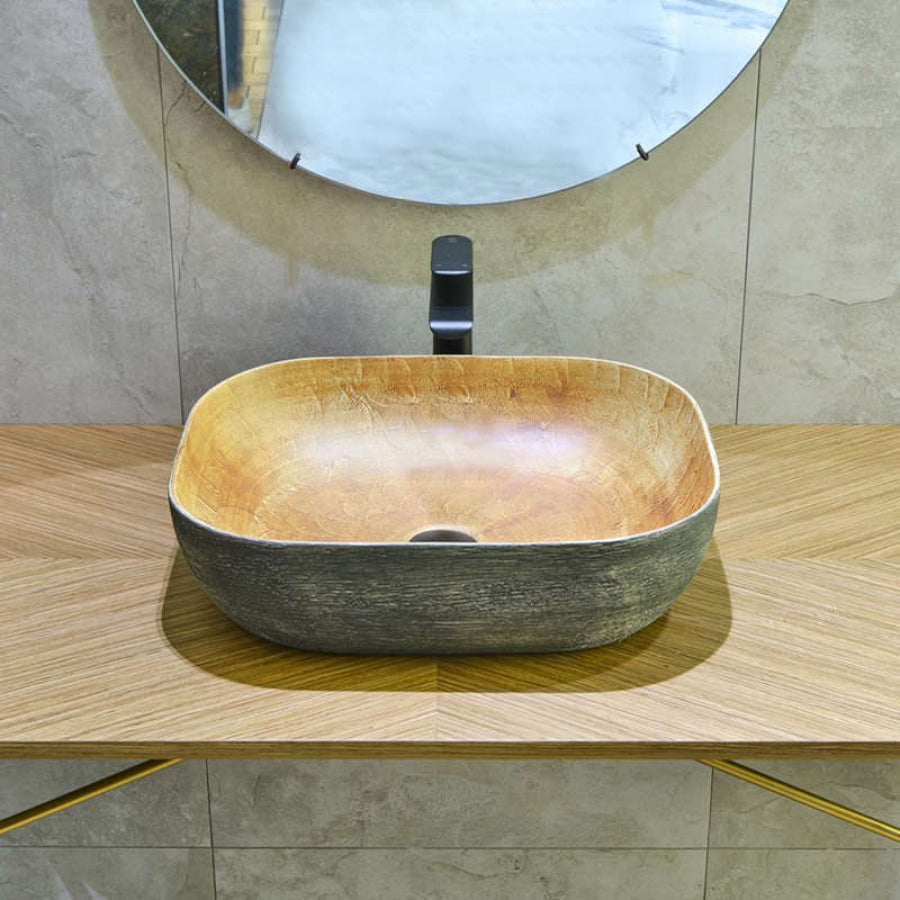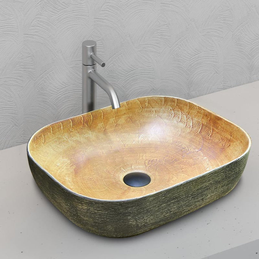 The 490x385x140mm Rectangle Porcelain Above Counter Basin Bathroom Wash Art Basin Pumpkin&Green Exterior would give a high-quality and elegant addition to any bathroom.
