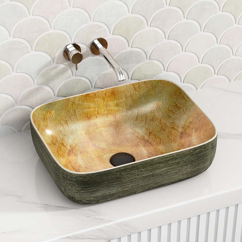 490x385x140mm Rectangle Porcelain Above Counter Basin Bathroom Wash Art Basin Pumpkin&Green Exterior