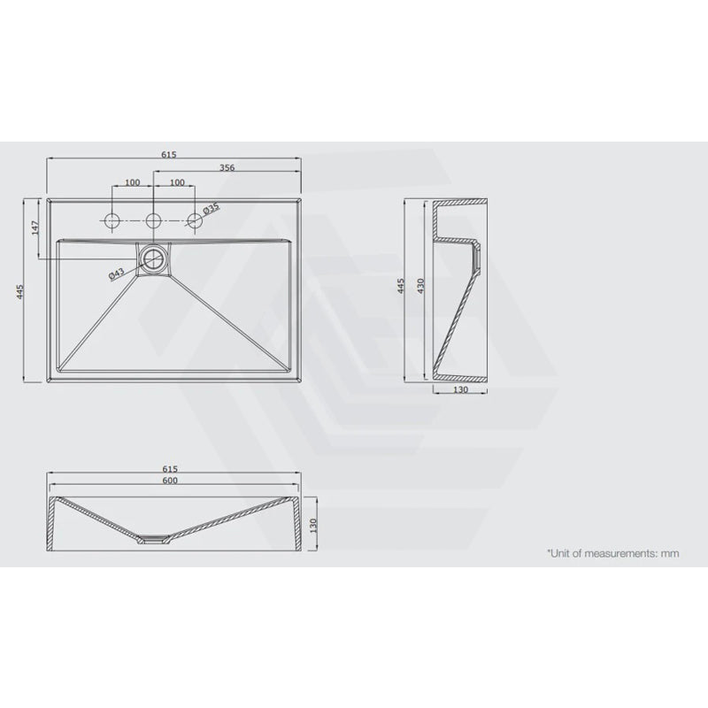 615x445x130mm Above Counter Basin Bathroom Wash Basin Sani-Quartz Composite Golden Cut In Various Colour